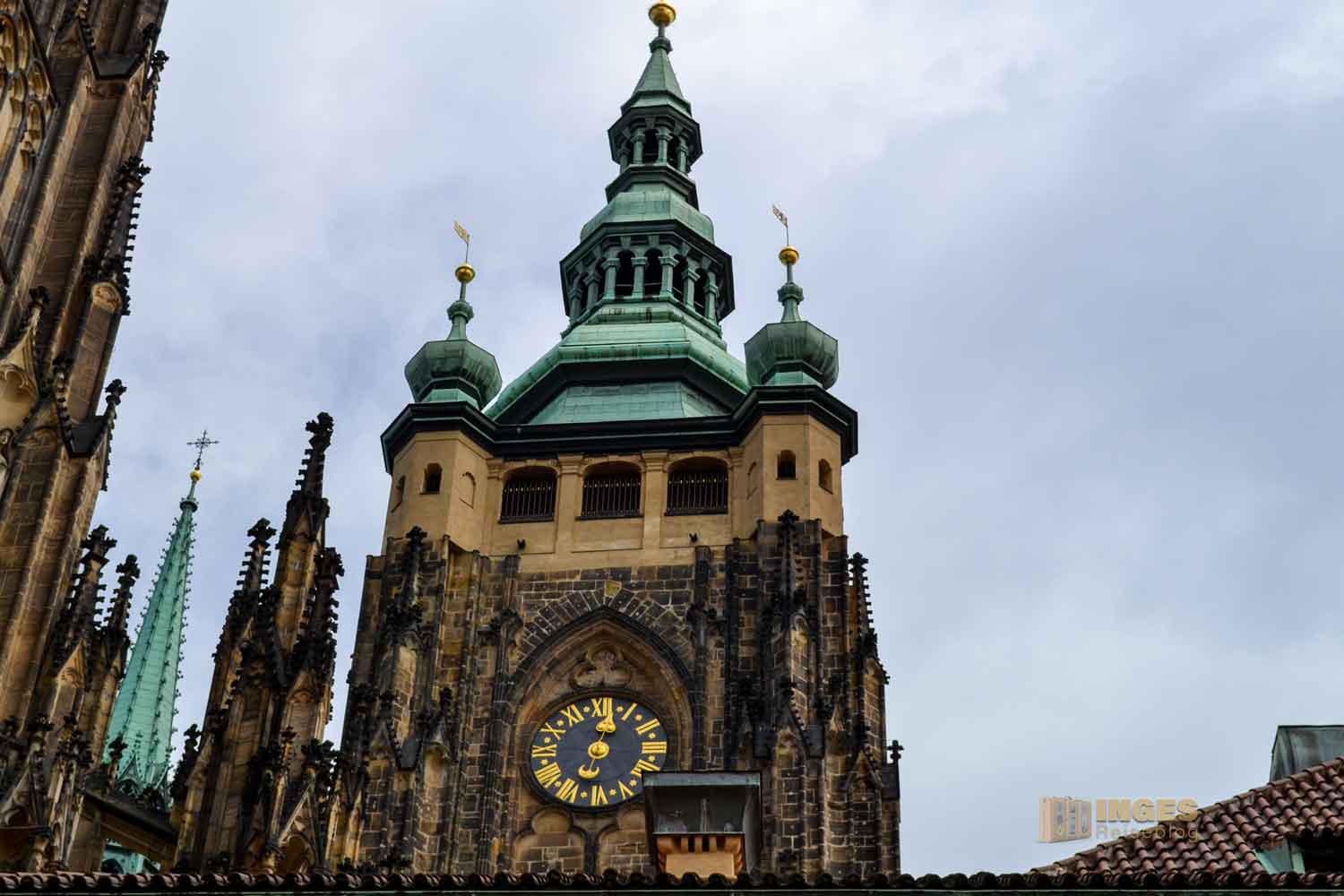Man muss den Kopf schon schwer in den Nacken legen, um zu dem dritthöchsten Kirchturm von ganz Tschechien hoch zu schauen. Fast 100 Meter ragt er in den Himmel, davon hat aber Peter Parler nur so ca. 50 Meter während seiner Bauzeit geschafft. Im 16. Jh. wurde im Renaissancestil dann weitergearbeitet. Außerhalb Corona Zeiten kann man den Turm mit seinen mehreren hundert Stufen erklimmen.