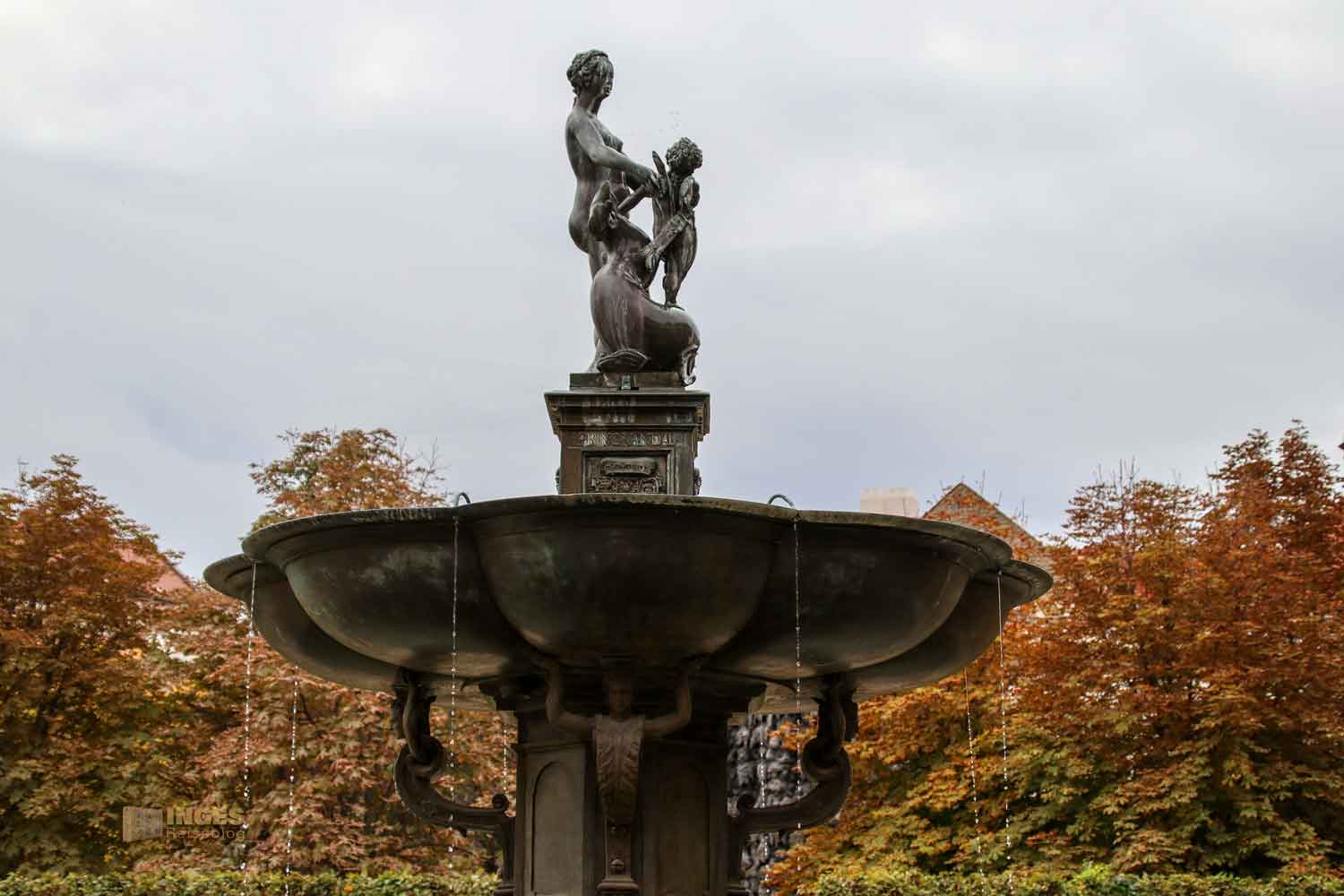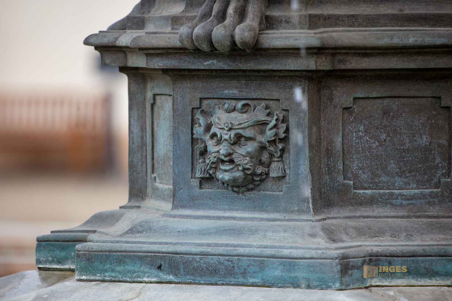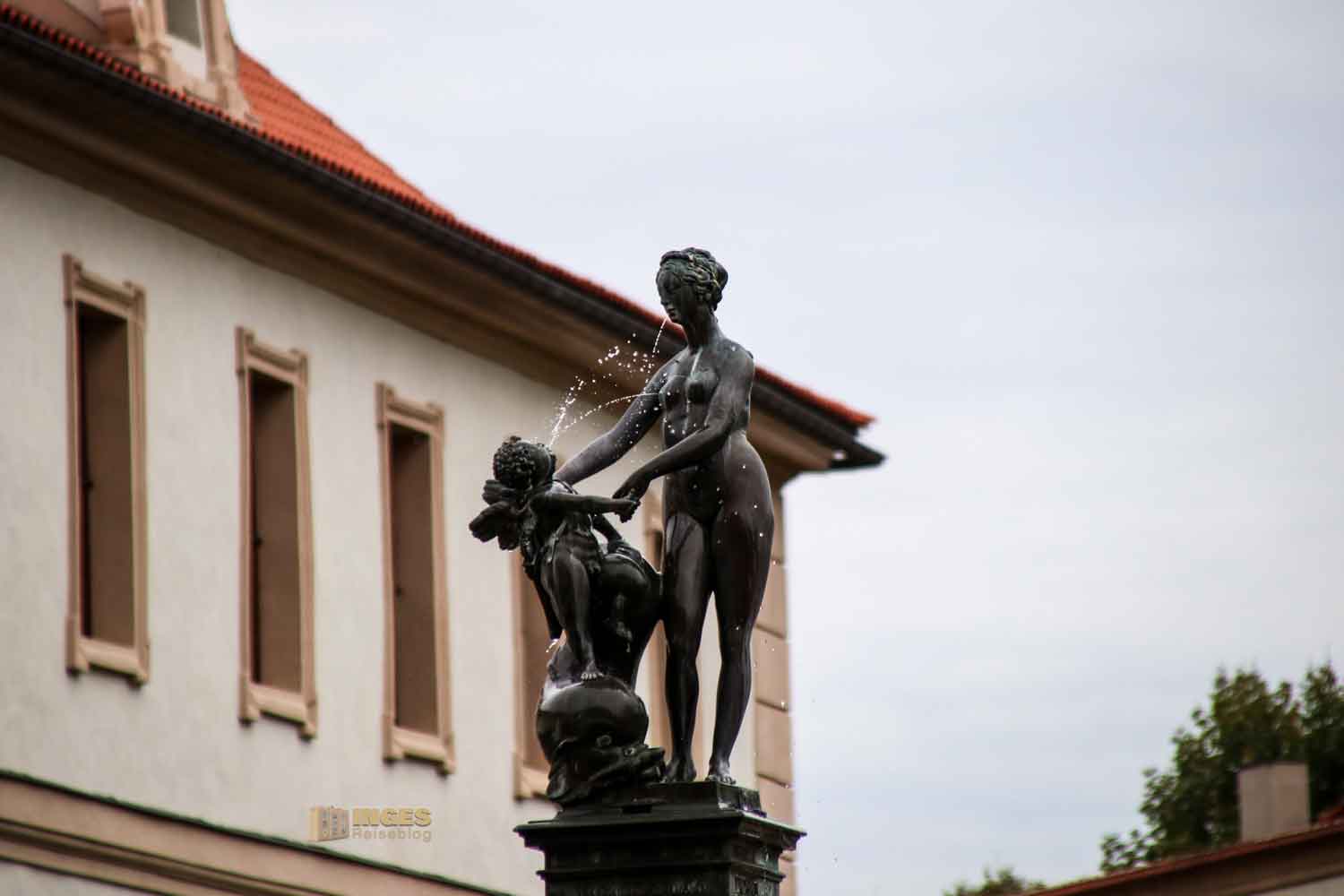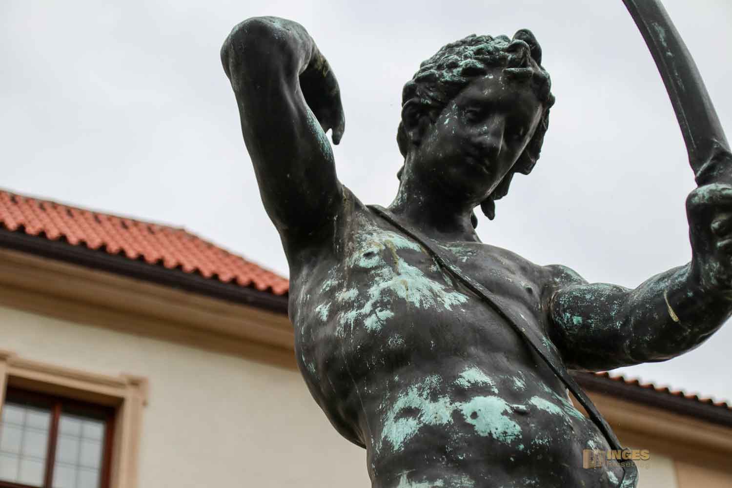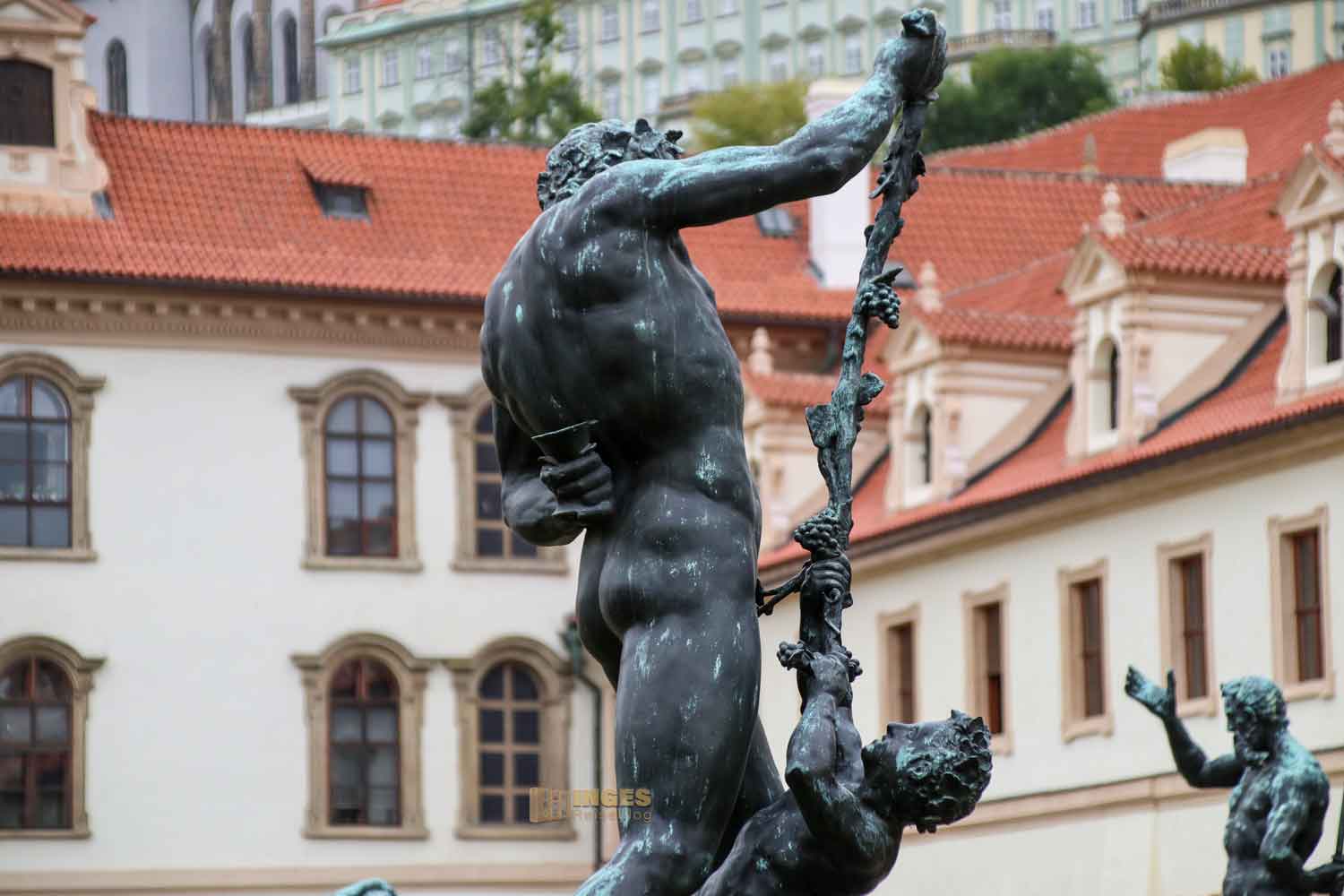 1599 bekam die römische Göttin der Liebe mit ihrem Sohn Amor auf dem Brunnen ihren Platz. Den musste sie zwangsweise aber 1648 räumen, denn die Schweden verbrachten sie als Kriegsbeute nach Schweden. Also das gleiche Schicksal, das den anderen Göttern auch widerfahren ist. Anders als bei den anderen Statuen, die sind im Original immer noch in Schweden, durfte sie im Original 1890 wieder nach Böhmen zurück und hat ihren Platz in der Gemäldegalerie auf der Prager Burg gefunden. Die Statue von heute ist eine Nachbildung. Bei ihr in luftiger Höhe ist ein Delphin, der in der Antike das Symbol für Liebe darstellt. Wenn ihr noch mehr über die schöne Göttin lesen möchtet, dann klickt HIER.