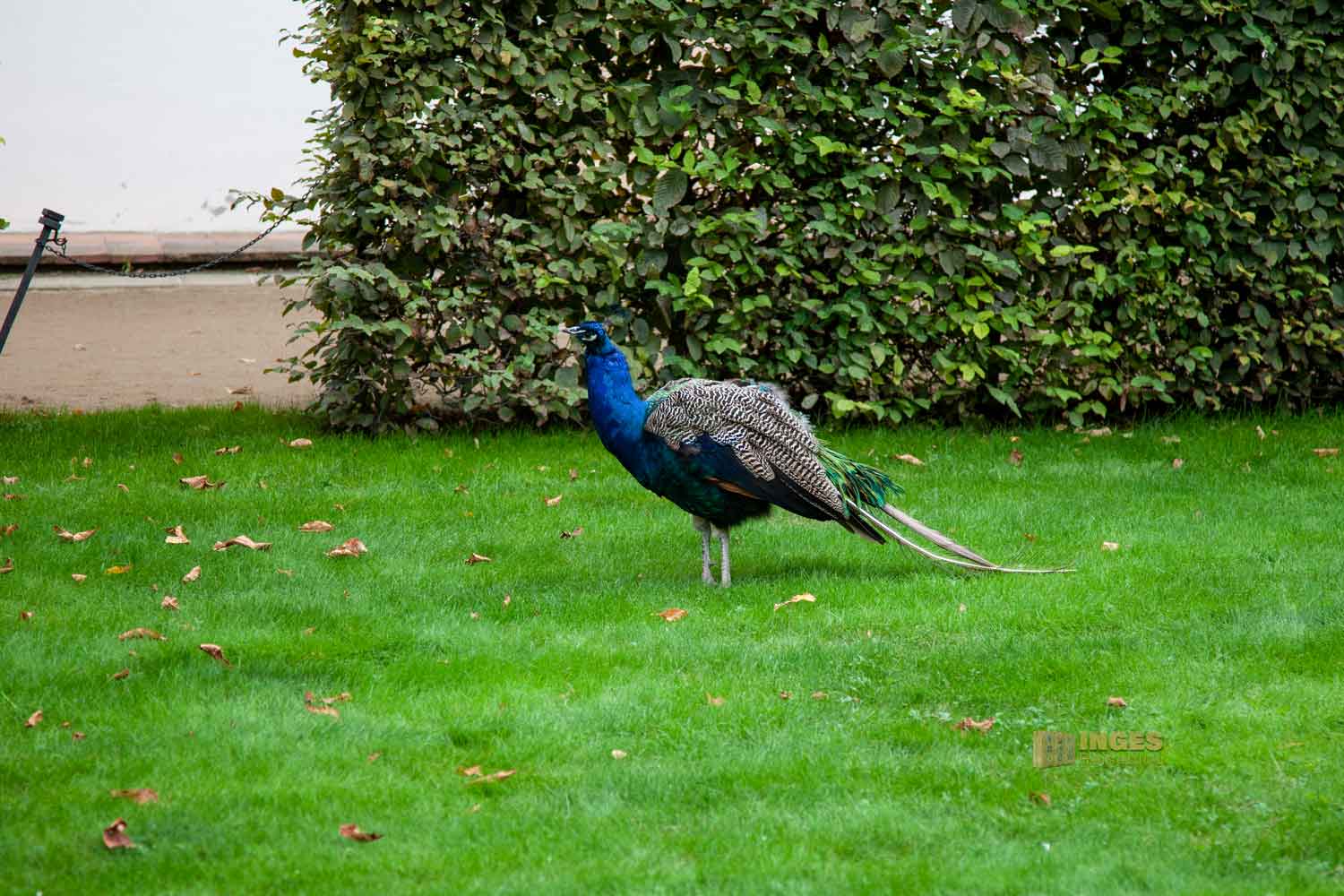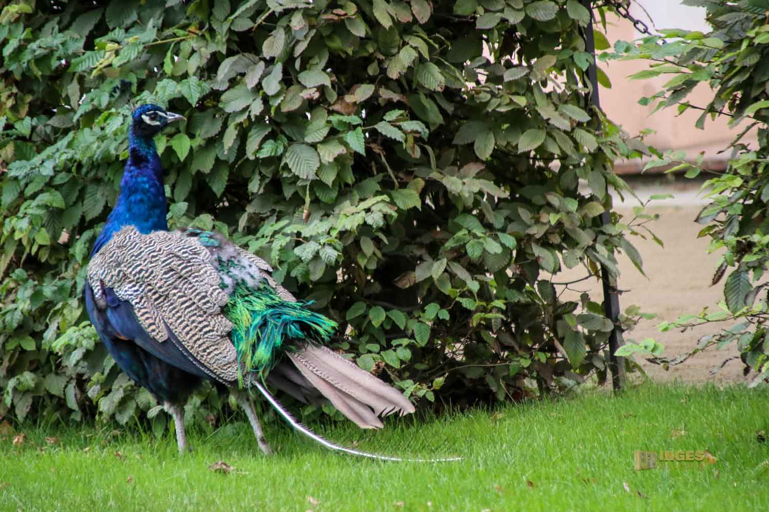 Der blaue und weiße Pfau im Waldstein-Garten in Prag