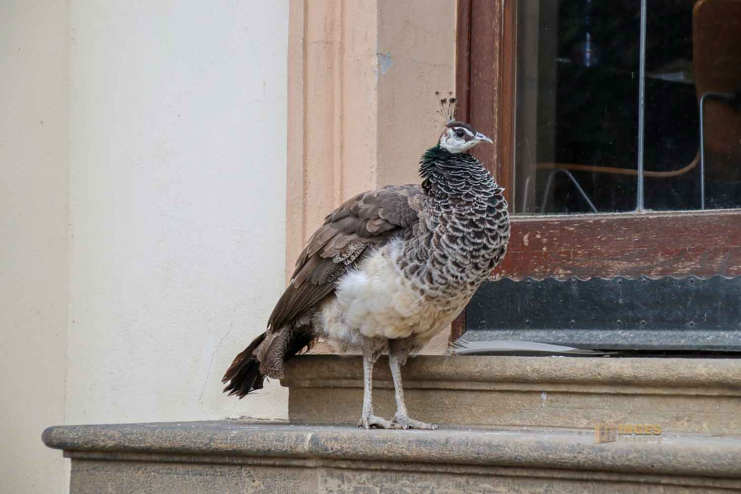 Ob es zu Wallensteins Zeiten auch schon zwei so stolze Bewohner gab? Keine Ahnung. Bei unserem Besuch folgten sie uns zumindest bis in den kleinen Parkteil 🙂