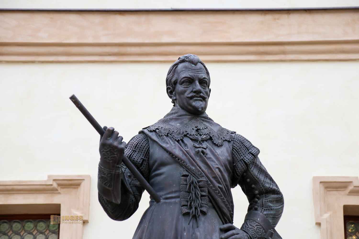 Albrecht von Waldstein, Wallenstein, im Hof des Palais Waldstein in Prag