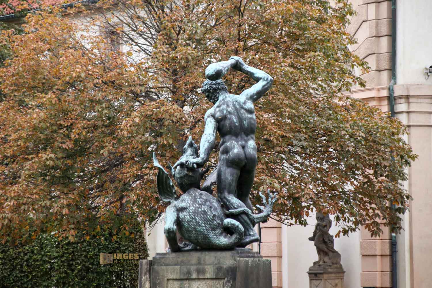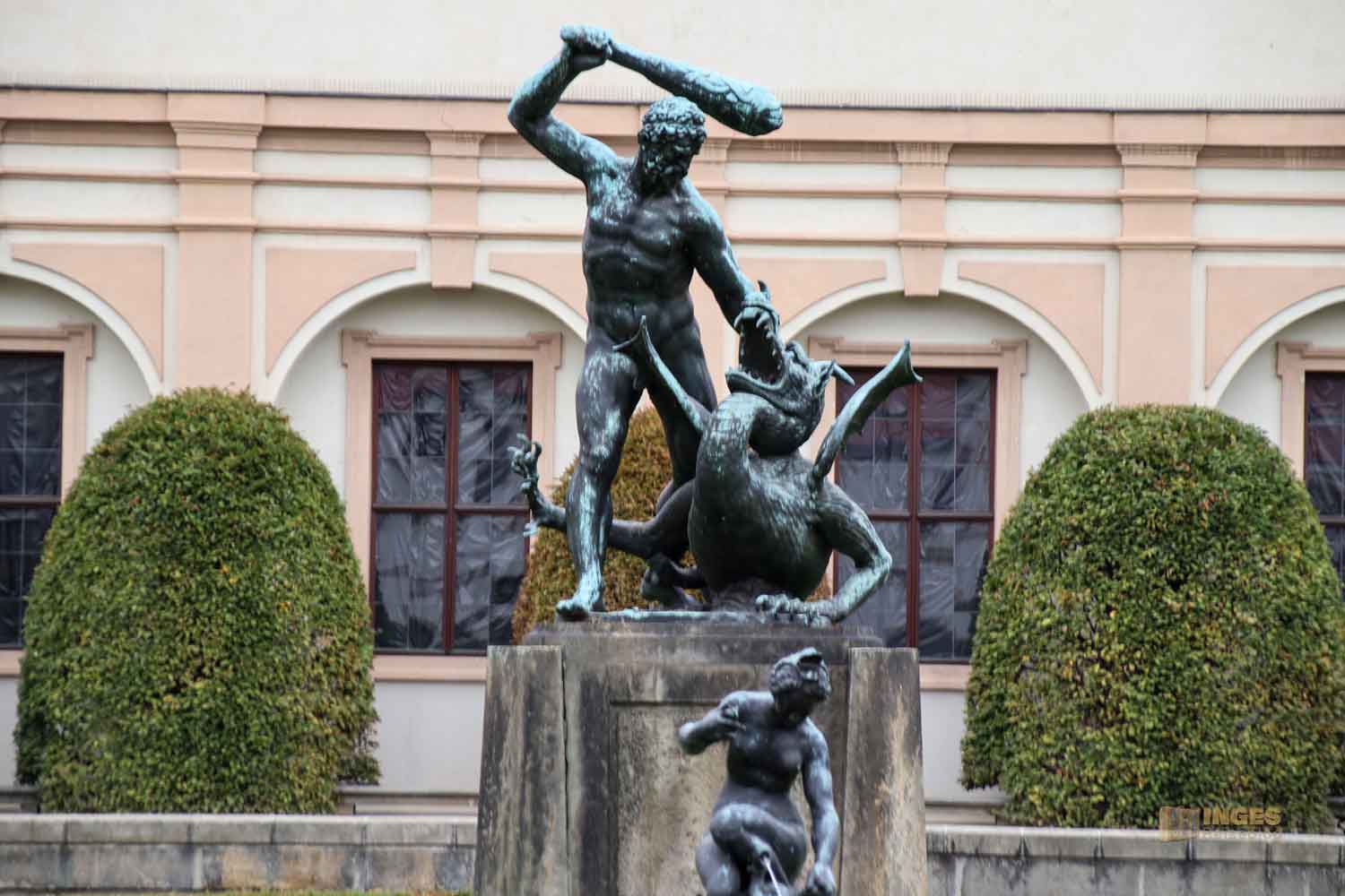 Herkules und der Drache im Teich im Waldstein-Garten in Prag