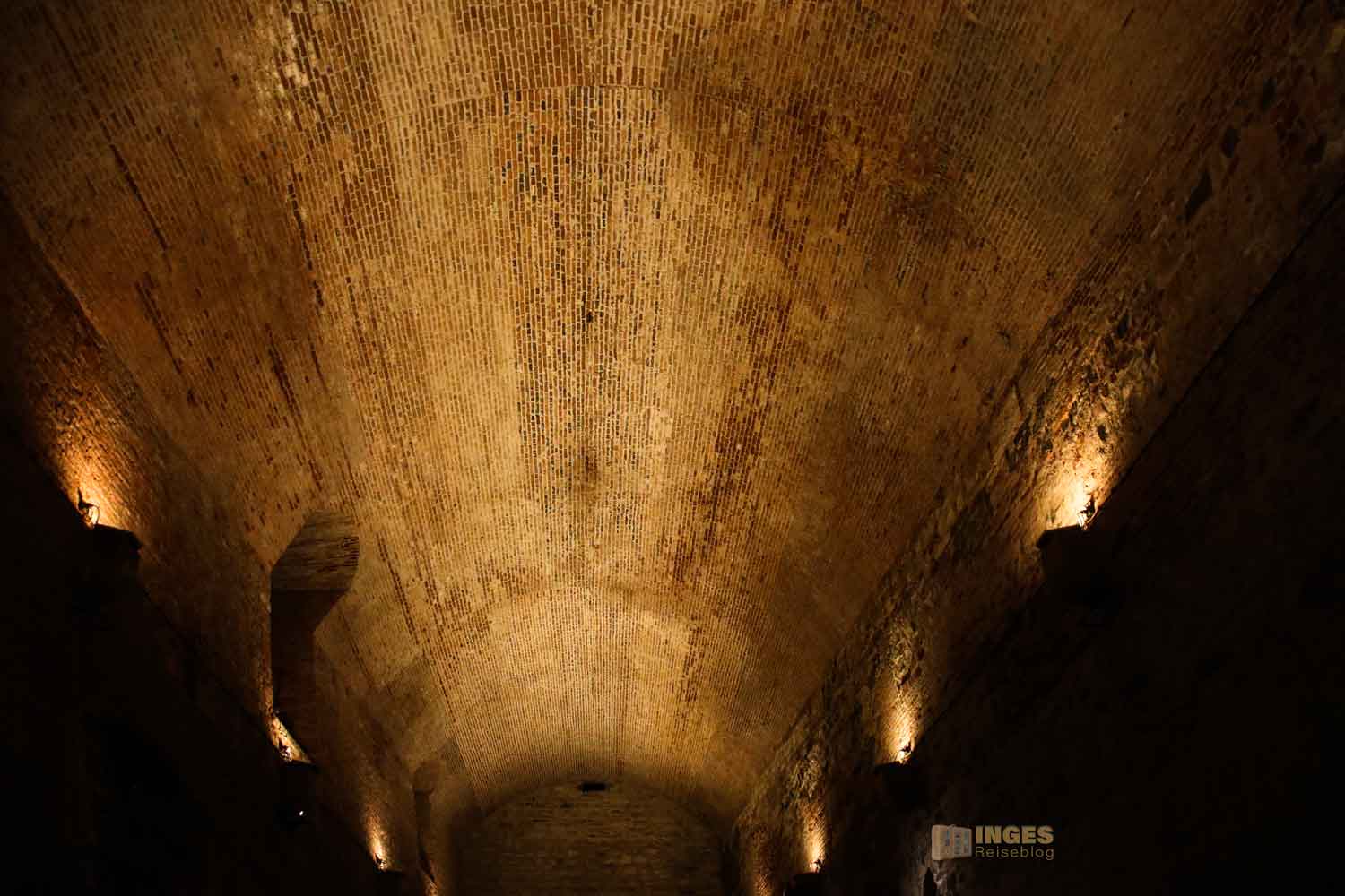Insgesamt sind die unterirdischen Wege über 1 km zu beiden Seiten des Tores lang. Und ich sah im Moment, außer den Lampen in regelmäßigen Abständen an der Wand - NICHTS!