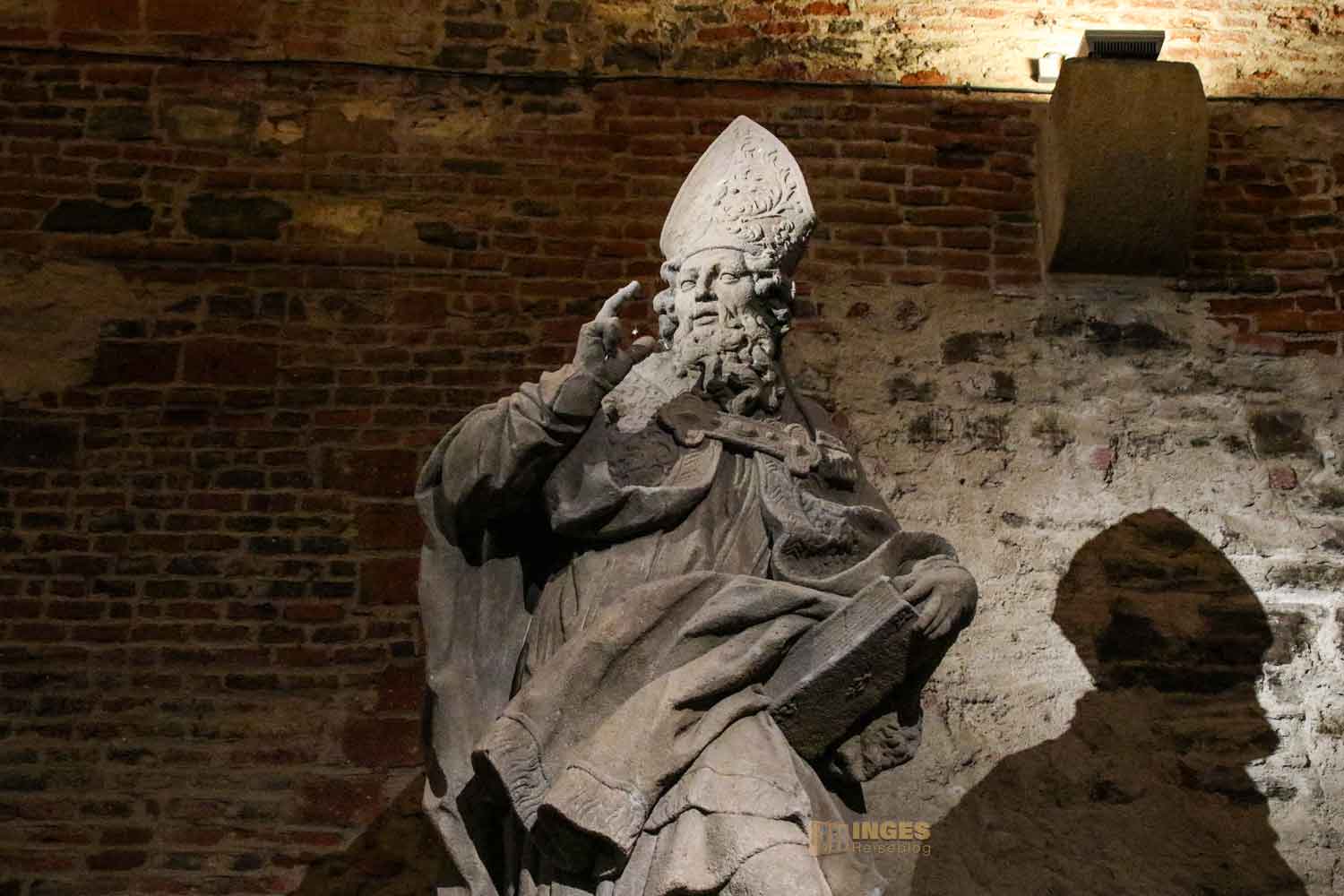 Original-Brückenskulpuren der Karlsbrücke im Gorlice Saal auf dem Vyšehrad