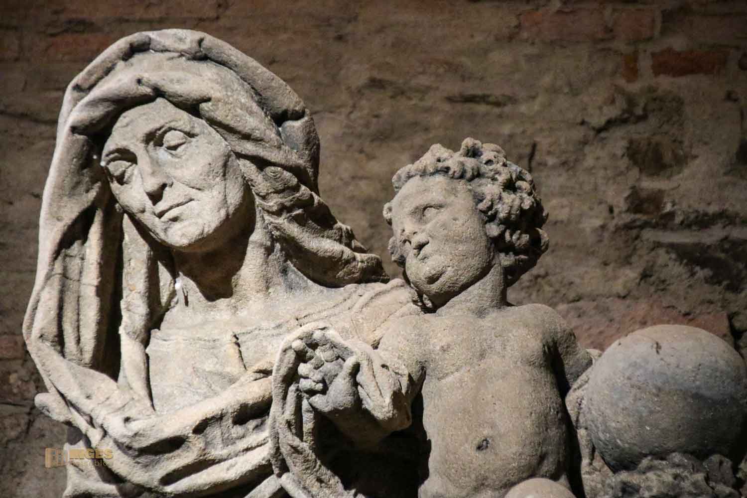 Diese Statuengruppe ist häufig verbreitet und zeigt die Hl. Anna mit ihrer Tochter Maria und dem Jesuskind auf dem Arm. Seit dem 6. Jahrhundert wird die Mutter von Maria verehrt. Anna, von königlicher Herkunft aus dem Geschlecht Davids, wurde wohl erst nach langer Ehe mit Joachim mit Maria schwanger. Falls ihr es noch nicht wisst, die Hl. Anna ist die Schutzpatronin gegen Gewitter. Wenn ihr noch mehr über die Mutter von Maria wissen möchtet, dann klickt einfach HIER.