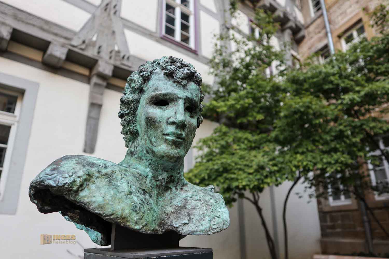 Geht einfach mit wachen Augen, beginnend am Rathaus, durch meine Heimatstadt. Haltet die Augen nach Kleinigkeiten offen, legt auch mal den Kopf in den Nacken und entdeckt meine Detailaufnahmen. Schickt mir von diesen mindestens 15 Fotos  an meine Mailadresse info@inges-reiseblog.de, dann bekommt ihr nach eurer Wahl eines meiner Geschenke.  Die seht ihr hier. Wenn ihr Probleme mit dem Versand der Bilder habt, schreibt mich an, oder zieht die Bilder einfach kleiner.
