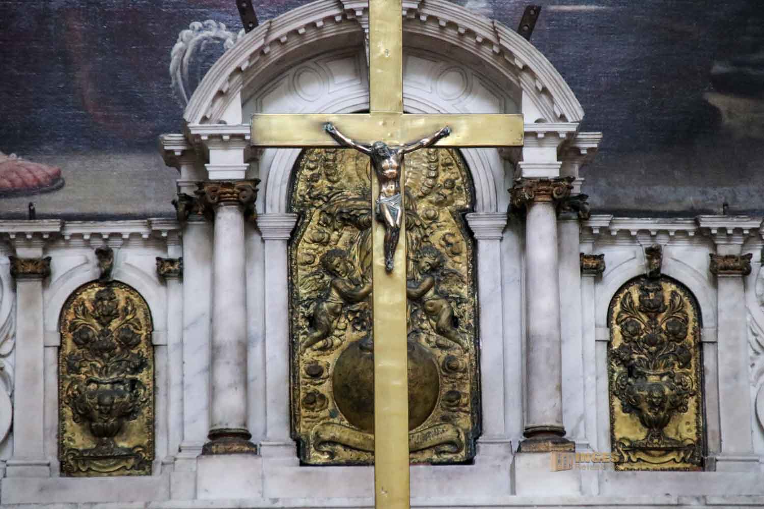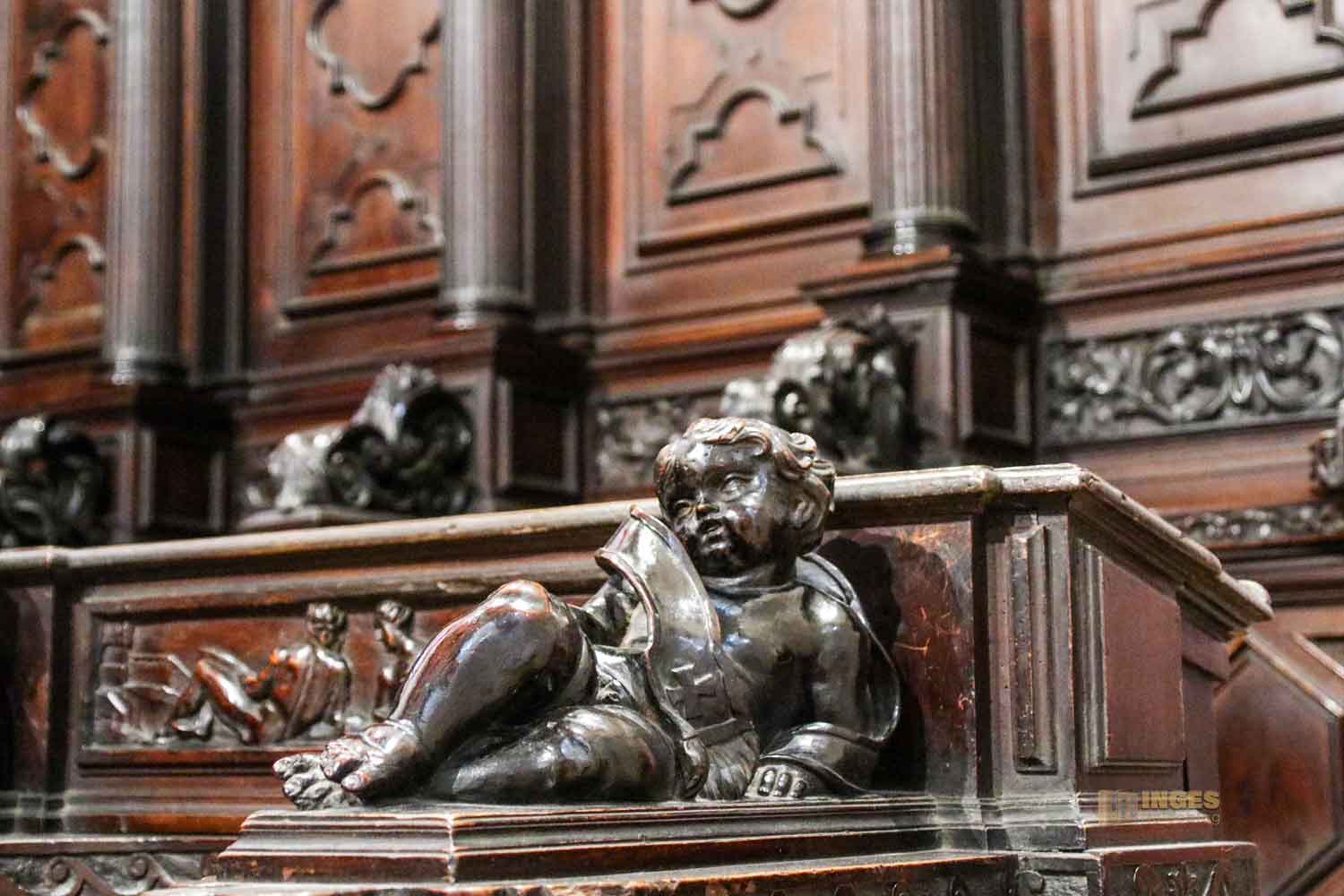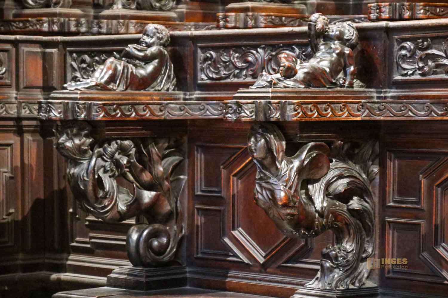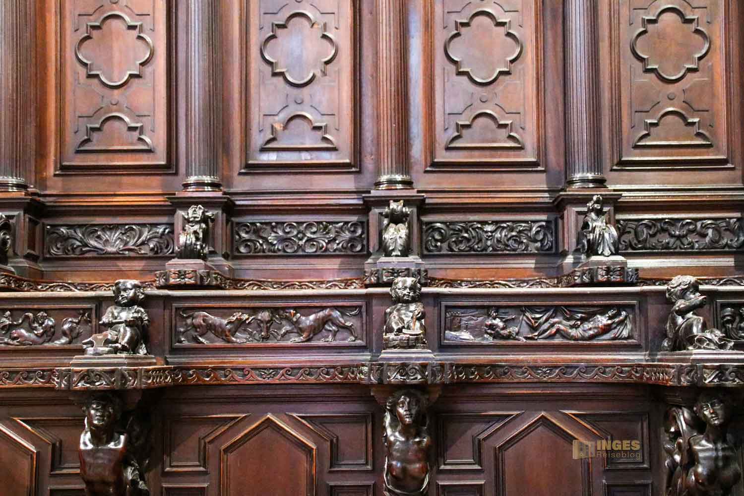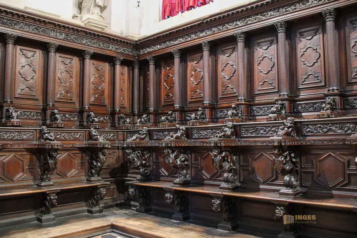 Tja, wie mache ich jetzt weiter in meinem Bericht? Die Kirche ist kostenfrei zu besichtigen, vom Umgang aus war aber das Betreten der 'Krone' in dem der Hochaltar steht, nur Betenden erlaubt. In vielen Kirchen ist es üblich, dass den betenden Besuchern ein abgeschotteter Bereich zur Verfügung steht. Was völlig in Ordnung ist. Ich respektiere diese Anordnung und verzichte auf Fotos, solange sich dort Menschen zum Gebet aufhalten. Deshalb gab es anfangs nur Fotos aus der Ferne. Gegen ein kleines Entgelt von 4 € kann man die Sakristei und den Chor hinter dem Hauptaltar besichtigen, und kommt .... tadaaaa direkt am Hauptaltar zum Ausgang zum Innenraum. Und da kein Betender sich gerade dort aufgehalten hat, konnte ich mir jetzt den