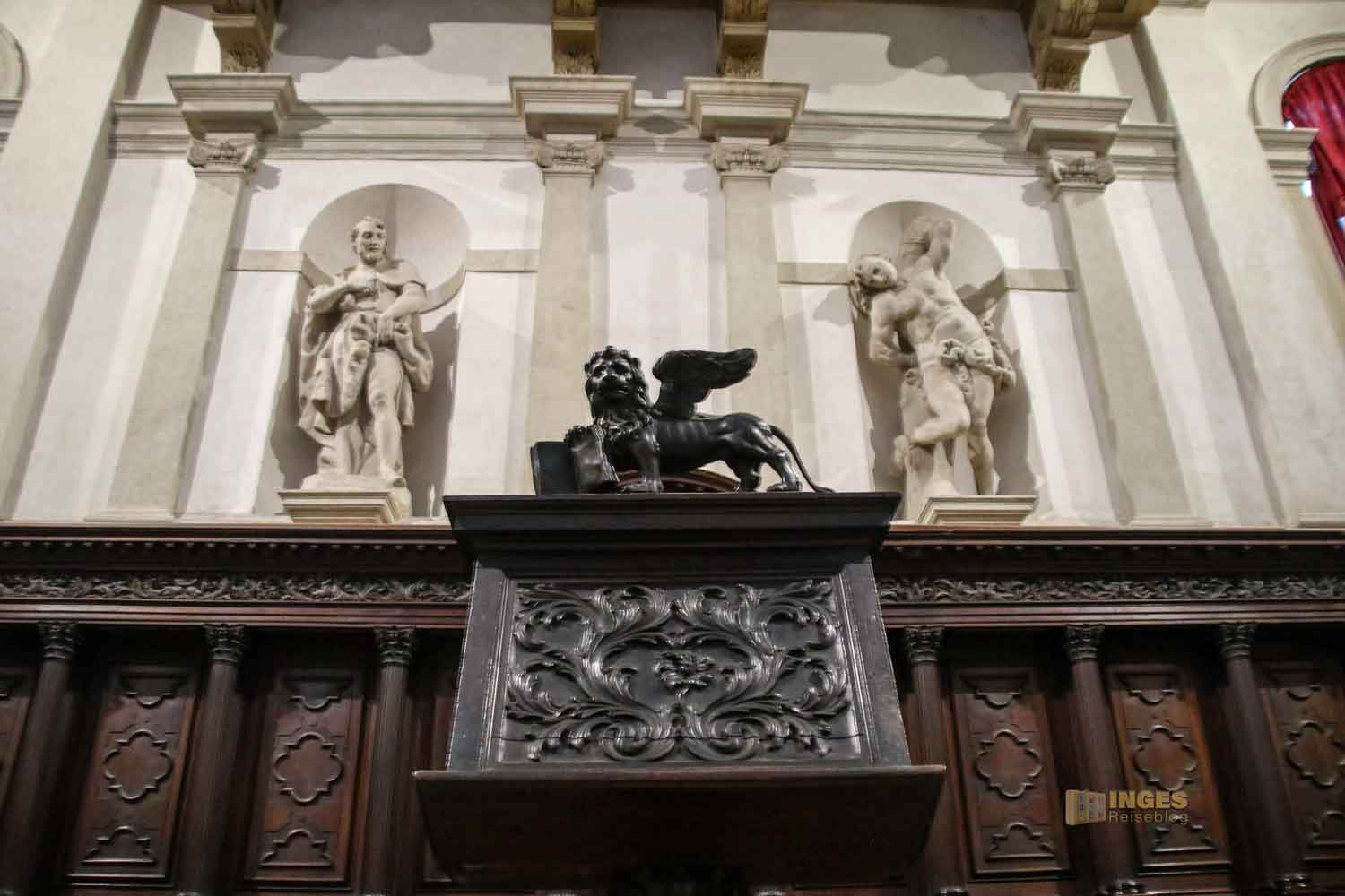 Mein Kopf geht nach oben, und ich erblicke nochmal drei Deckengemälde von Tizian. Immer wieder fasziniert bin ich vom Chorgestühl in den jeweiligen Kirchen. Leider konnte ich für die Salute nichts darüber in Erfahrung bringen.