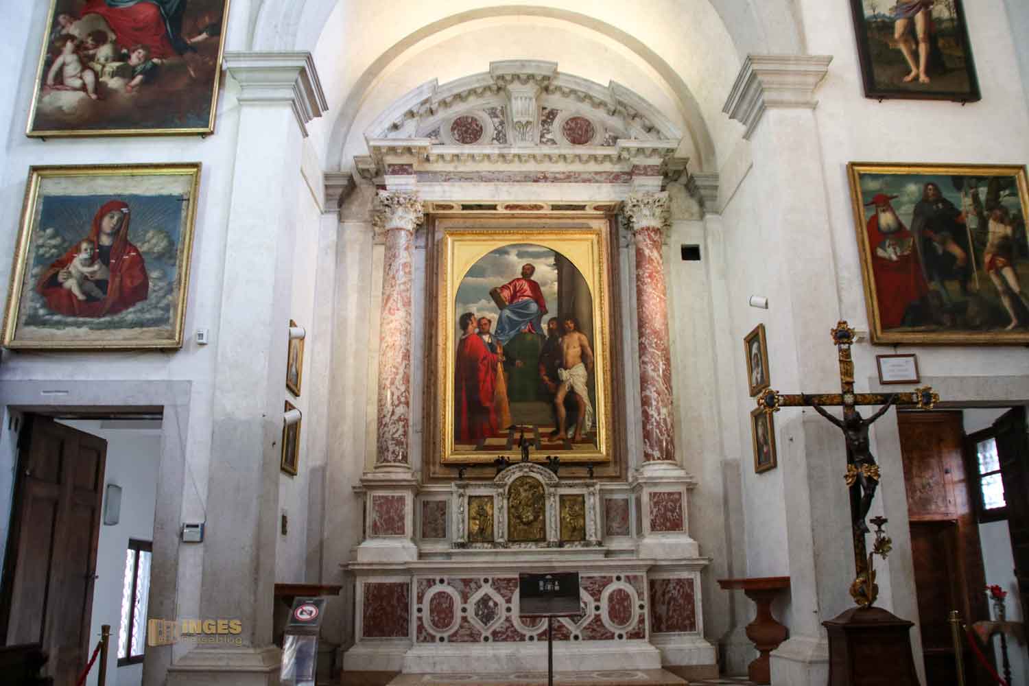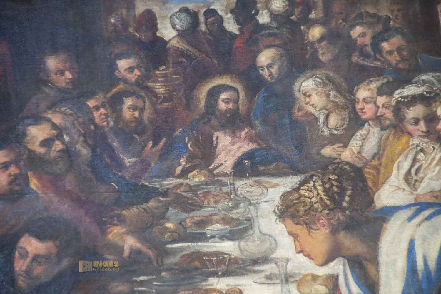 Tizian hat 1555 dieses Altarbild geschaffen. Alle diese Themen, die man in so vielen anderen Kirchen auch wiederfindet, kann man nicht neu erfinden. Aber man kann sie jedesmal anders interpretieren und malen. Immer liegt der Ausdruck des Künstlers in seinen Werken. Ich hab in vielen anderen Kirchen z.B. das letzte Abendmahl von Leonardo da Vinci, dem in Venedig ein Museum gewidmet ist, gesehen. Jedes ist anders, und auf seine Art schön.