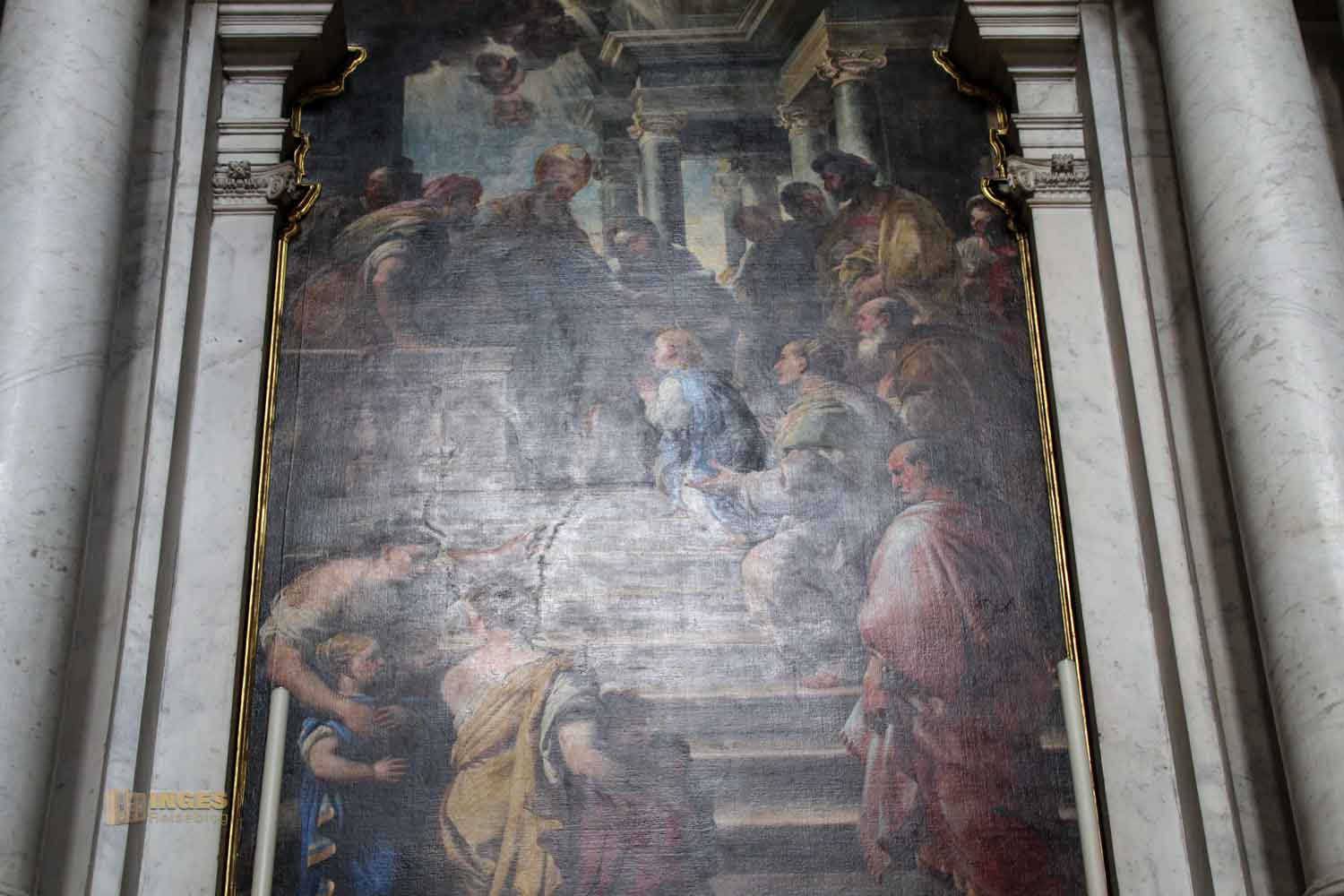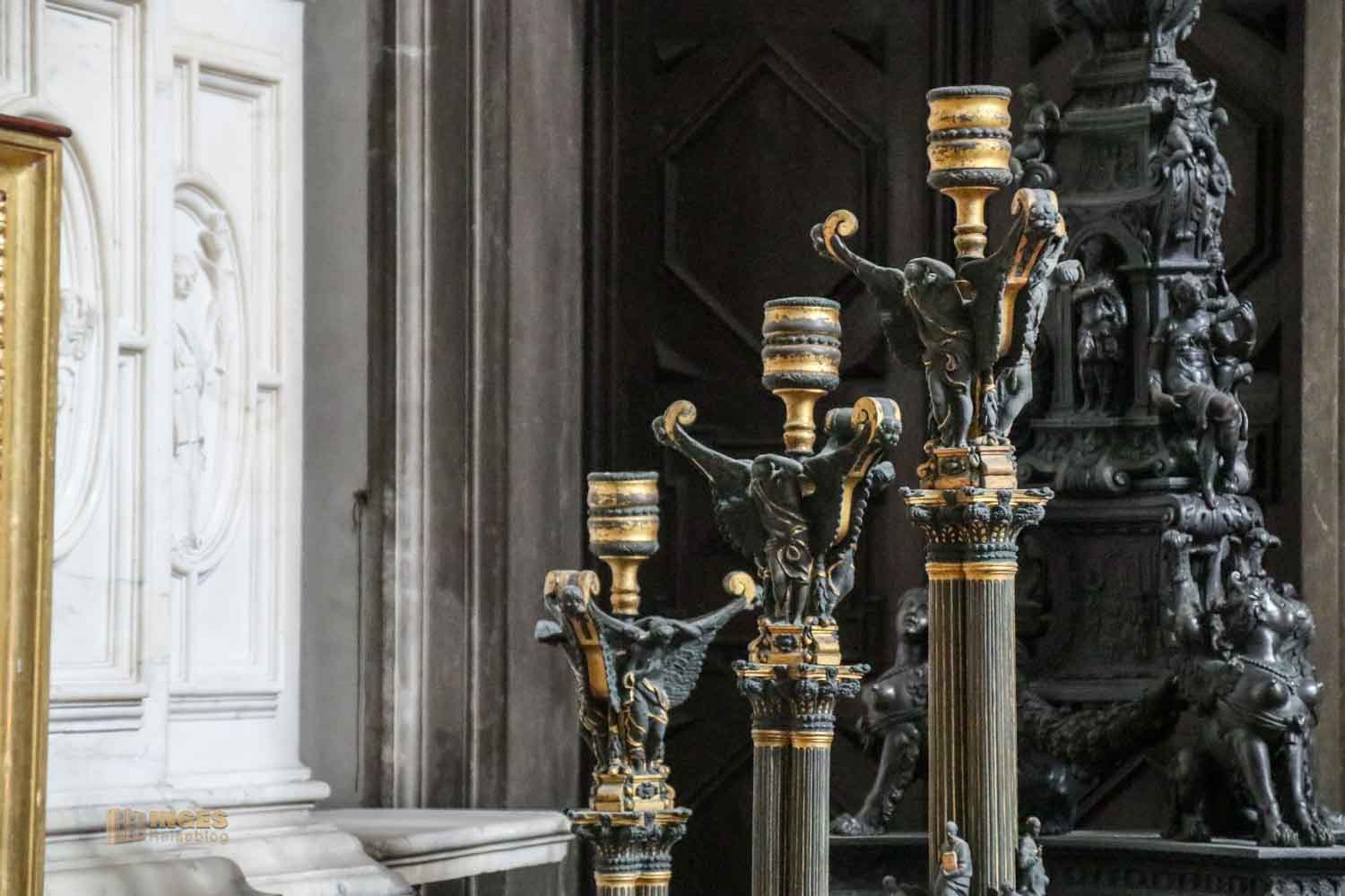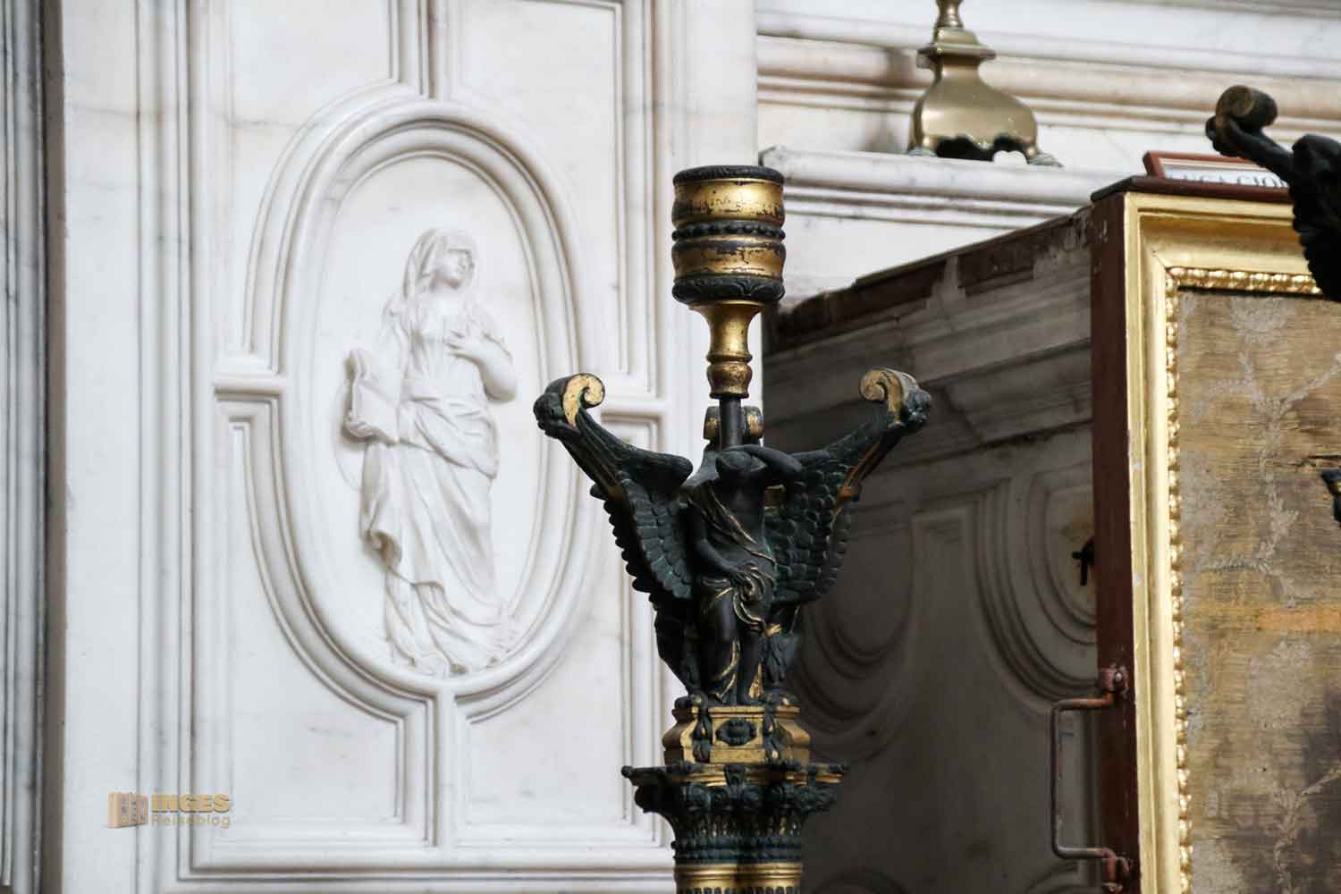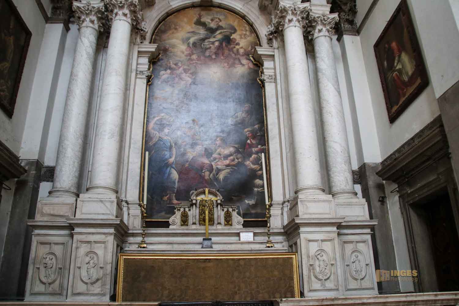 dessen Altarbild Luca Giordano 1674 gemalt hat. Als kleines Mädchen geht Maria die Stufen im Tempel hinauf. Den zweiten Blick verdienen die wunderschönen Leuchter in dieser Seitenkapelle - von mir bekommen sie gleich mehrere 😊