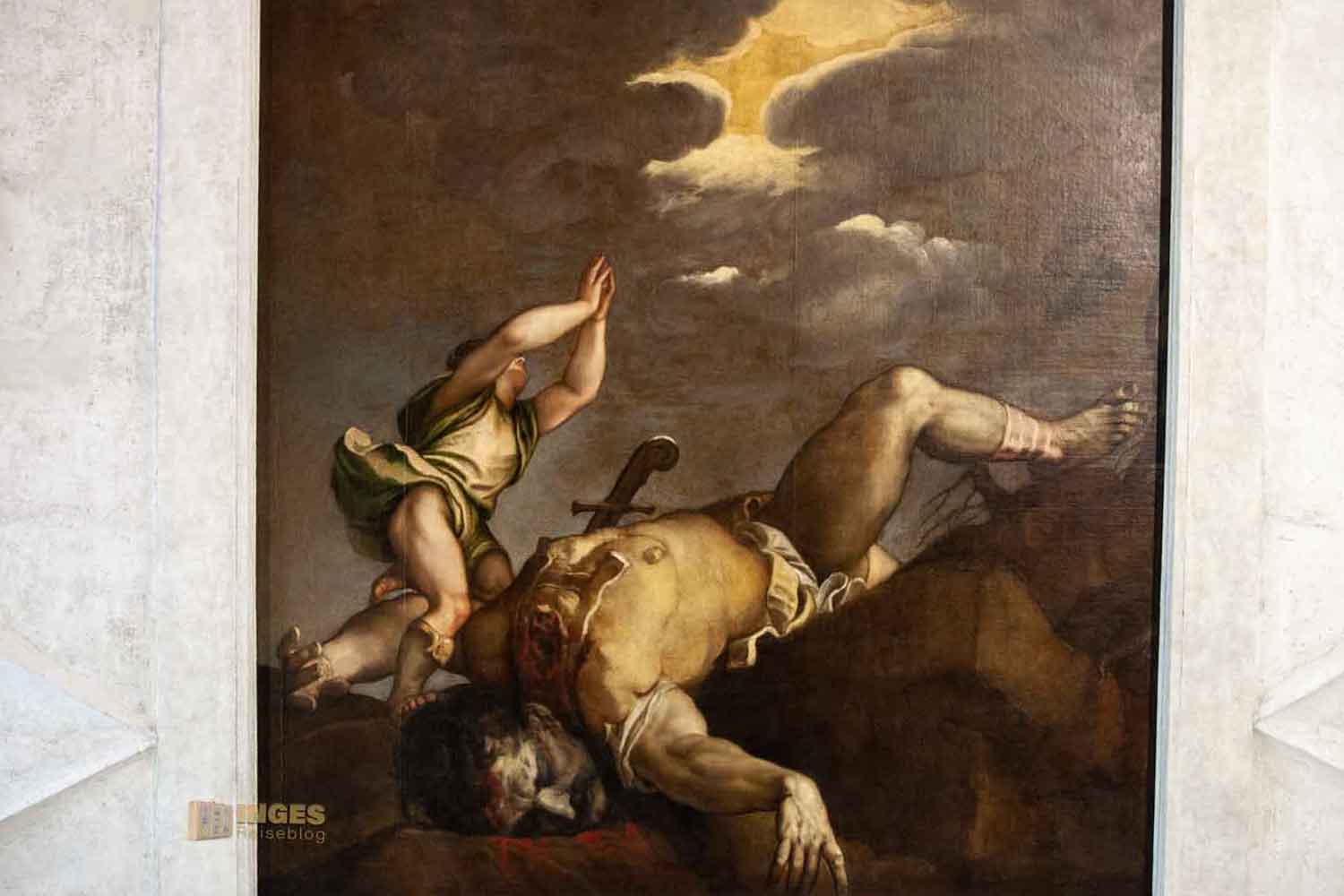 Wer mehrere Werke von Tintoretto gesehen hat, der erkennt ihn möglicherweise an seinem Stil. Ich habe in Venedig lange überlegt, ob ich seine Werke als zu trist und dunkel einstufen soll. Immer wenn ich das wollte, tauchte dann doch wieder ein etwas farbenfroheres Gemälde von ihm auf. Ich hab deshalb auf diese Frage immer noch keine Antwort. Große Gemälde von ihm könnt ihr in seiner Pfarrkirche in Cannaregio sehen, in der Kirche Madonna dell' Orto, in der er auch mit zwei seiner Kinder die letzte Ruhestätte gefunden hat.