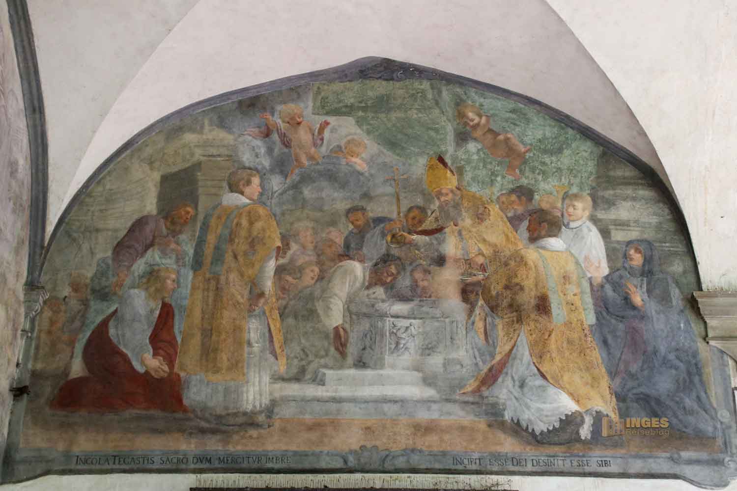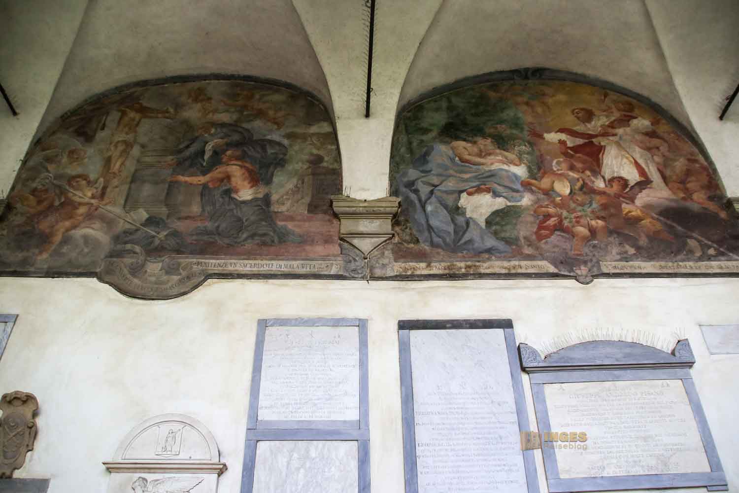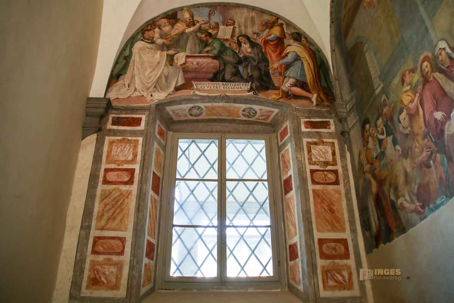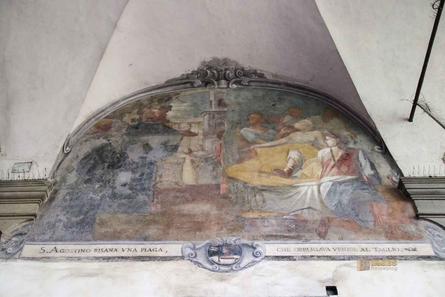 lasst einfach auf euch wirken. Es lohnt sich tatsächlich, auch wenn ich immer nur wenige Besucher in den jeweiligen Kreuzgängen der Kirchen gesehen habe, schon allein deshalb sie nicht auszulassen. Ende des 17. Jahrhunderts haben verschiedene Künstler Szenen aus dem Leben des Hl. Augustinus und anderer Heiliger des Ordens an die Wände gezaubert.