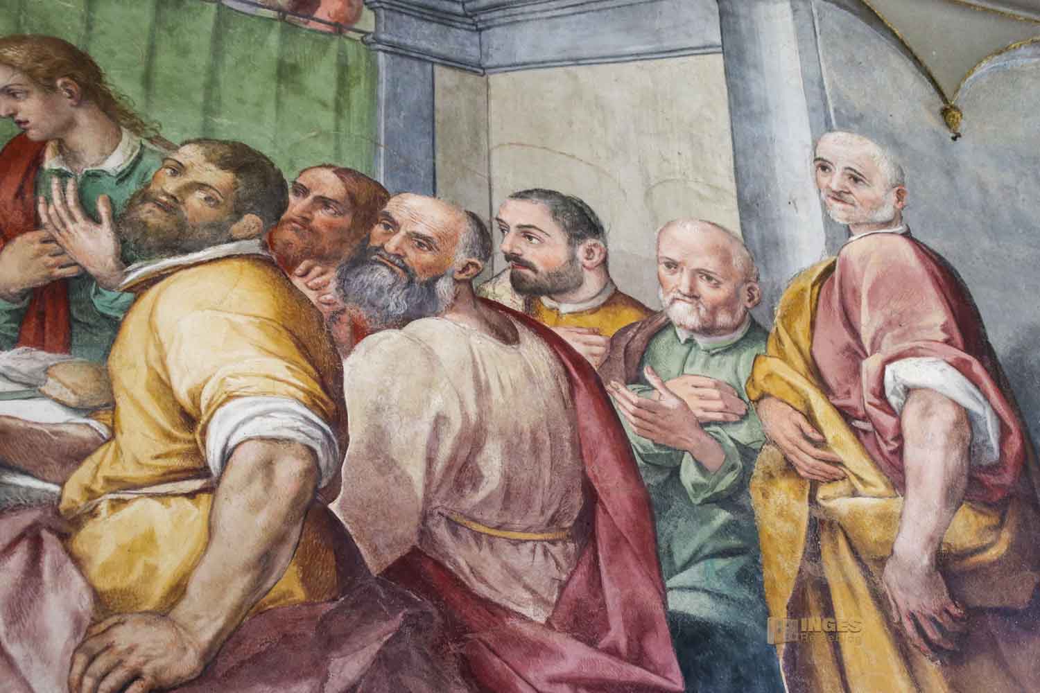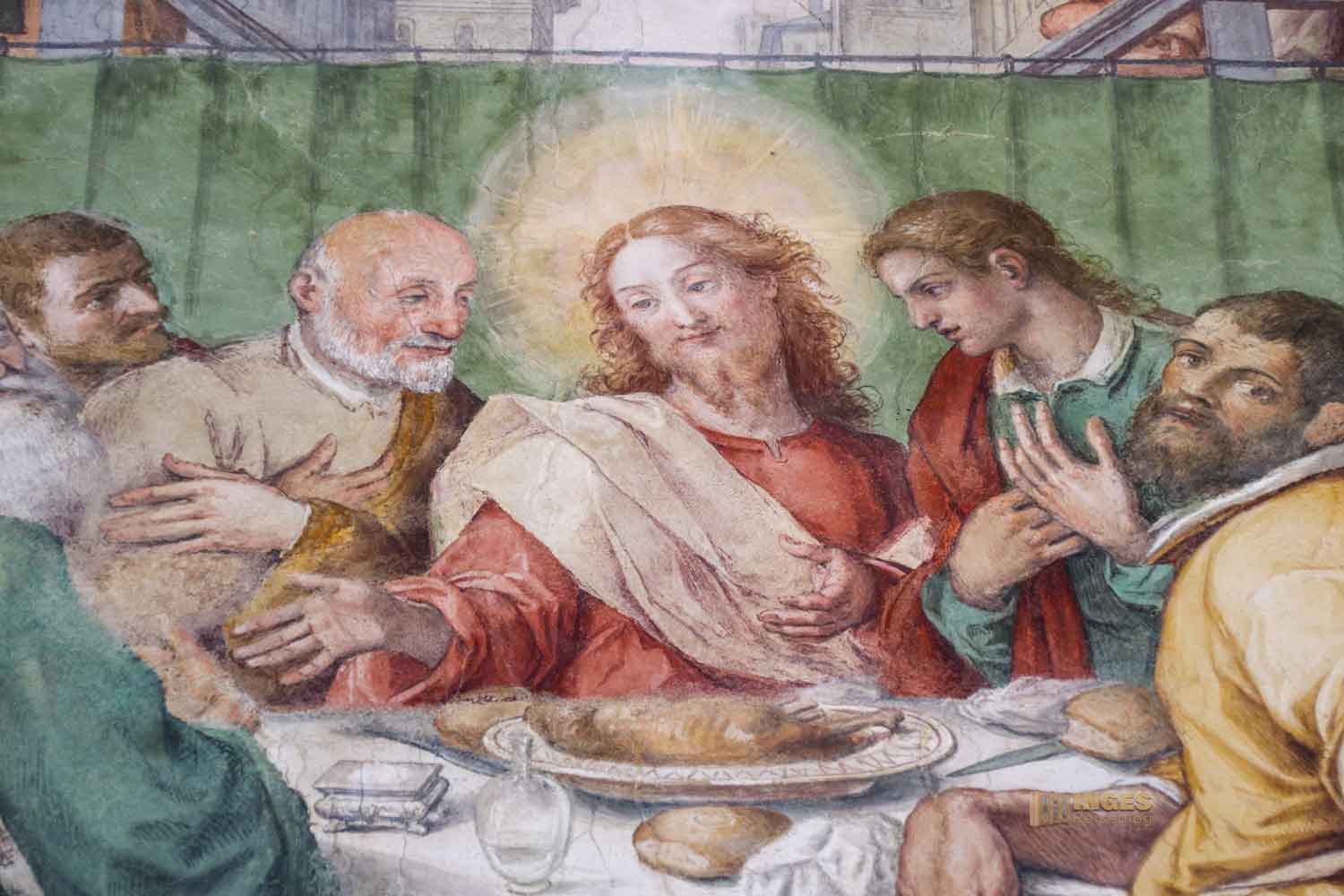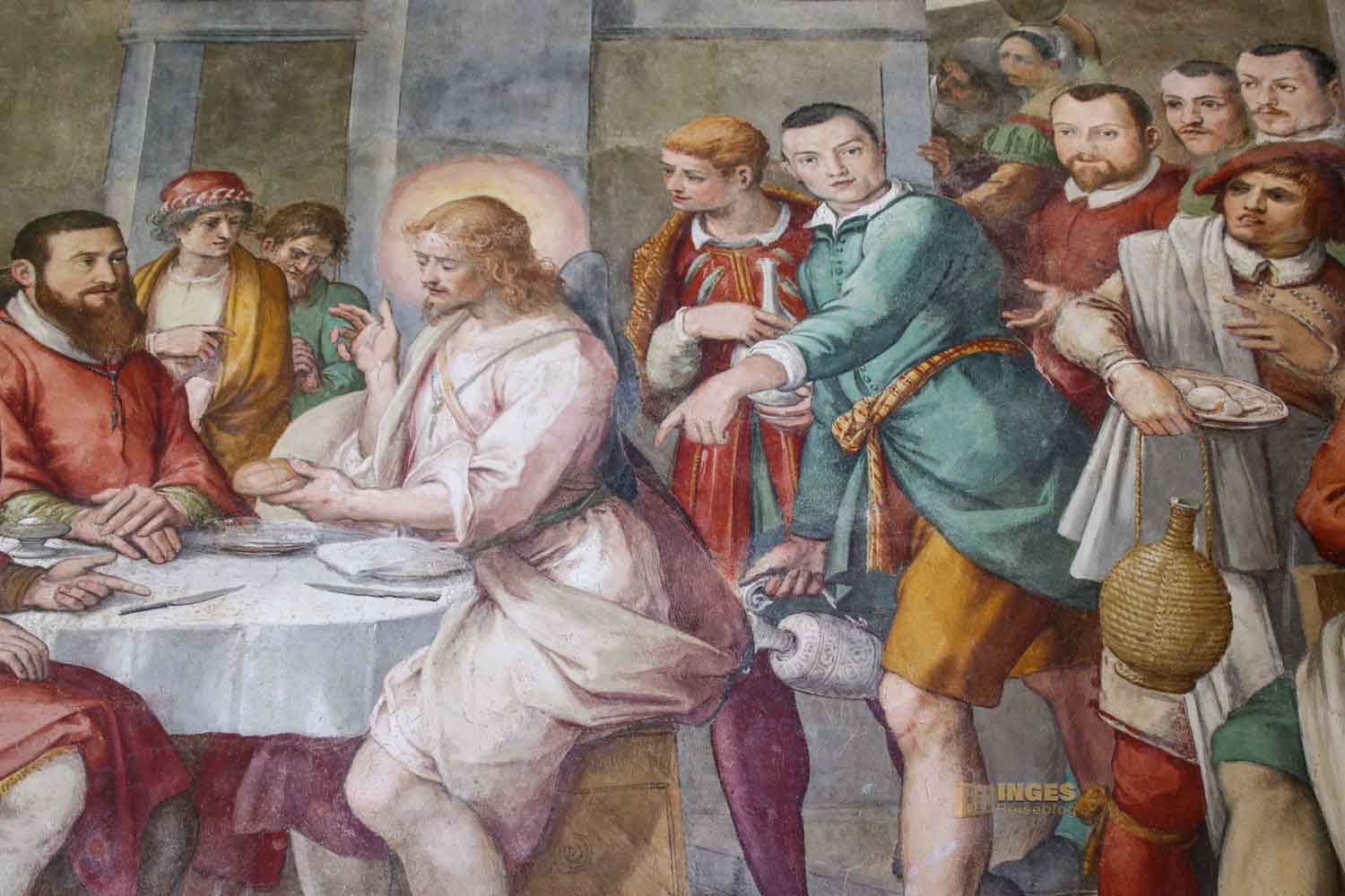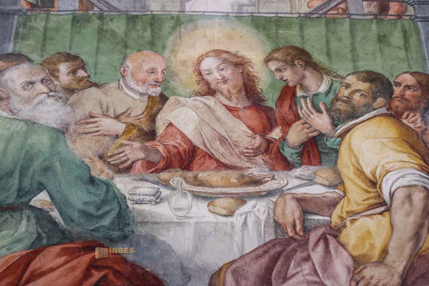 In einem kleinen Raum, man könnte ihn fast übersehen, ist dieses herrliche Wandbild zu sehen. Ich nenn es einfach mal "Jesus mit seinen Jüngern", denn ich hab null Informationen dazu gefunden. Vielleicht weiß von euch jemand näheres darüber. Mein Mann hat es im Gesamten als Panoramabild aufgenommen.