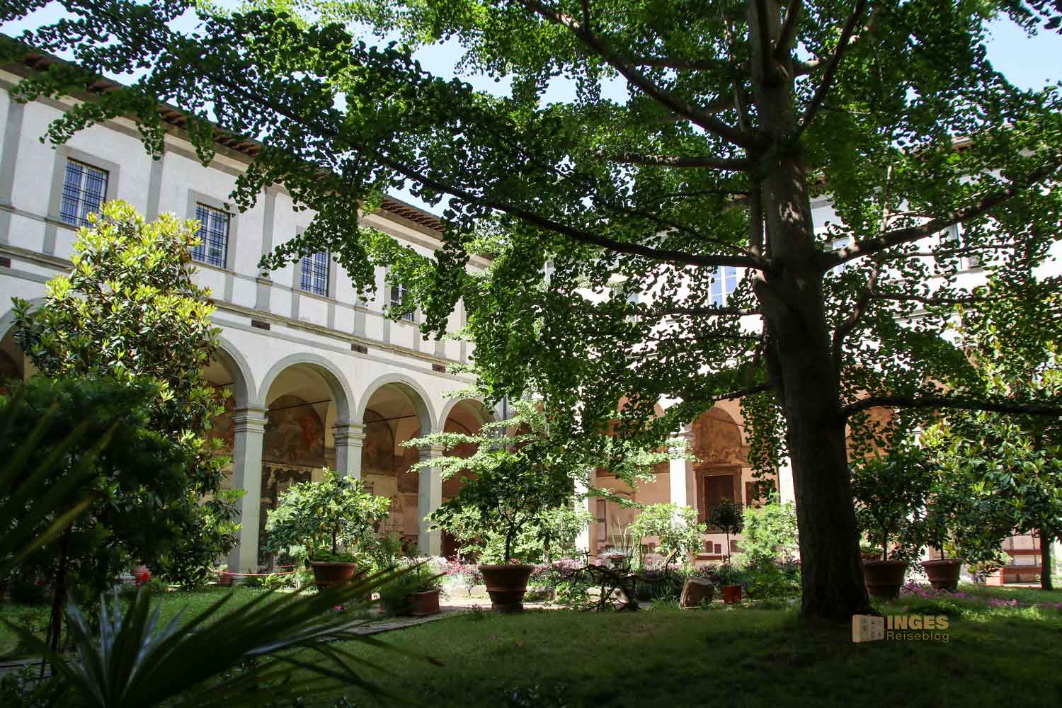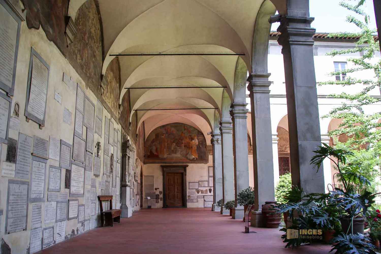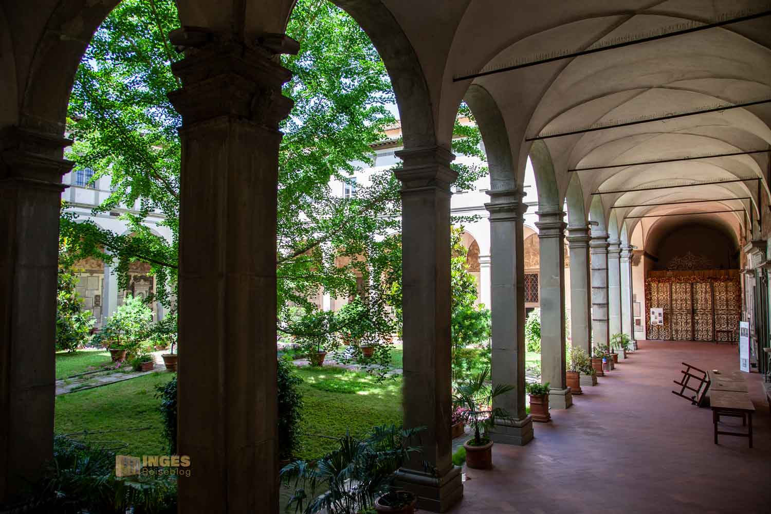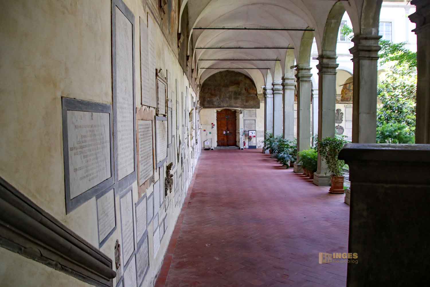 Nahezu fast an jeder Kirche sind in Florenz Kreuzgänge zu sehen. So um 1600 wurde der von uns besuchte erste Kreuzgang gebaut.