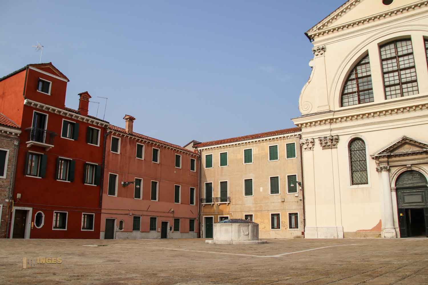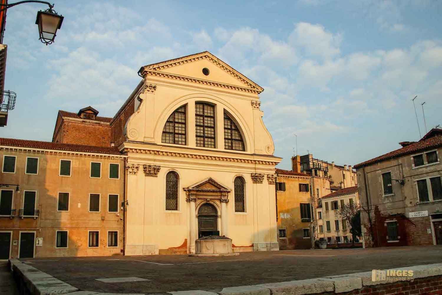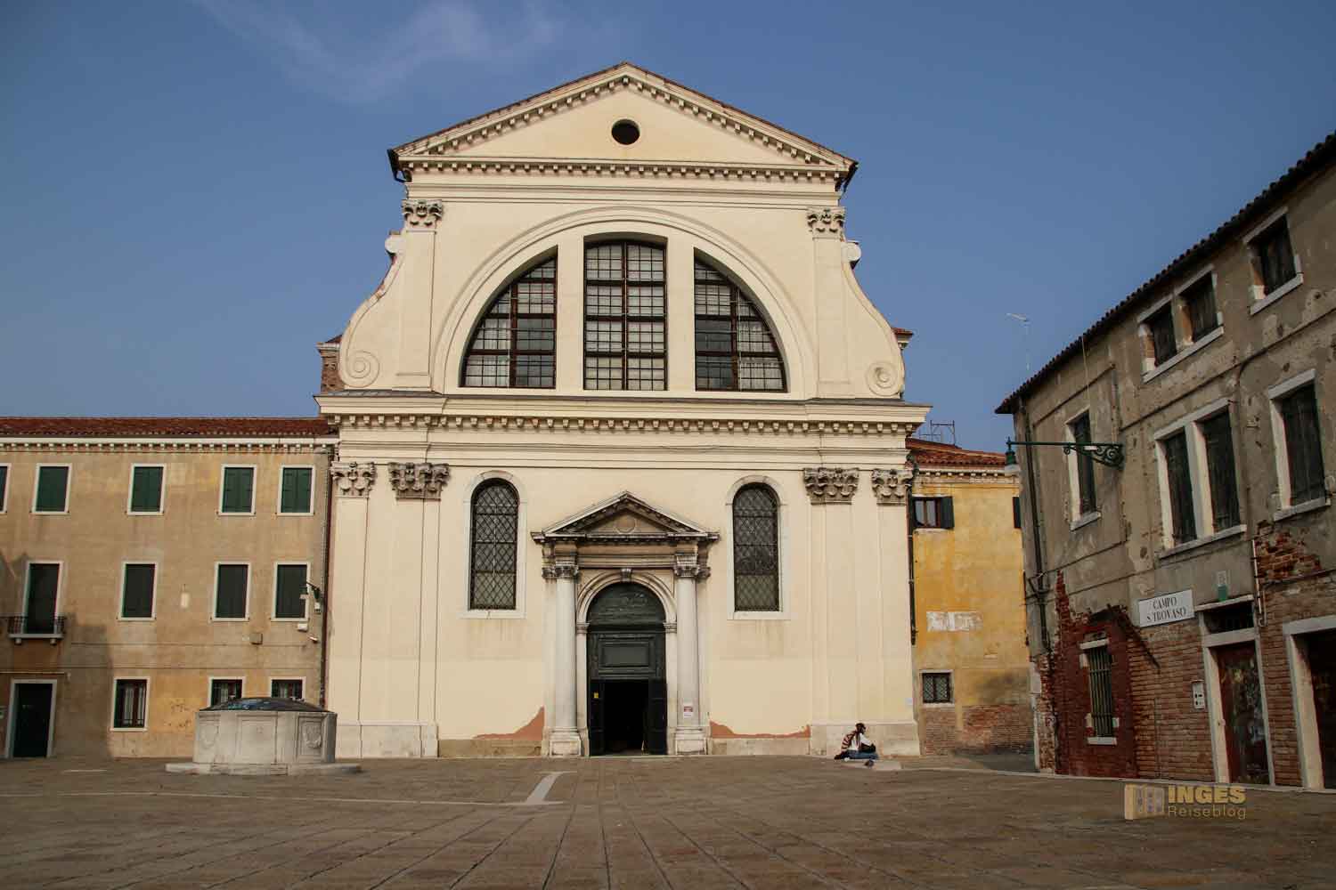 die am gleichnamigen Rio de San Trovaso liegt, der den Canal Grande mit dem Canal della Guidecca verbindet. So gut wie jede Kirche in Venedig hat einen Kirchplatz, auch hier -