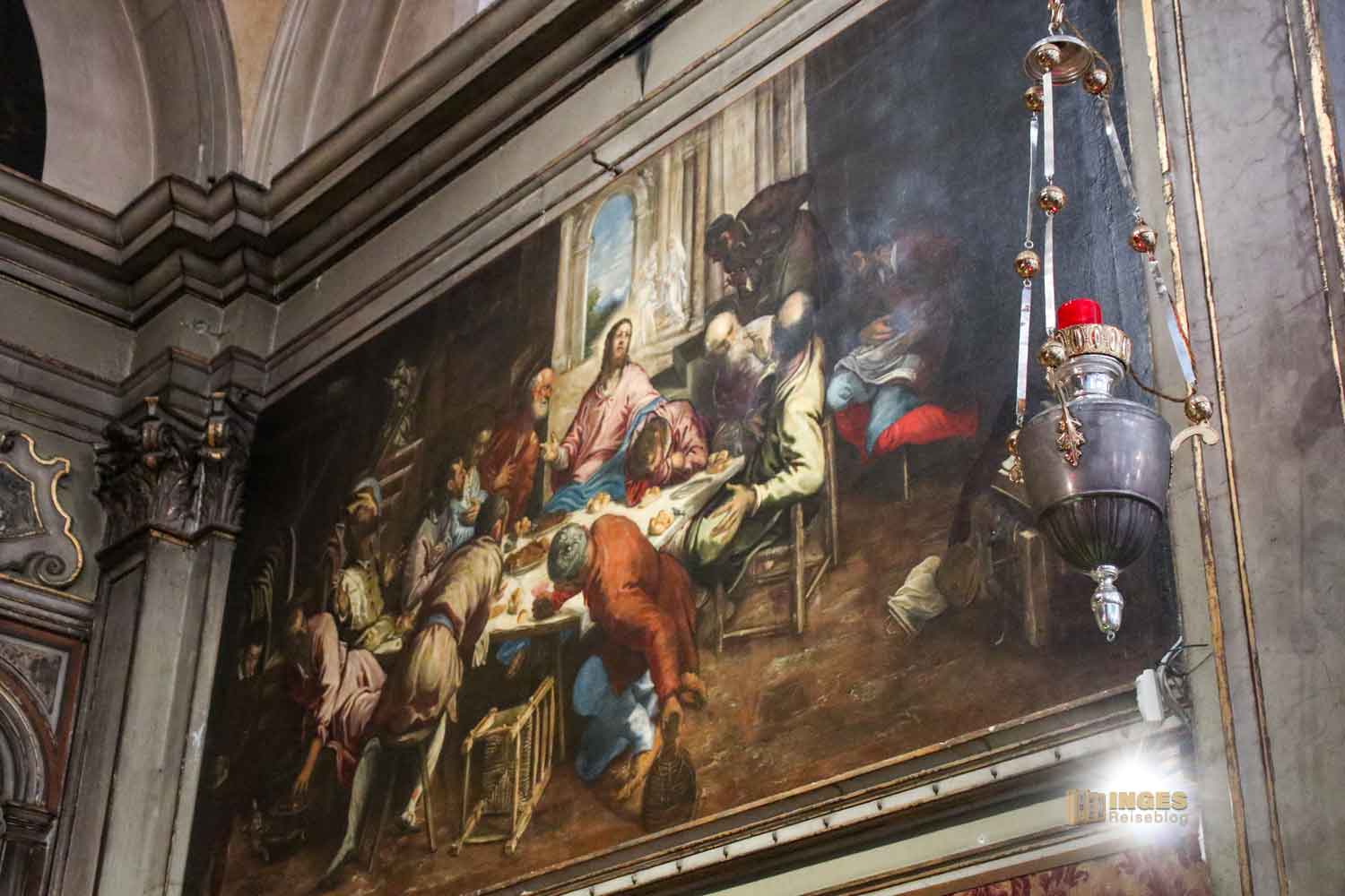 ist rechts vom Altar zu sehen. Ende des 16. Jahrhunderts hat der Sohn von Jacopo Tintoretto, Domenico Tintoretto dieses Gemälde gemalt. Man muss es nicht erklären.