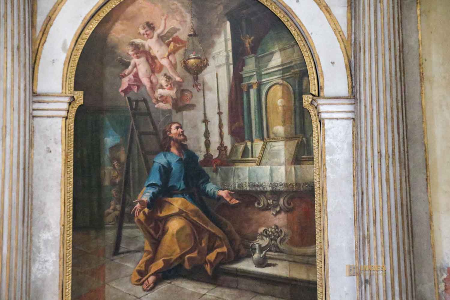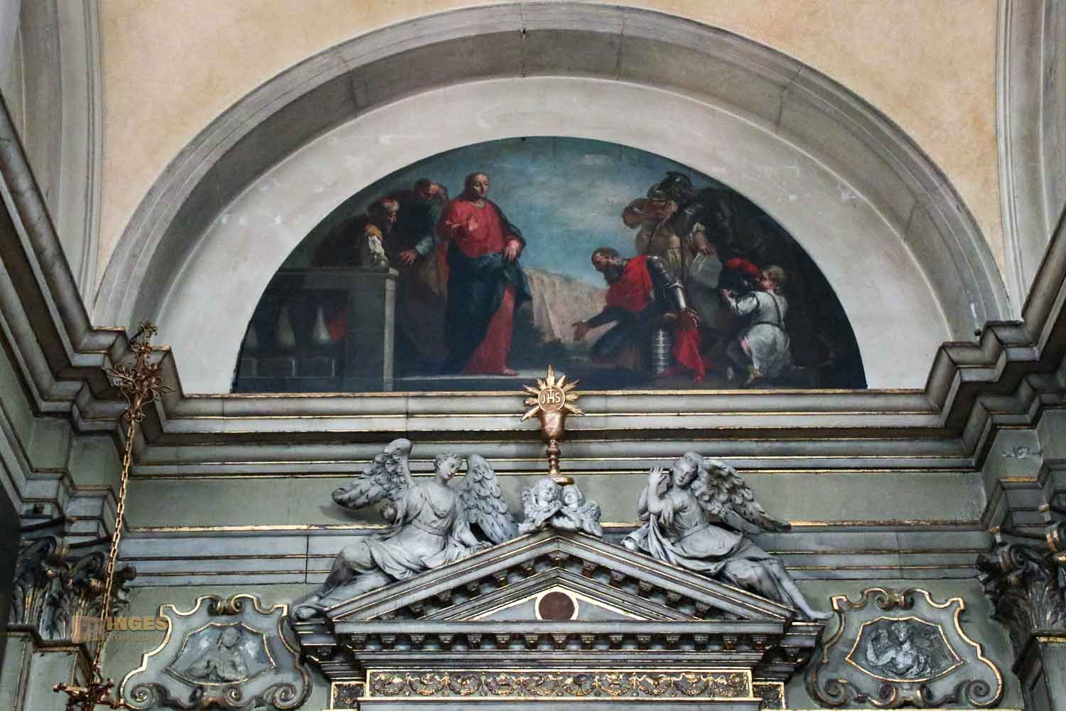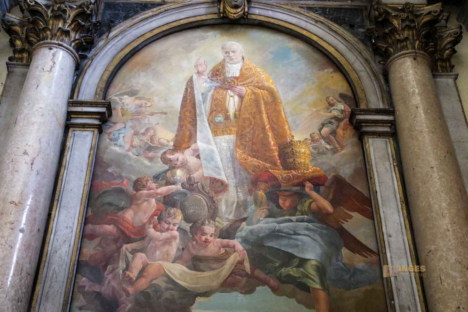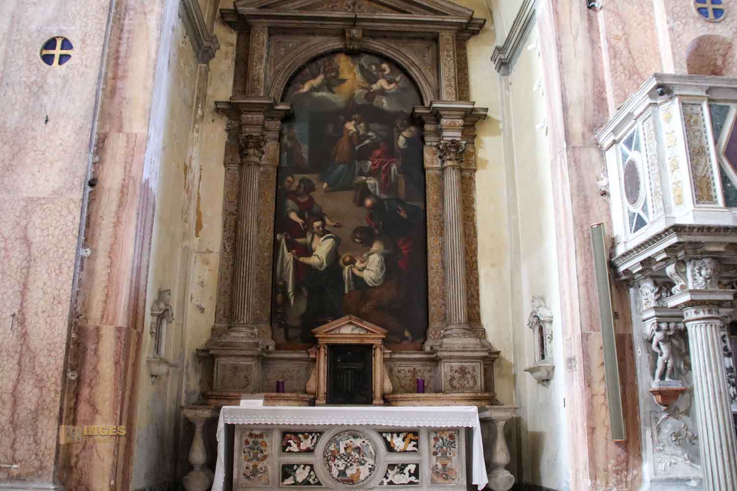 die sich links vom Hauptaltar befindet. Antonio Milledonne hat ihn gespendet, und wie oft, wird es dann auch die Grabkapelle des Sponsors. Er ist am Altar begraben.