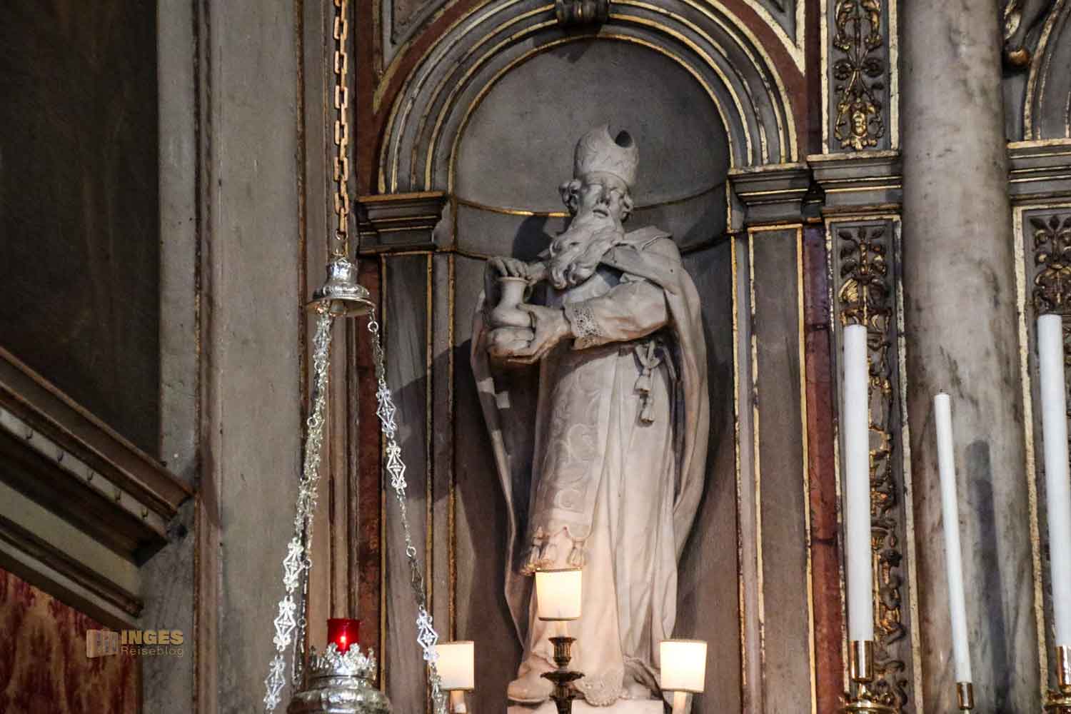 In so gut wie keiner Kirche darf er fehlen, mal als Statue, mal als Gemälde. Hier links von der Kapelle wird der Hl. Josef mit dem Christuskind gezeigt.
