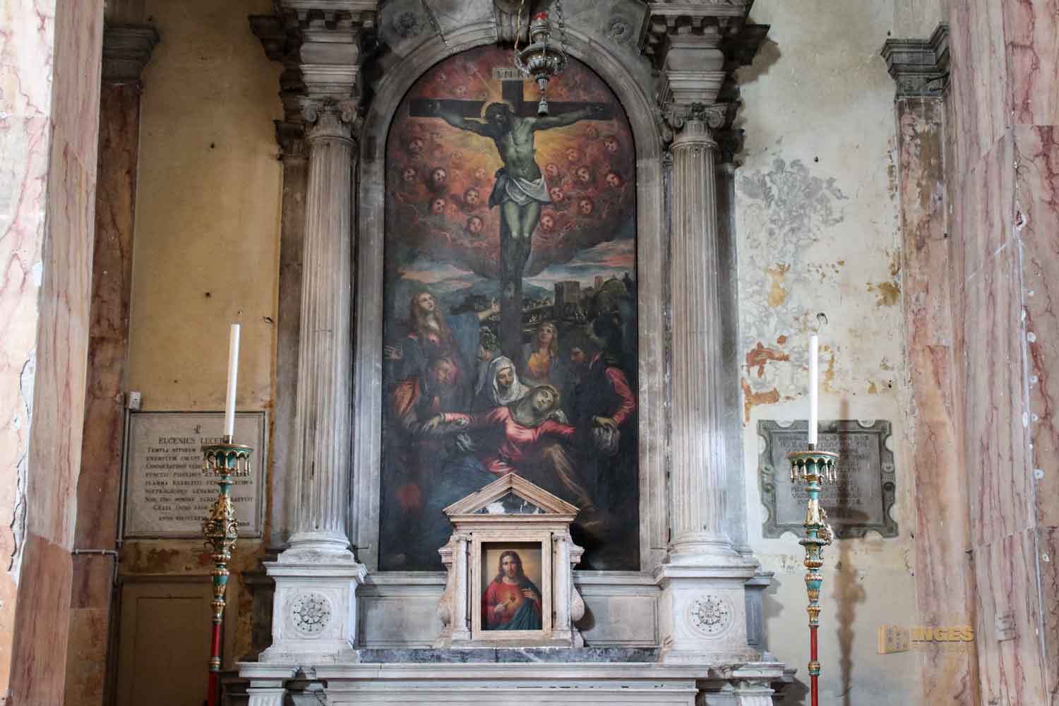 In dieser Kapelle war wieder Domenico am Werk, mit dem Altarbild "Christus am Kreuz und Maria". 1589 ist es entstanden.