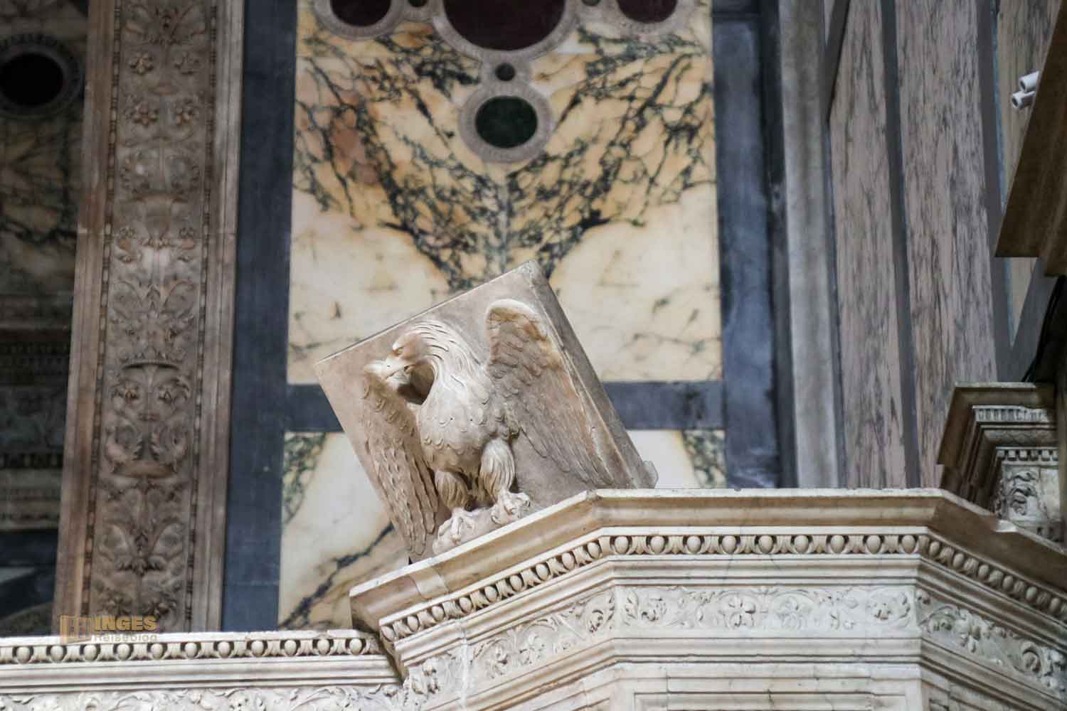 ist aber trotzdem erhöht im Presbyterium. Auf jeder Seite des Altars ein Ambo, an dem das Wort Gottes verkündet wird. Wer nicht die Möglichkeit hat, die herrliche Kirche vor Ort anzuschauen, dem hole ich die Besonderheiten der Amben, die sich jeweils seitlich des Treppenaufgangs mit den 14 Stufen zum Altar befinden, ein bisschen näher.