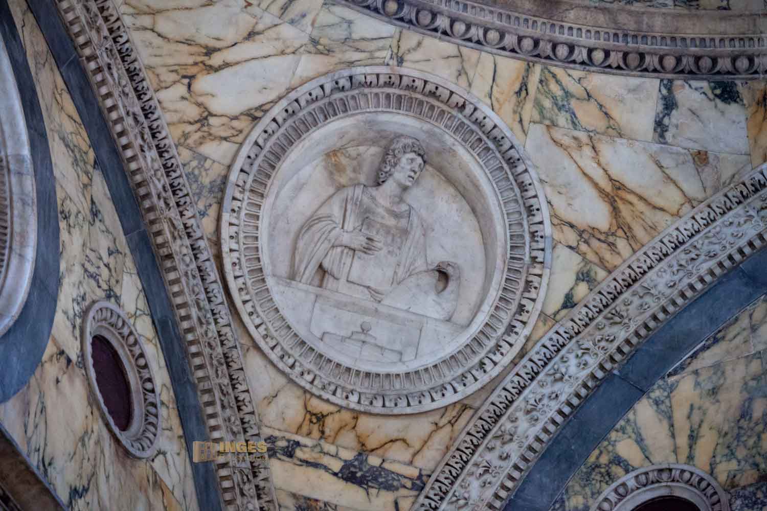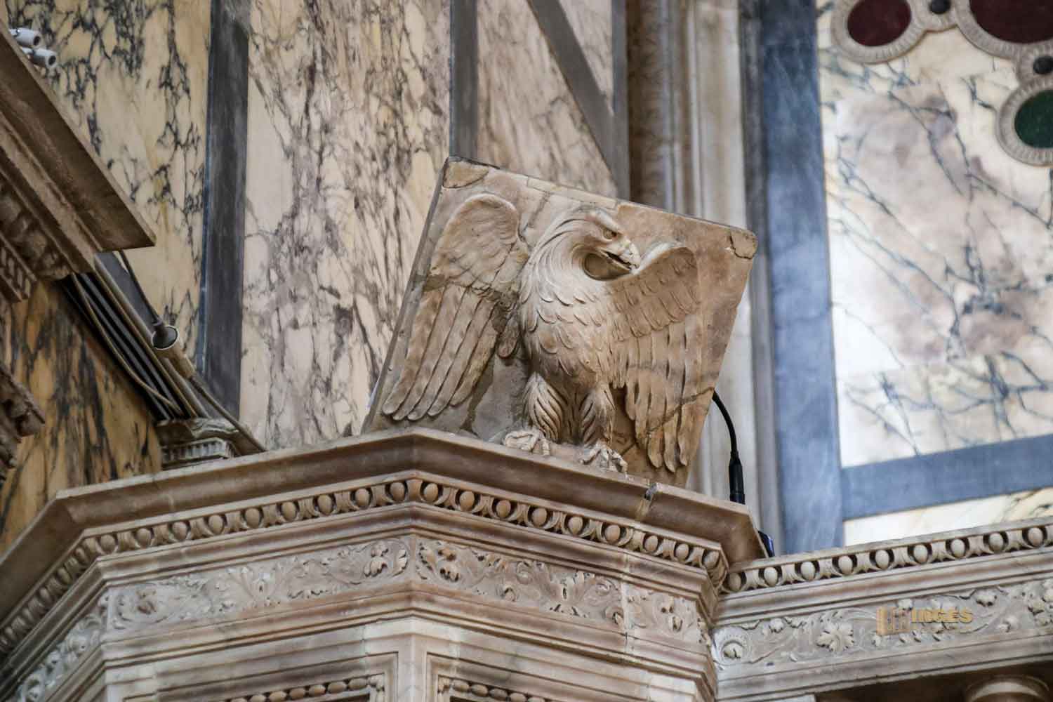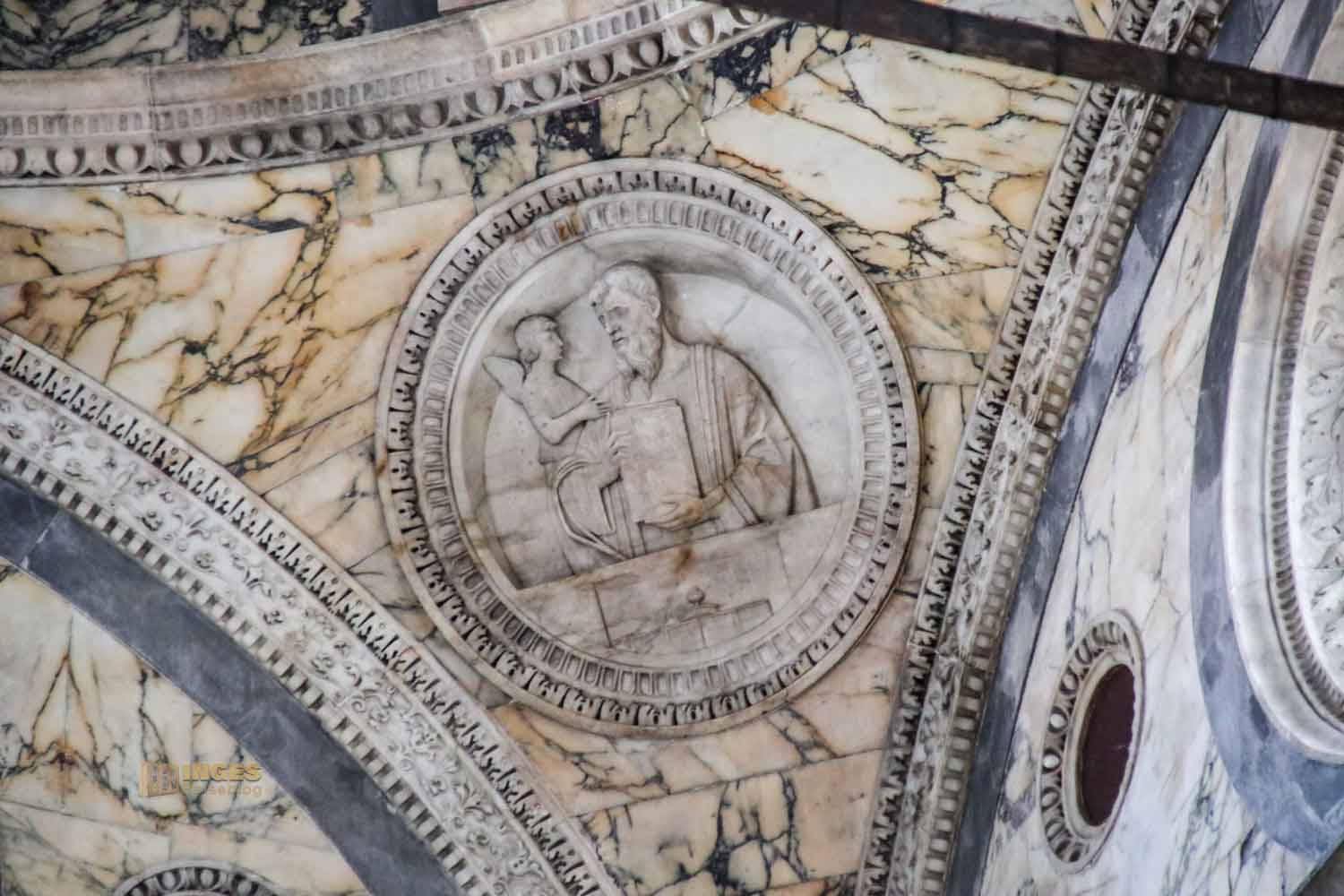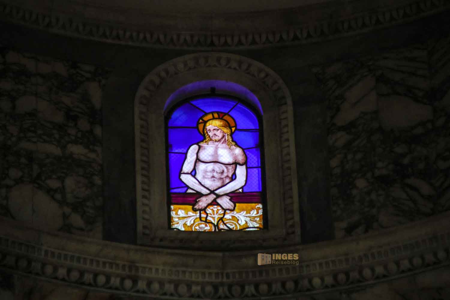 Die Fassadengestaltung mit Marmor, setzt sich dann im Inneren der Kirche fort.