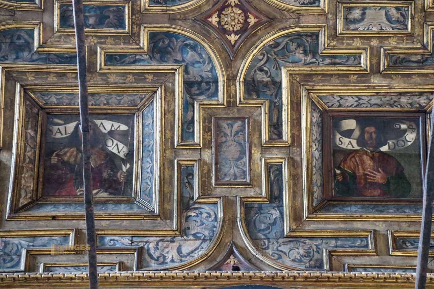 Wer sich hier jetzt beobachtet fühlt, der liegt nicht falsch. Denn viele Heilige, Propheten und Patriarchen wurden so um 1528 von drei Künstlern in die Kassetten der Decke gemalt. Meine 'Emma' freut sich immer, wenn sie mir alles näher ranzoomen darf 😀