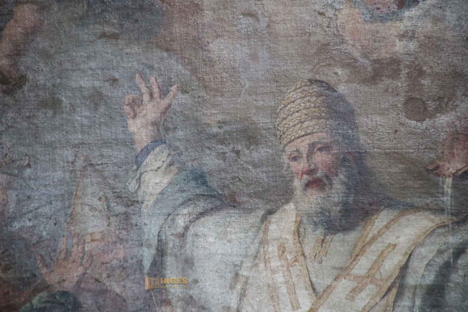 Der beliebteste Heilige der orthodoxen Kirche wurde auch in Venedig so um 1700 hoch verehrt. Auf Zypern wurde er als Kind armer Leute geboren und verdingte sich als Schafhirte, war Ehemann und Vater. Als seine Frau verstorben war, lebte er sein Leben für die Kirche und wurde zum Bischof von Trymithous geweiht. Das kam im römischen Reich aber nicht gut an, unter Kaiser Diokletian wurde er während der Christenverfolgung festgenommen und gefoltert.
