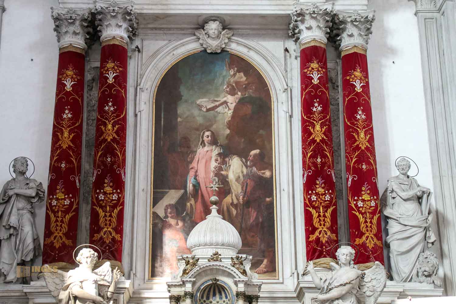 Die Arbeit war aber zweigeteilt – den oberen Teil schaffte Piazzetta noch vor seinem Tod. Der untere Teil wurde anschließend von seinem Schüler fertiggestellt. Das Altarbild gab der Kirche den Namen.