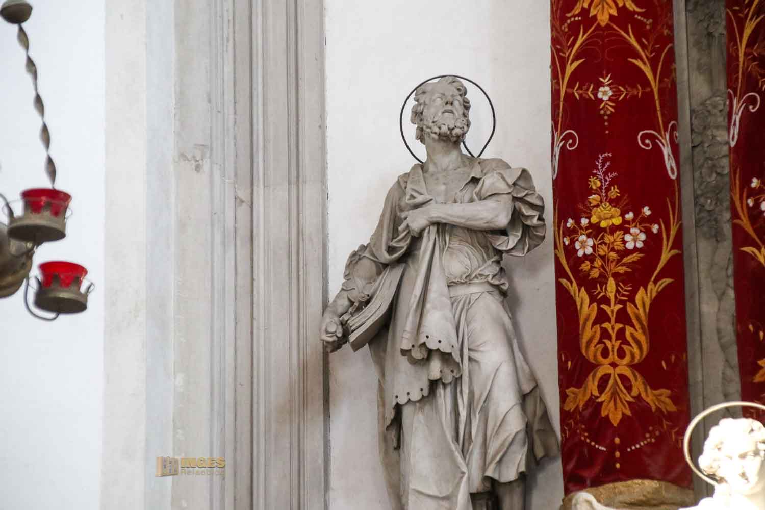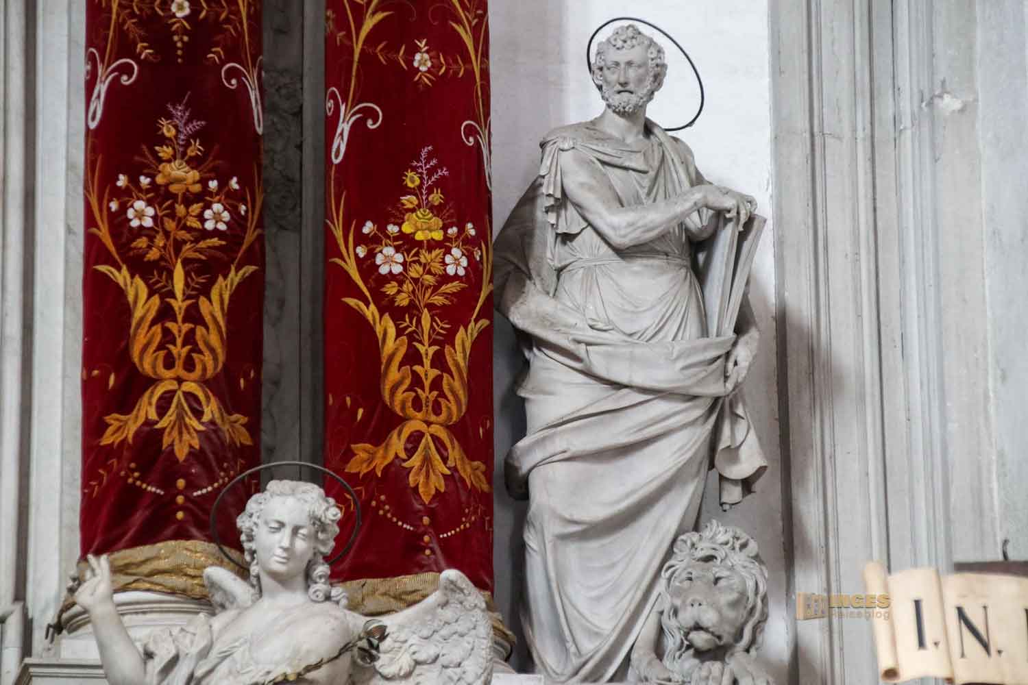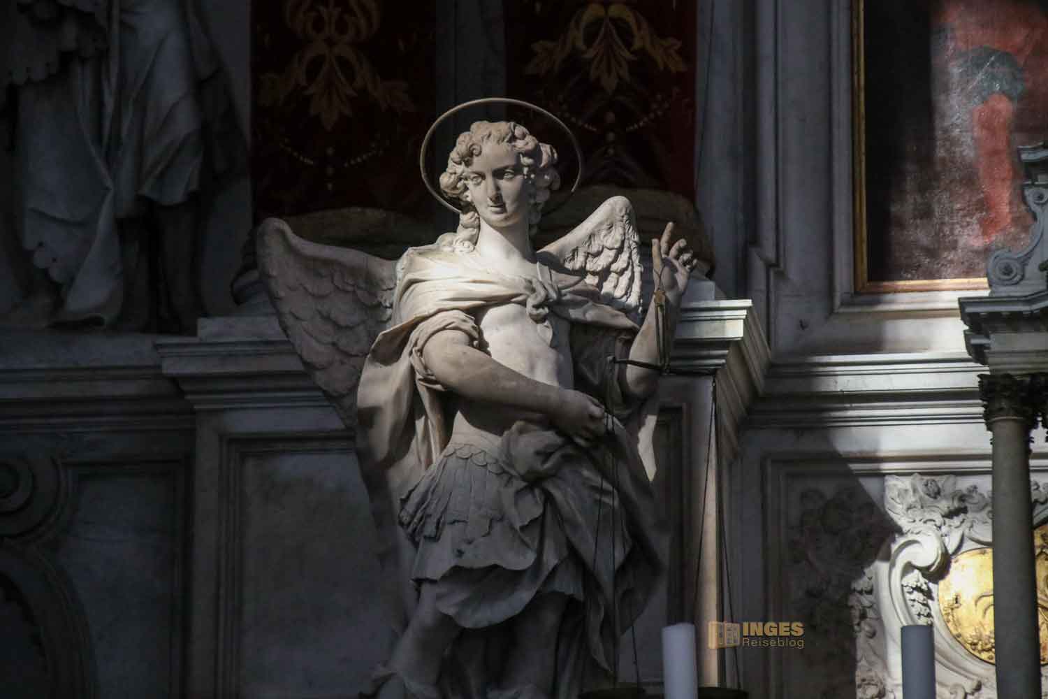 Von Giovanni Maria Morlaiter stammen die Figuren rechts und links am Altar - Petrus, Markus, Gabriel und Michael sind zu sehen.