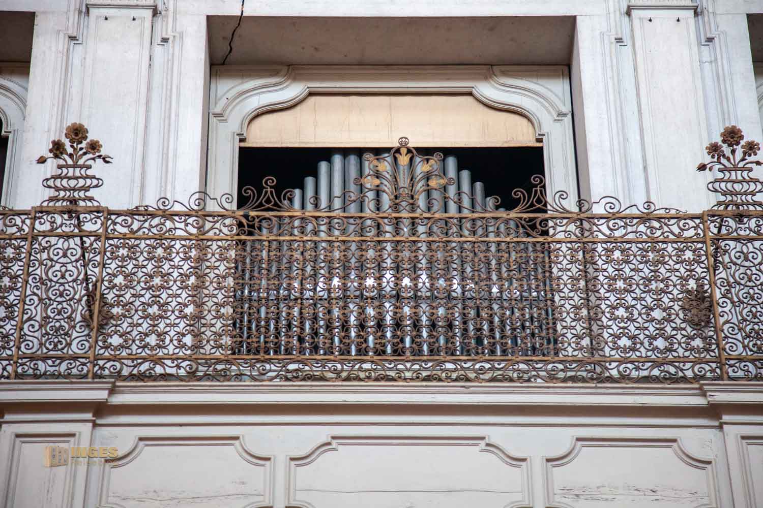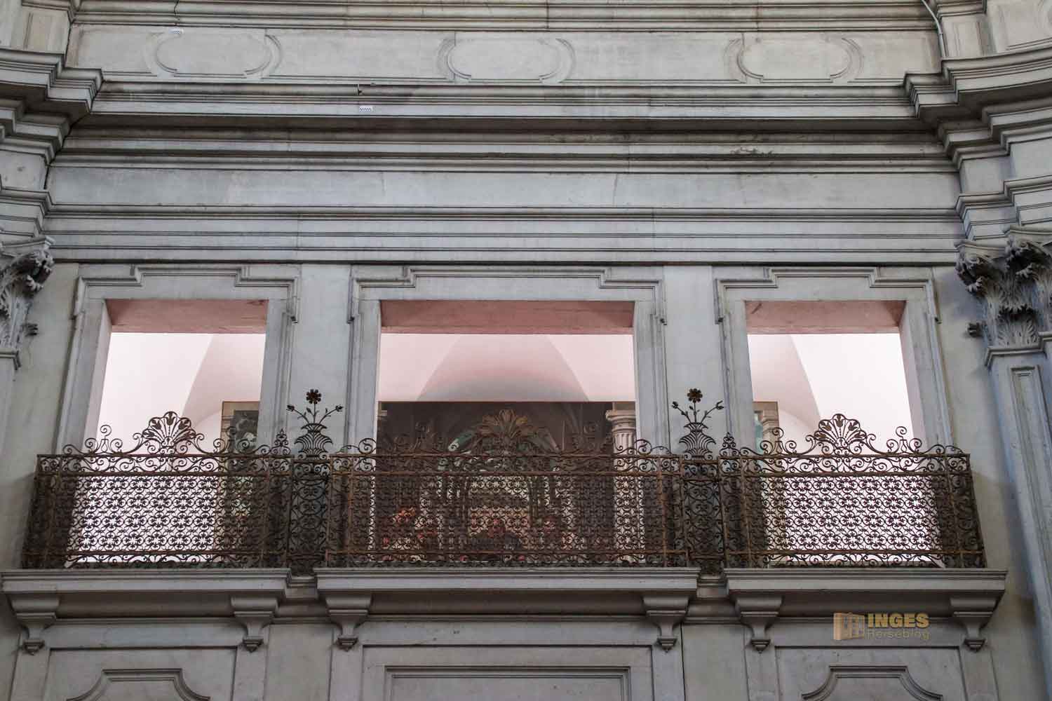 Hinter dem kunstvoll verzierten Balkongitter kann man ein Gemälde nur erahnen. Nein, es ist nicht das letzte Abendmahl, auch wenn ich es im ersten Moment dachte. Eine lebendige Szene aus dem Leben im 16. Jahrhundert ist zu sehen - "Das Mahl in Simons Haus" rechts im Bild wird die reuige Maria Magdalena zu Jesus gebracht, der im Mittelpunkt des Bildes steht.