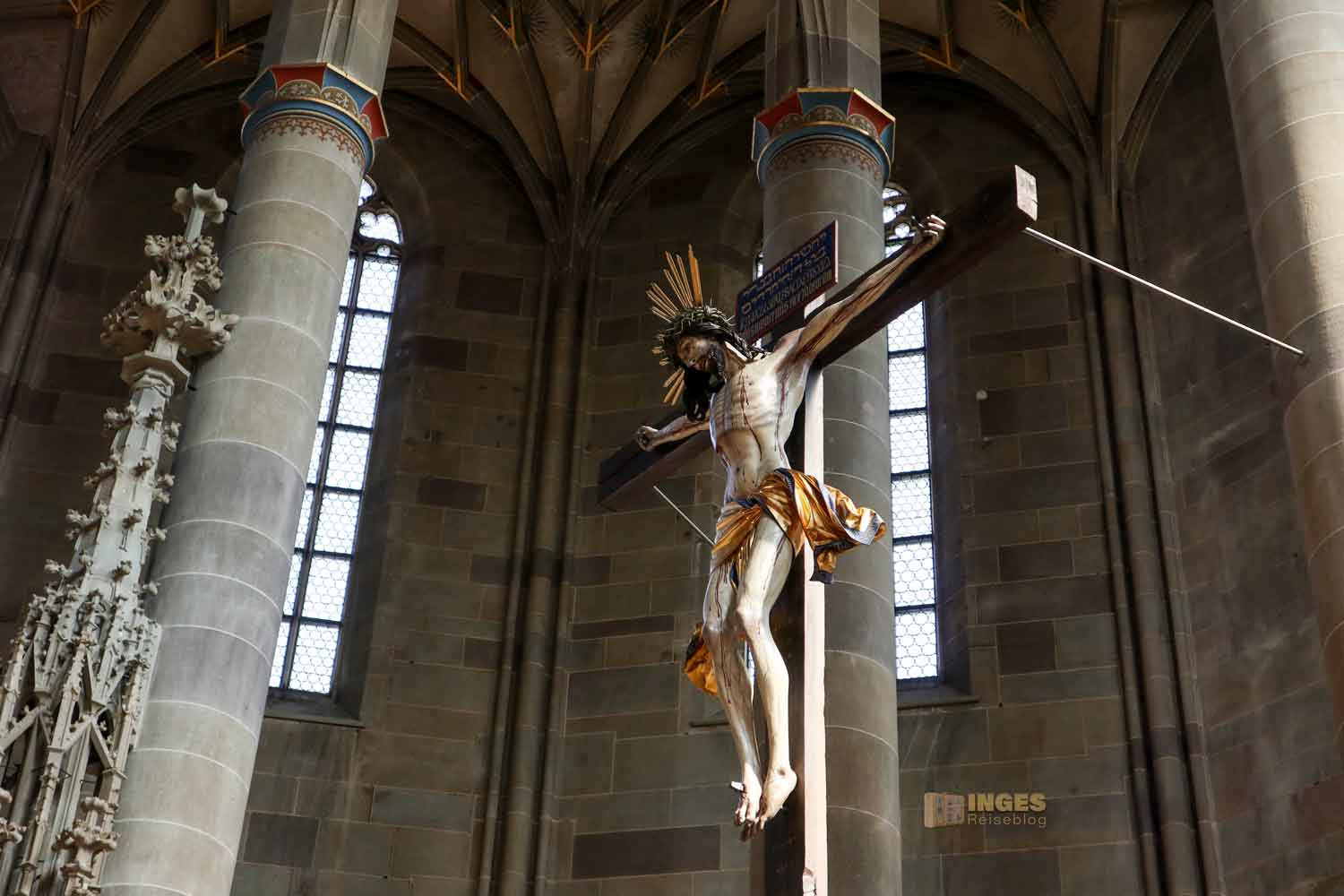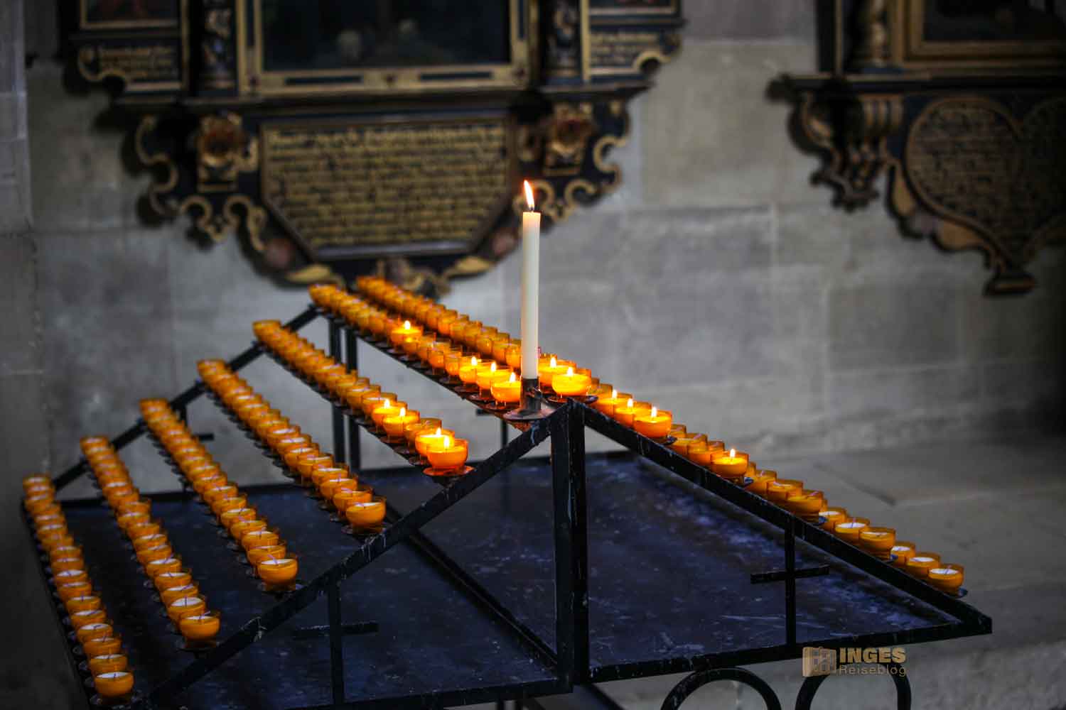 Ihr geht mit wachsamen Augen durch die St. Michael Kirche und haltet von Anfang an ein bisschen die Augen offen. Ihr müsst nicht kreuz und quer durch die Kirche 'rennen'. Entdeckt ihr ein Detailbild von mir, dann macht ein Foto von diesem Ausschnitt. Schickt mir mindestens 10 Fotos von den nachfolgenden Detailaufnahmen per Mail an info@inges-reiseblog.de. Falls ihr Probleme mit dem Versand habt, schreibt mich an.