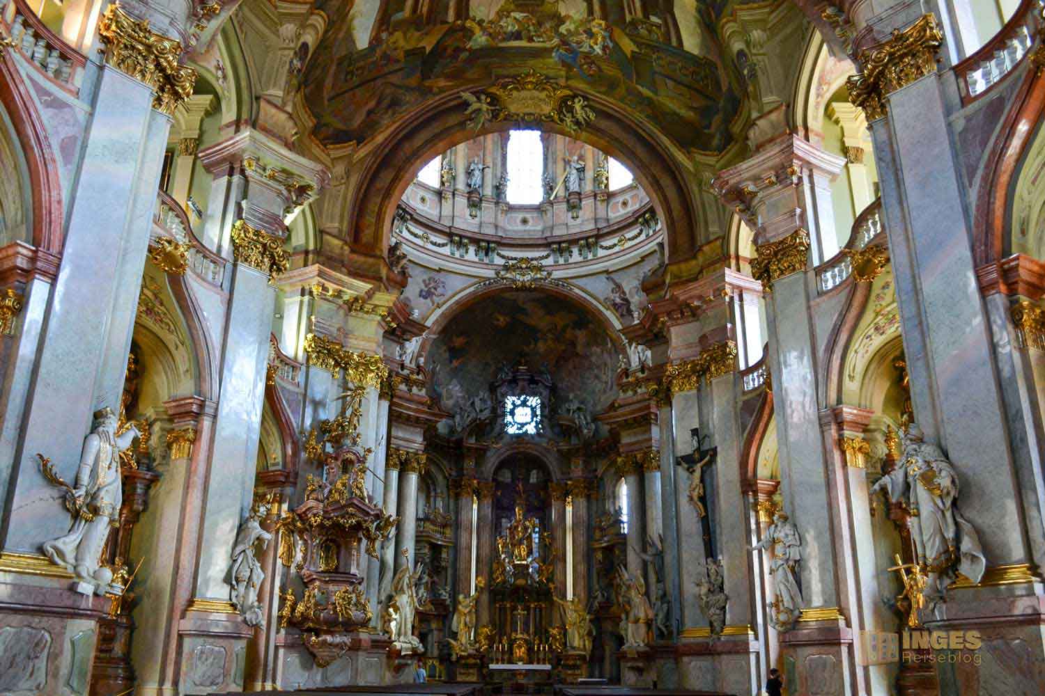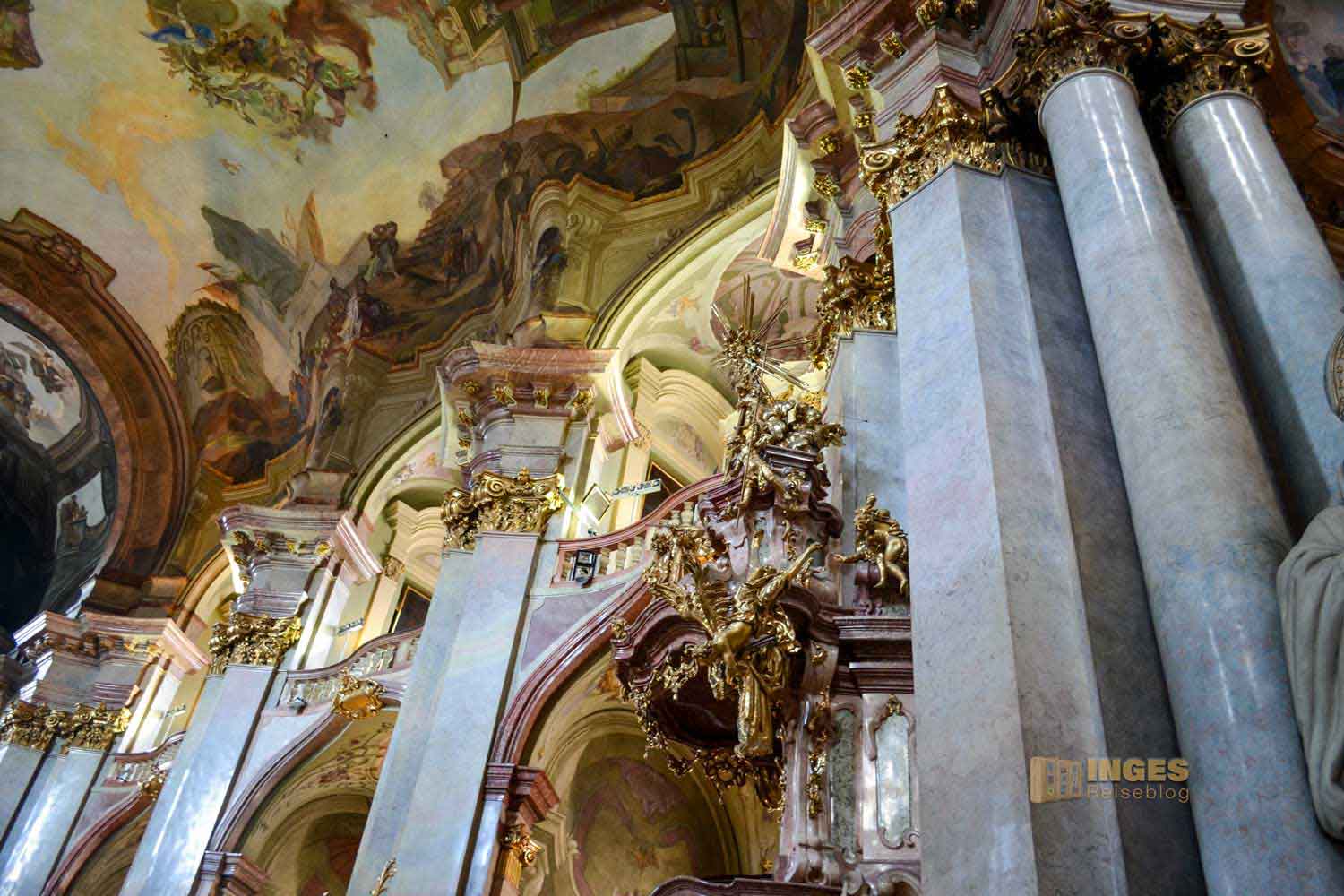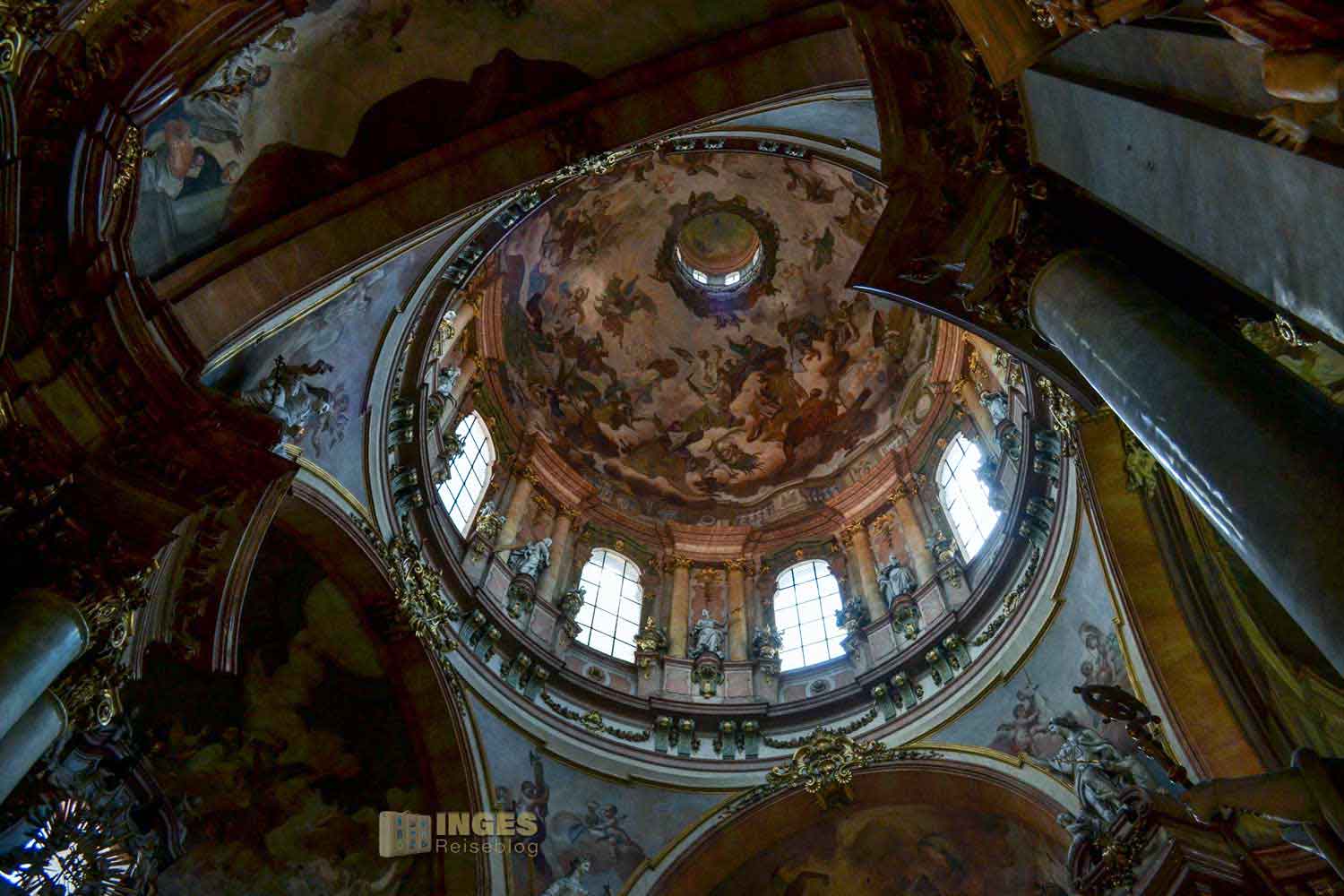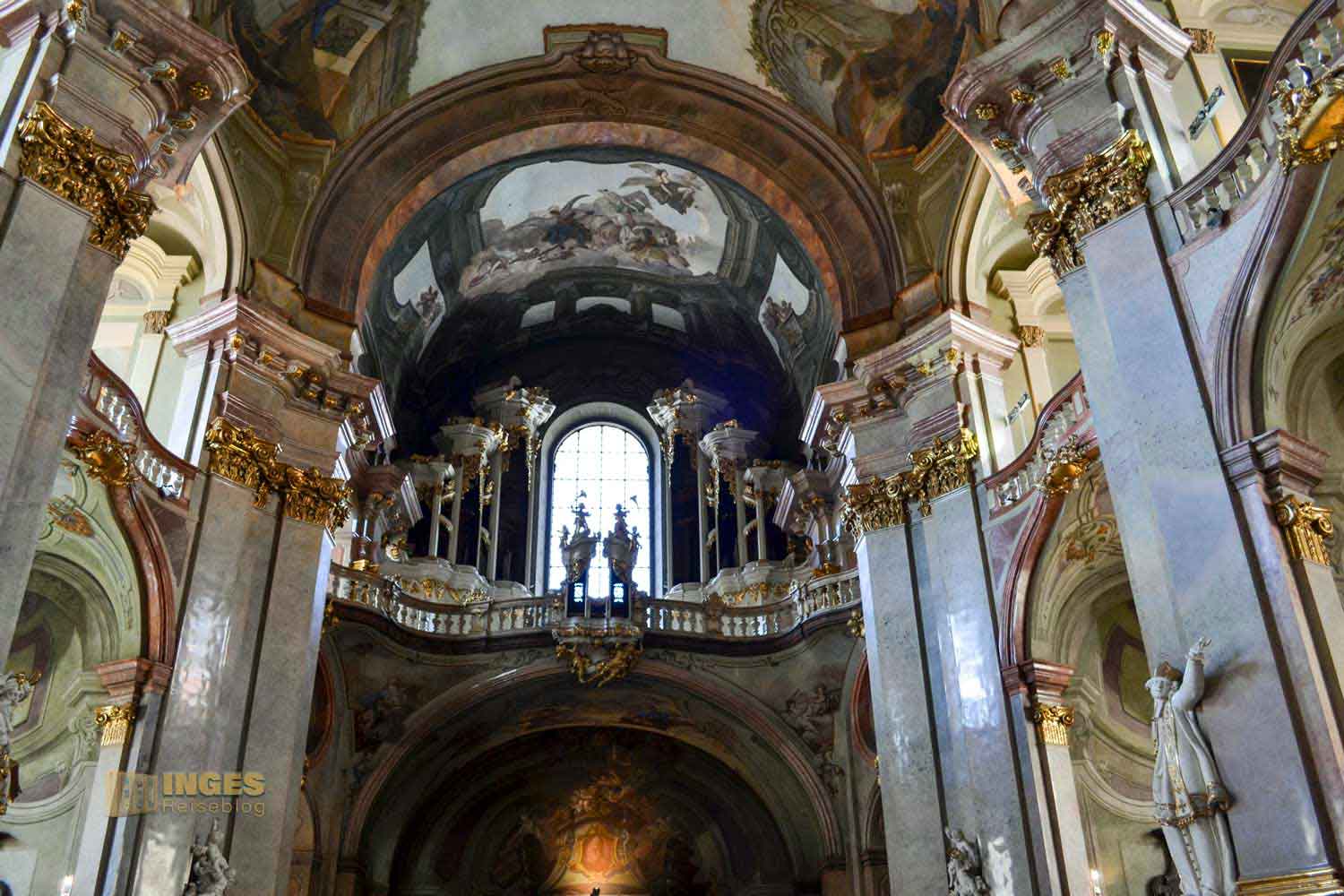 Diese Pracht in der St.-Nikolaus-Kirche ist schon unfassbar schön. Aber so ganz anders wie im St. Veits Dom auf der Prager Burg.