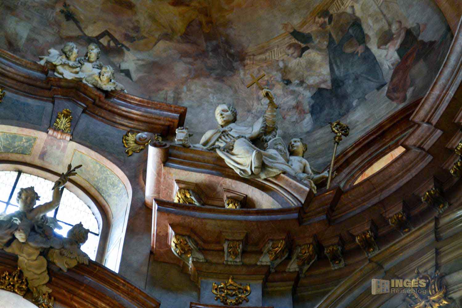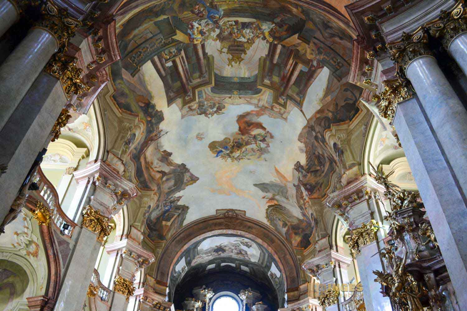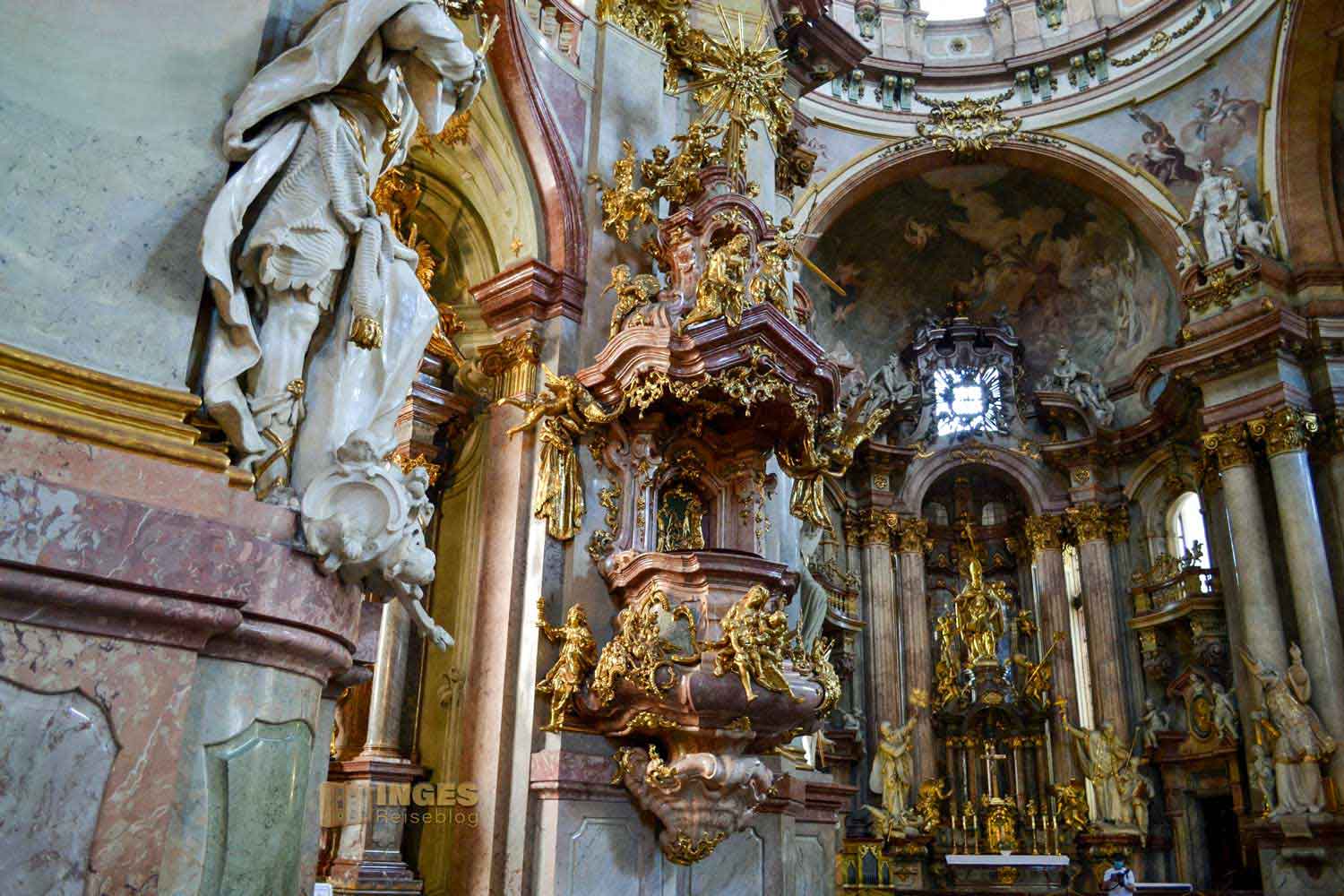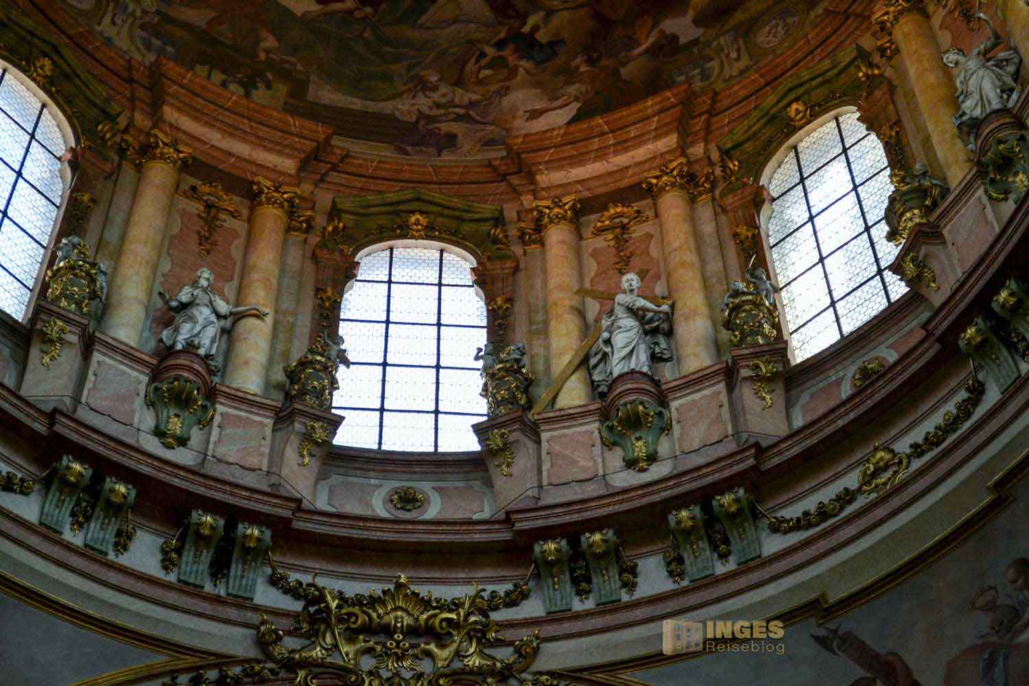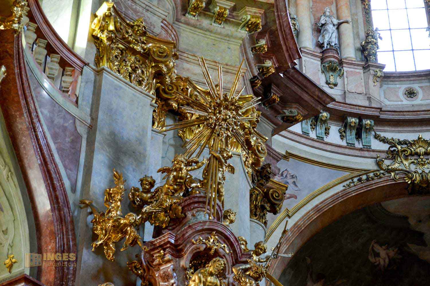 Diese Pracht in der St.-Nikolaus-Kirche ist schon unfassbar schön. Aber so ganz anders wie im St. Veits Dom auf der Prager Burg.