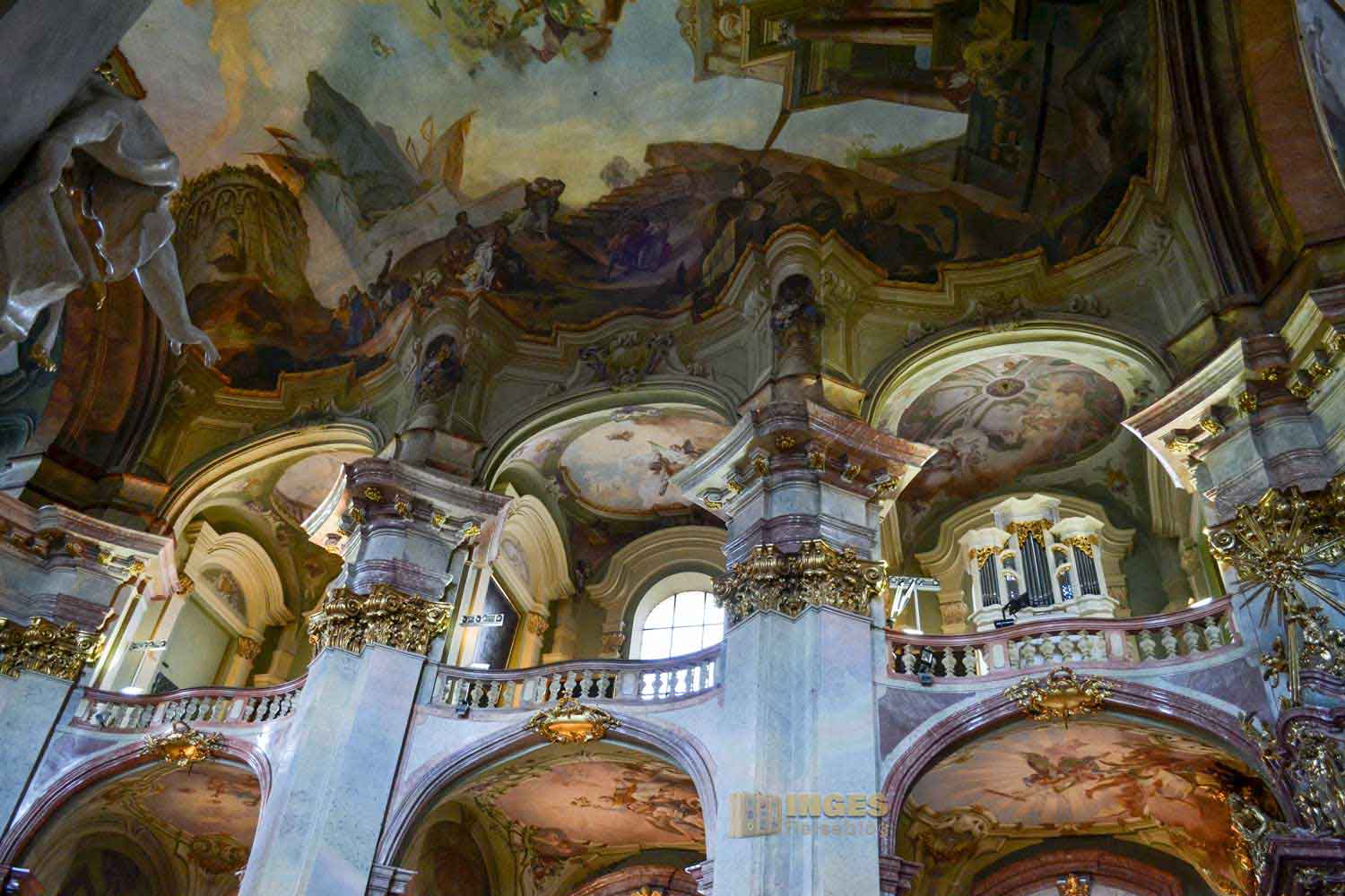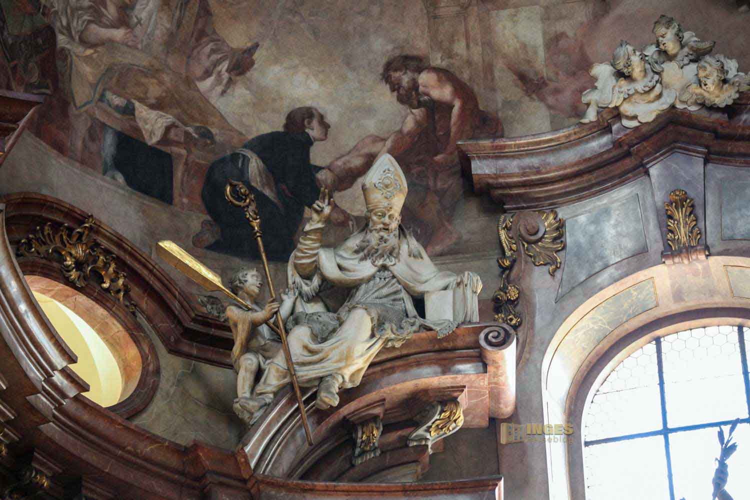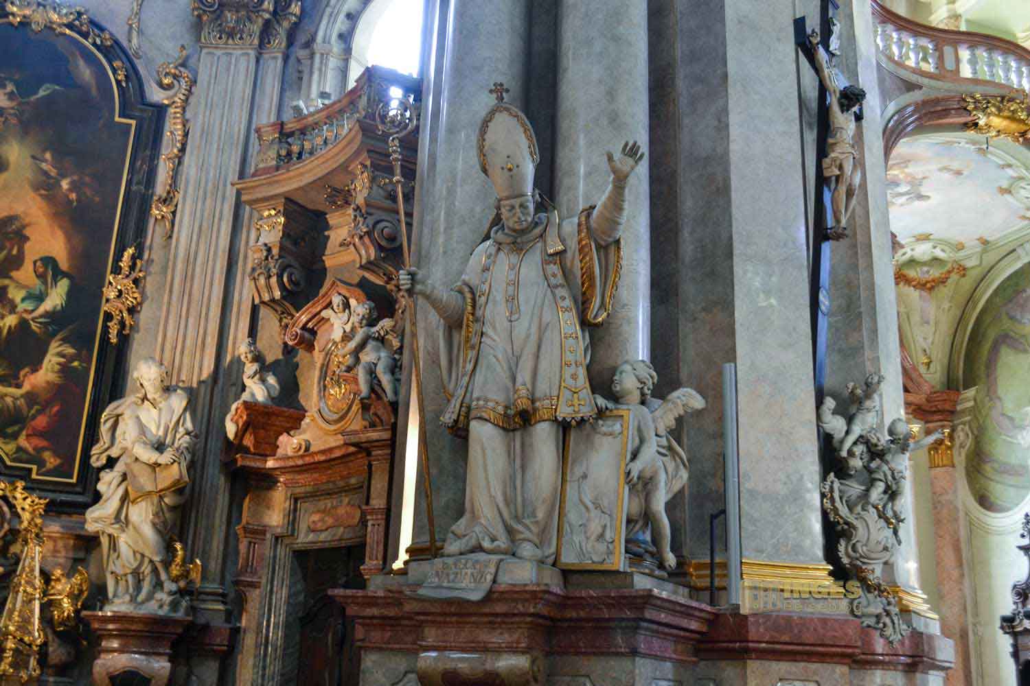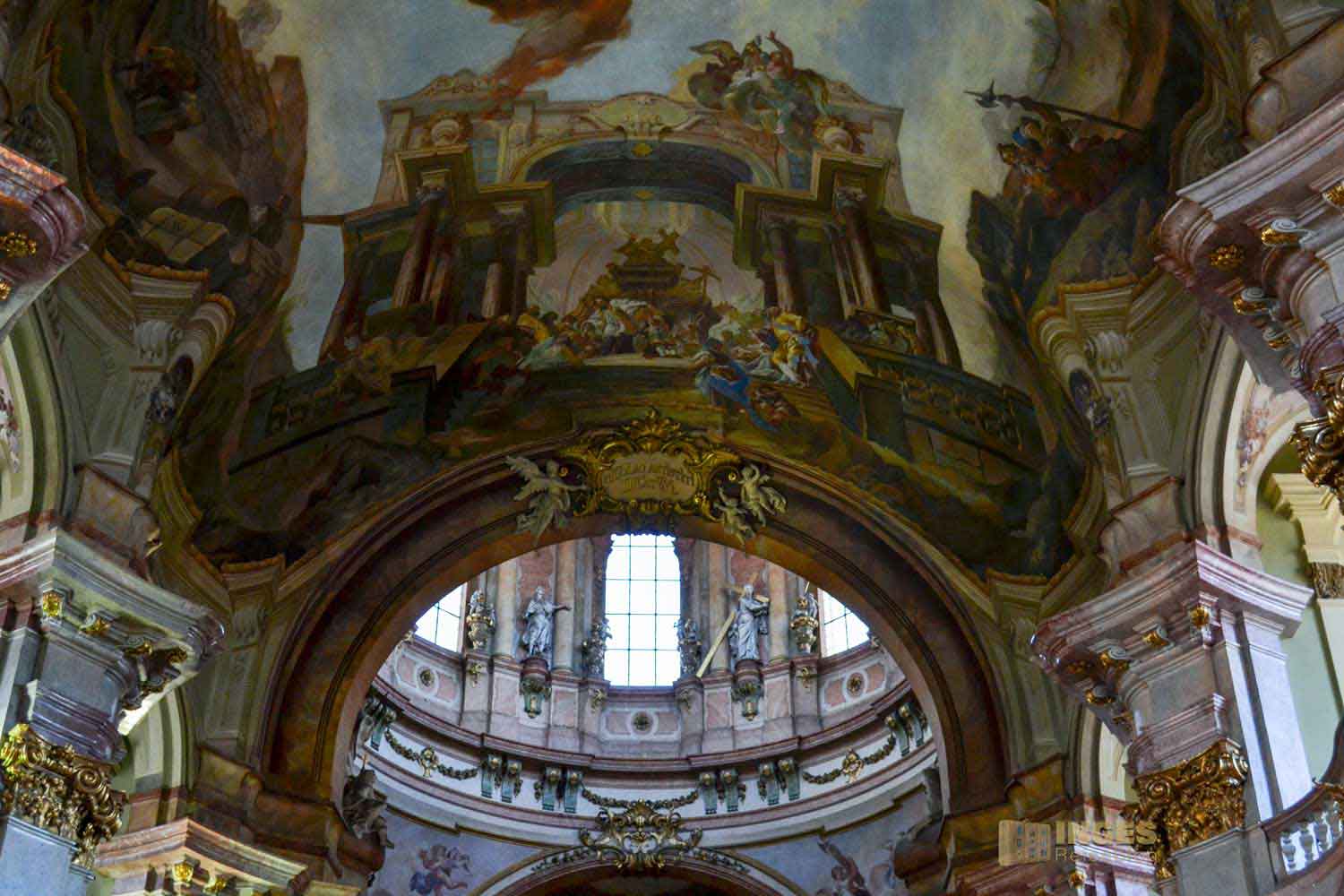 zählt mit seinen 1500 Quadratmetern zu den größten Deckengemälden in Europa. Die Verherrlichung und Szenen aus dem Leben des hl. Nikolaus von Myra stellt es dar, und wurde von Johann Lucas Kracker geschaffen. 1760 hat der in Wien geborene Maler des Spätbarocks damit begonnen.