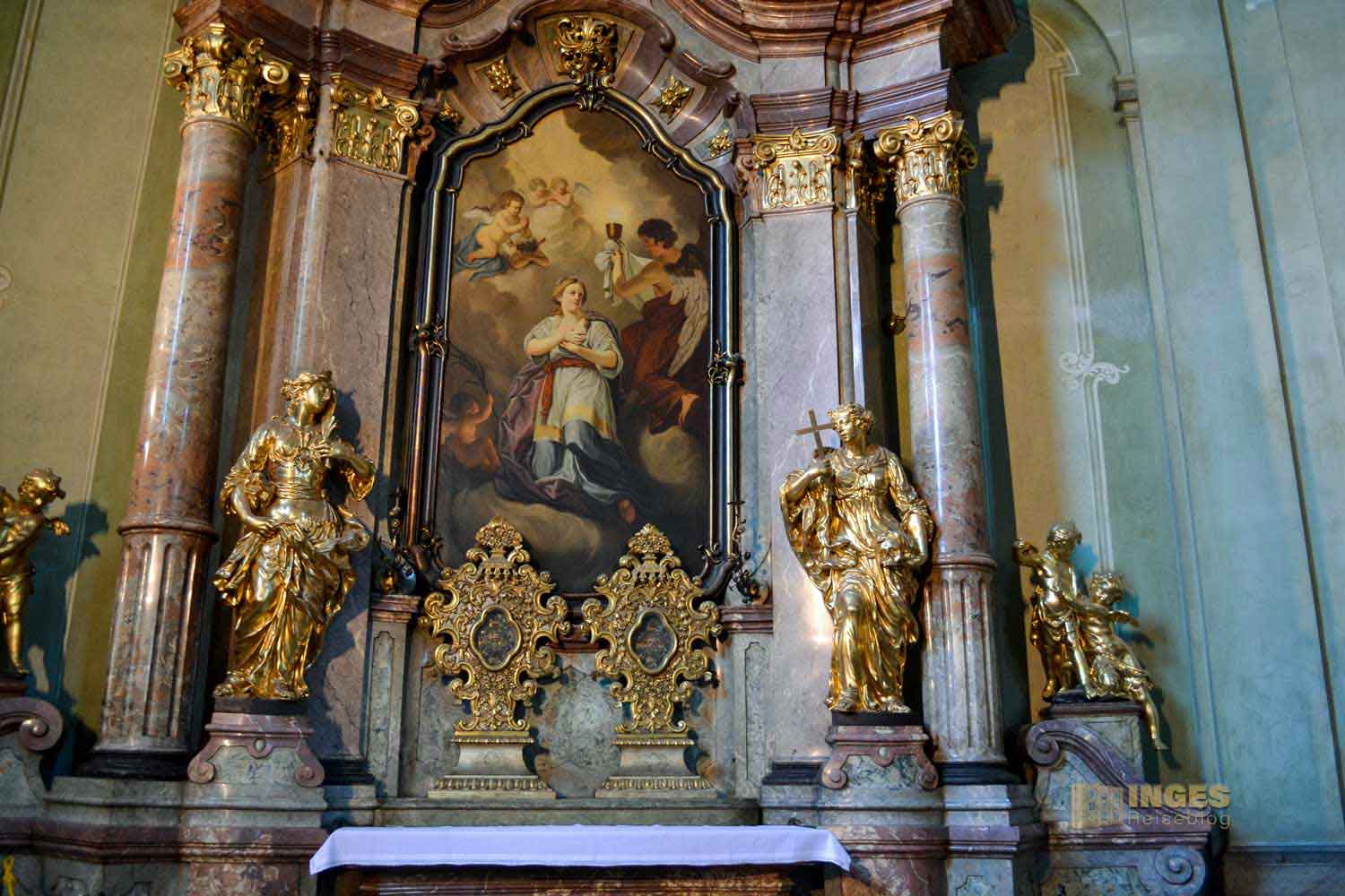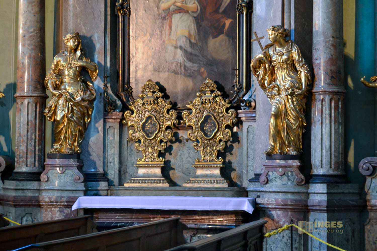 die reich geschmückten Seitenaltäre in der St. Nikolaus Kirche