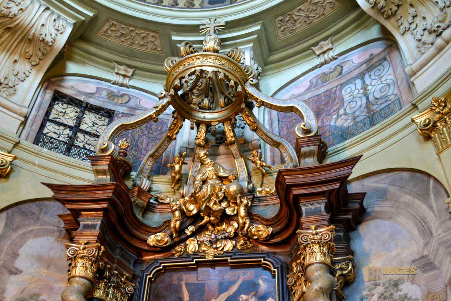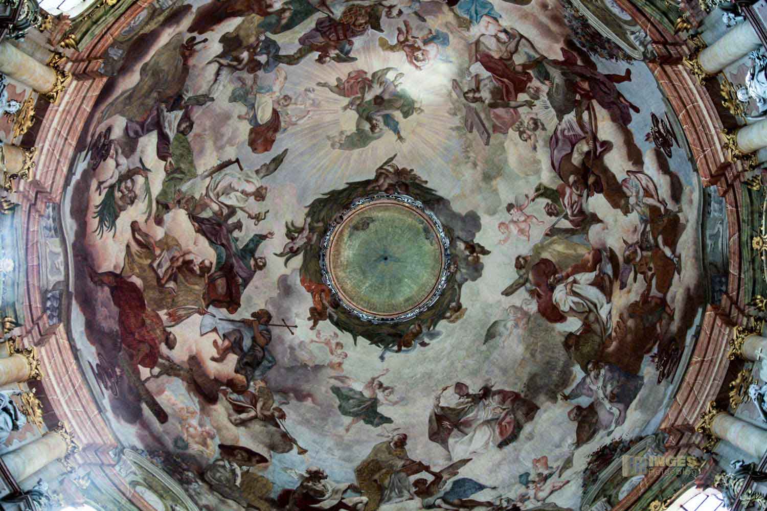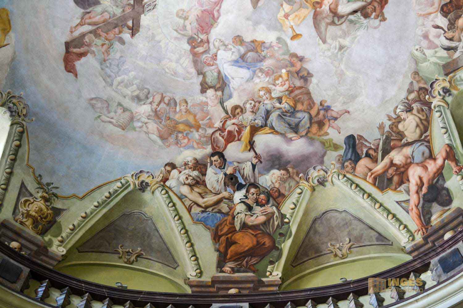 František Xaver Palko schmückte die Kuppel mit einem Fresko vom offenen Himmel. Ein Chor von Heiligen verherrlichen Christus und den Heiligen Vater.