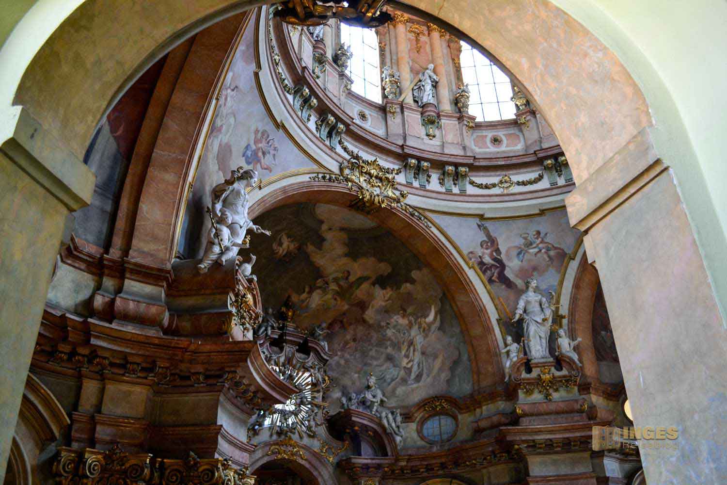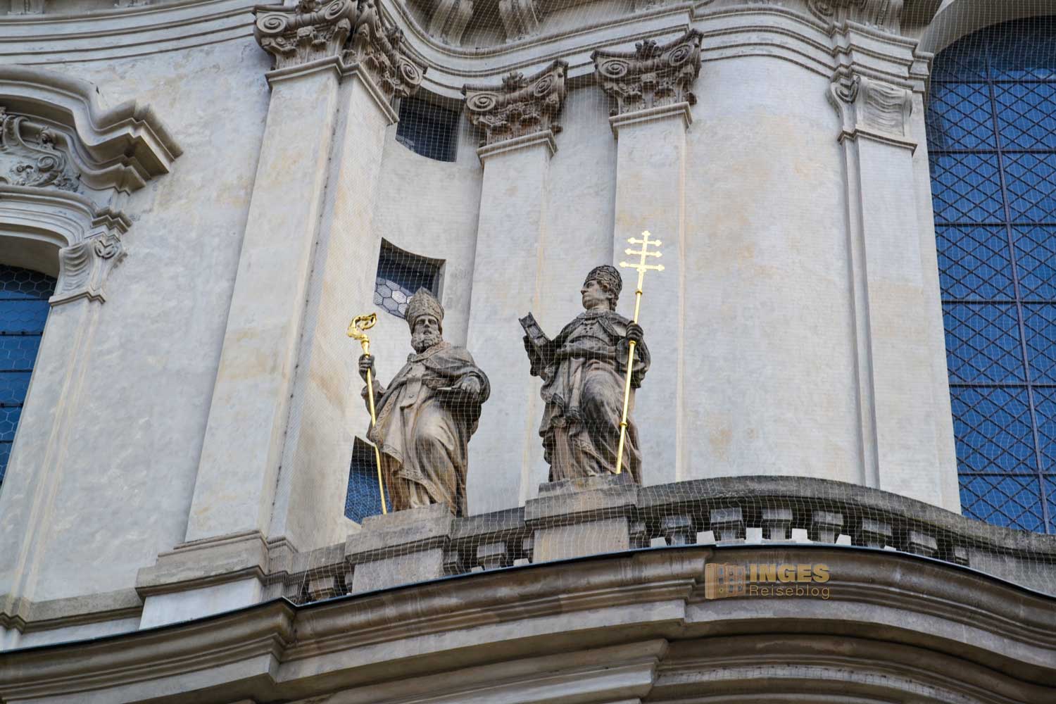 Die Maße dieser beeindruckenden Barockkirche sind monumental. Eine Grundfläche von 40 x 60 Meter und nach oben gehen die Kuppel und der Glockenturm 79 Meter in die Höhe. Die Kuppel hat einen äußeren Durchmesser von 20 Meter. Allein die Kuppel hat eine Außenhöhe von 70 Metern und bietet im Inneren immer noch 50 Meter. Sie ist somit der höchste Innenraum eines Gebäudes in Prag. Wahnsinn oder?