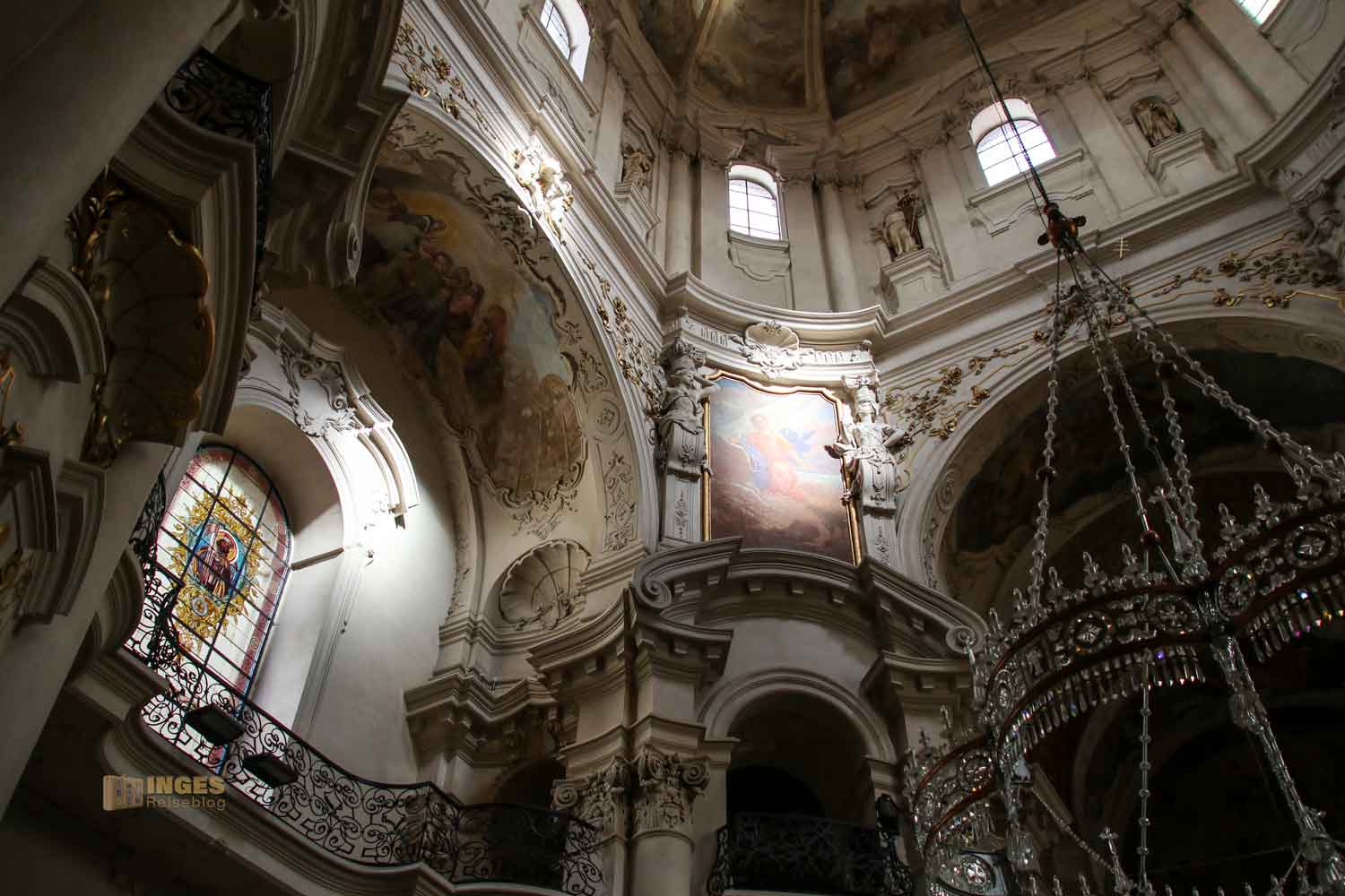 wurde mit Figuren von Benediktiner-Heiligen geschmückt. Einzigartig war (und das wird wohl immer so sein) bei unserem Besuch der Lichteinfall in den Kirchenraum. Einfach nur schön. Kein Wunder, dass auch diese Kirche (wie andere in der Altstadt auch) für Konzerte genutzt wird.