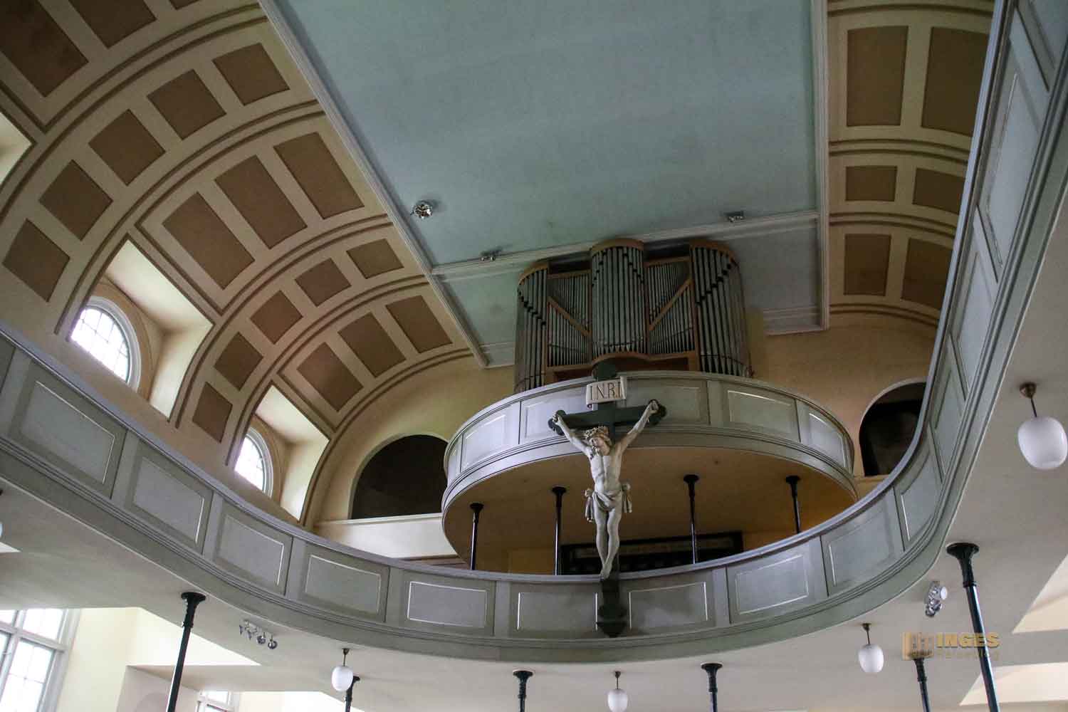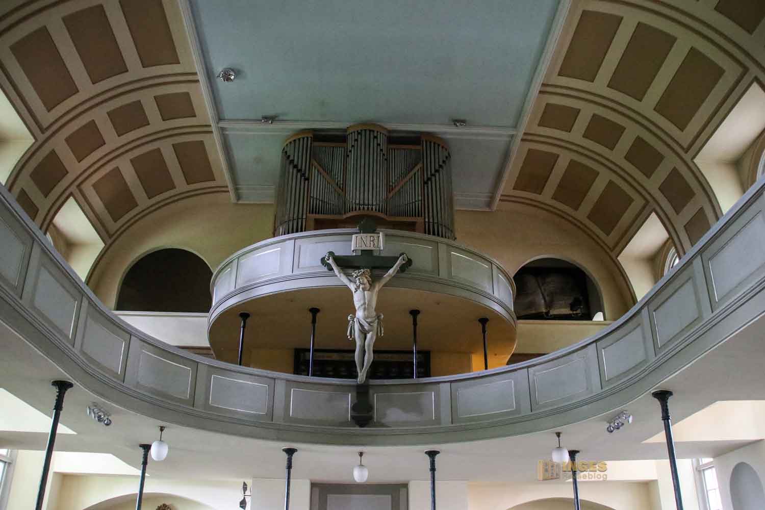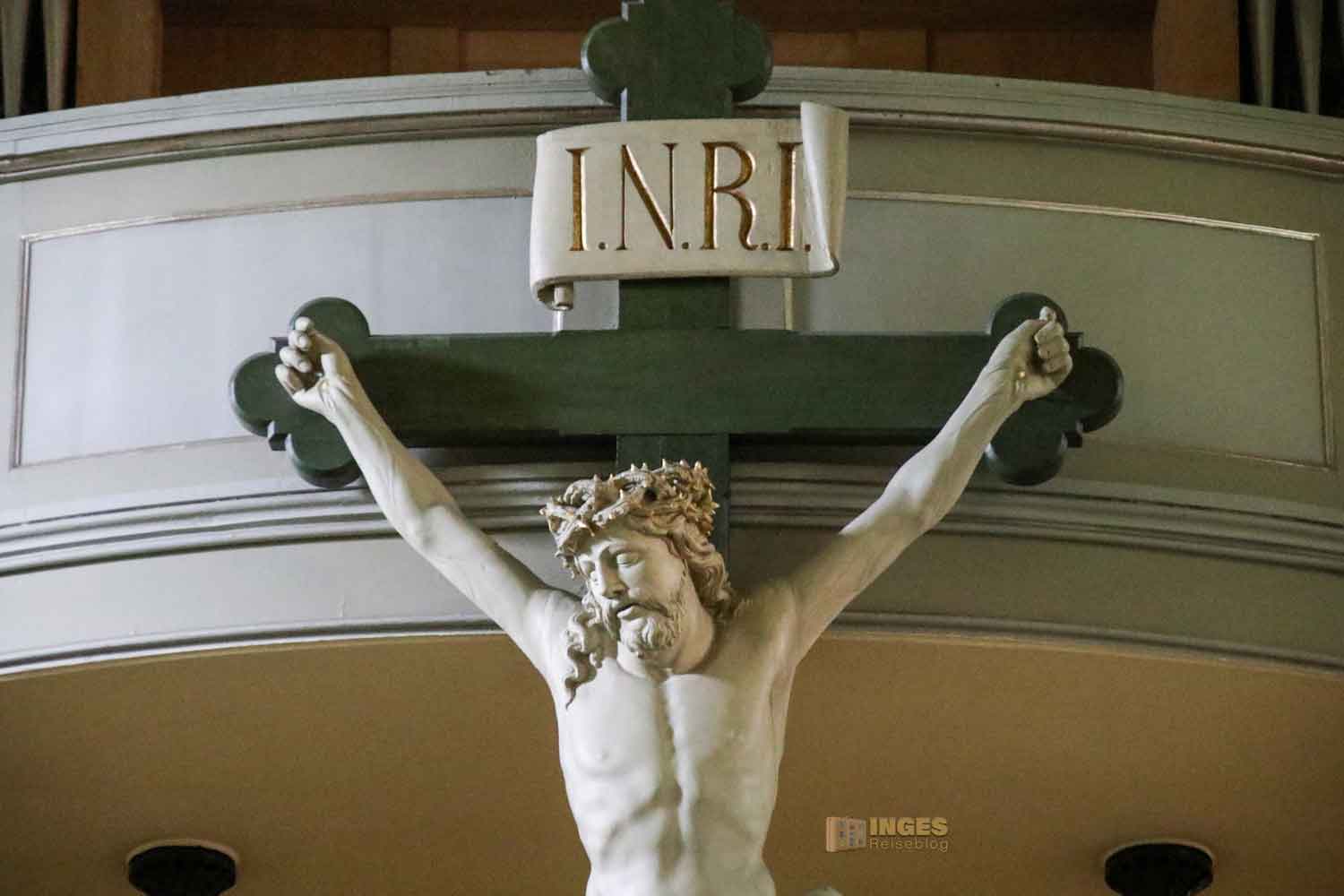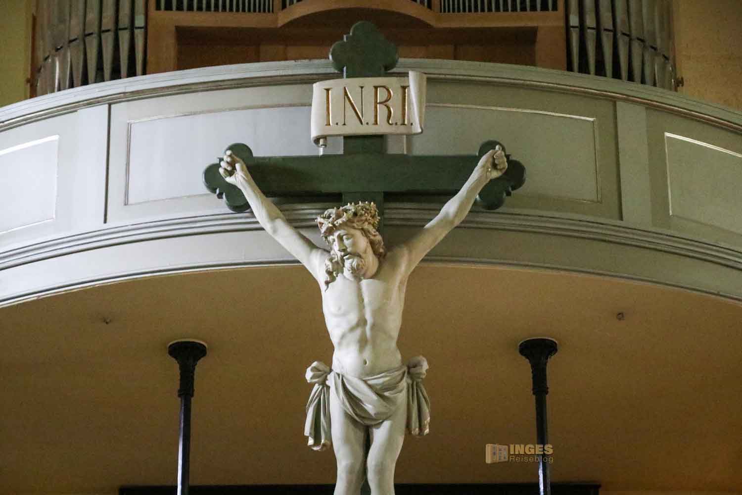 wohl einige Geschichten erzählen, denn seit der ersten Orgel von 1687 ist ja viel passiert. 1718 kam der erste Austausch und die Richborn-Orgel konnte beim Brand 1814 gerettet werden und wurde nach dem Neubau wieder eingeweiht. Bis ihr 1932 das Leben ausgehaucht wurde und durch eine neue Orgel ersetzt wurde. Aber neue Besen kehren nicht immer gut, 1968 pfiff sie buchstäblich aus dem letzten Loch und gab den Geist auf. Seit 2011 gibt nun hinter dem Kruzifix eine neue Orgel den Ton an.
