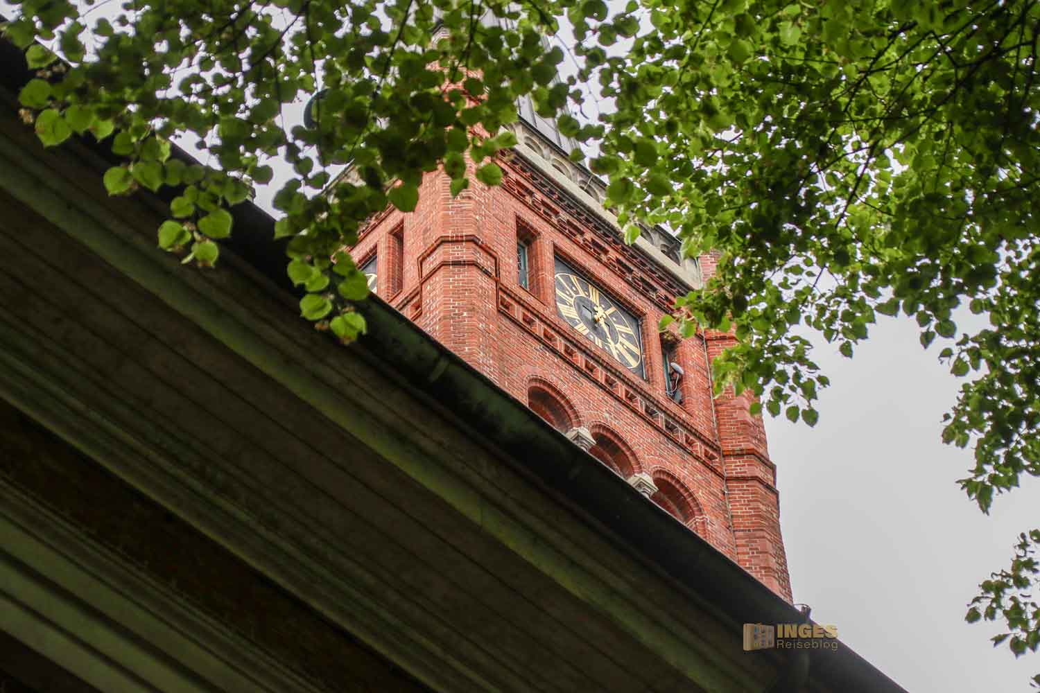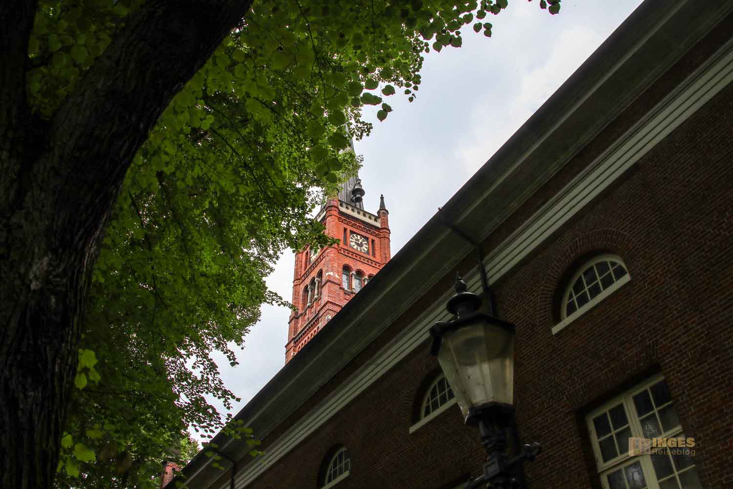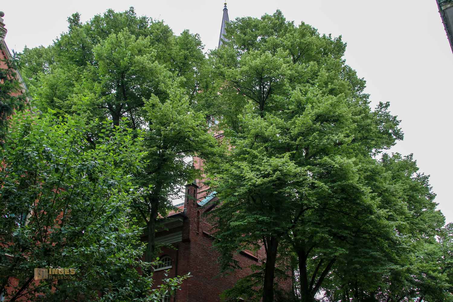 Ja, wo ist sie denn? Normalerweise weist ja ein Kirchturm den Weg, tja, aber nicht, wenn ihr von der Reeperbahn Richtung Kirche geht. Hohe Bäume verdecken den Blick, und man erkennt die Kirche erst, wenn man quasi direkt davor steht. Sind wir hier überhaupt richtig? Sieht eher nach einem Fabrikgebäude aus? Oh Inge, du bist in Hamburg! Hier ist eben die typische Bauweise mit Klinkersteinen.