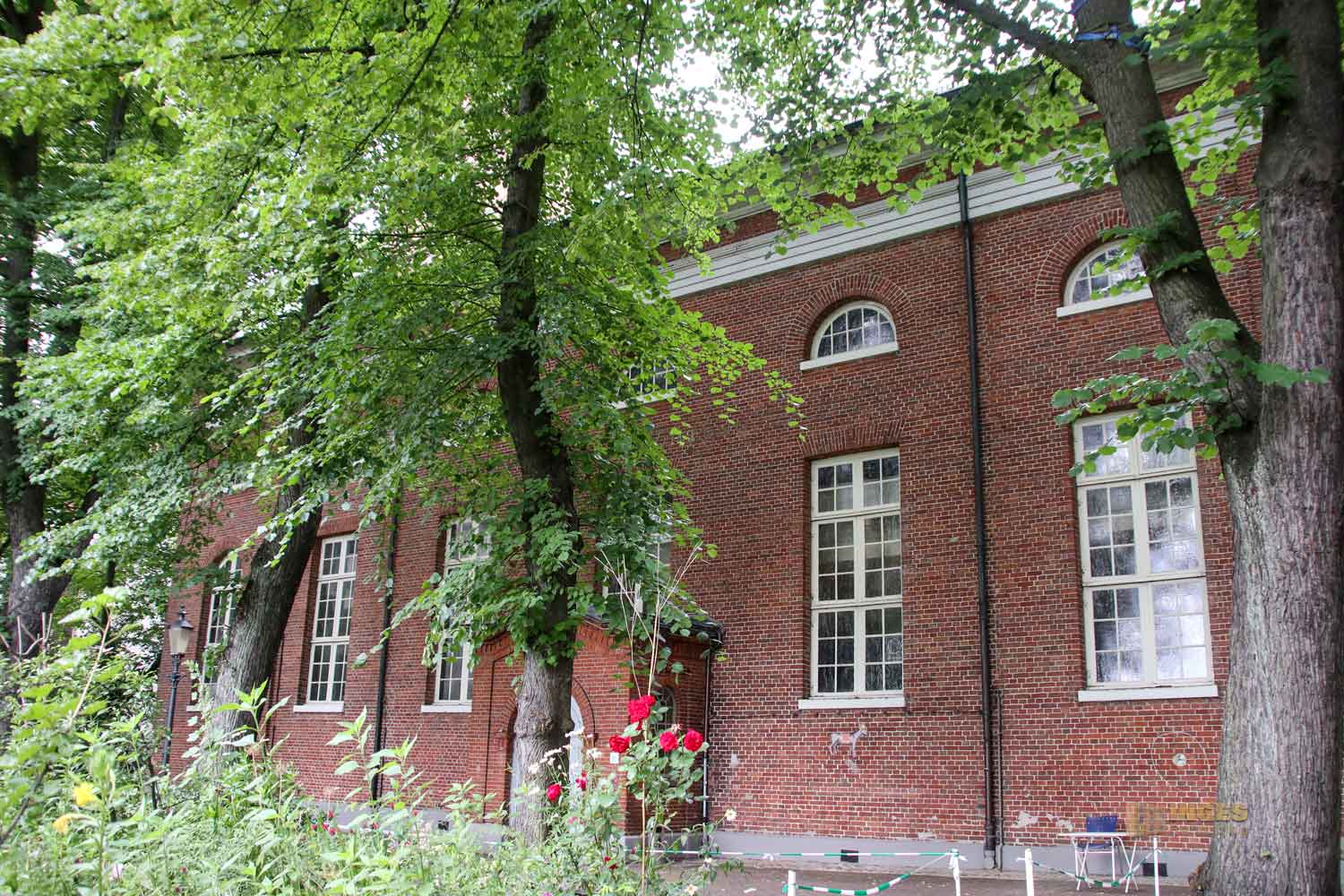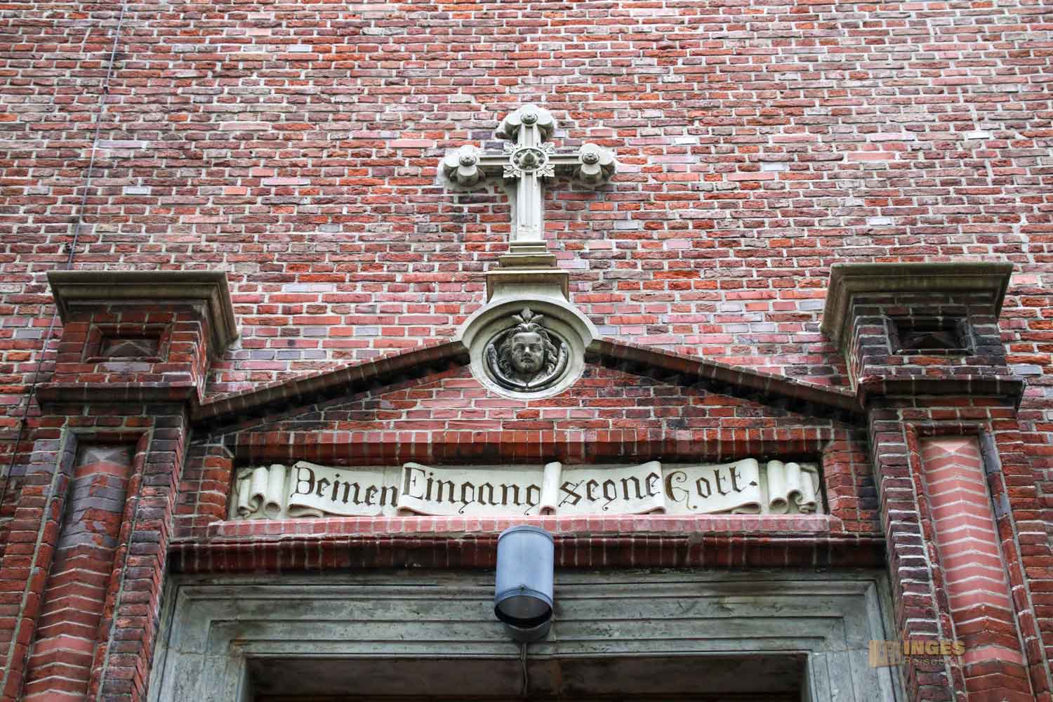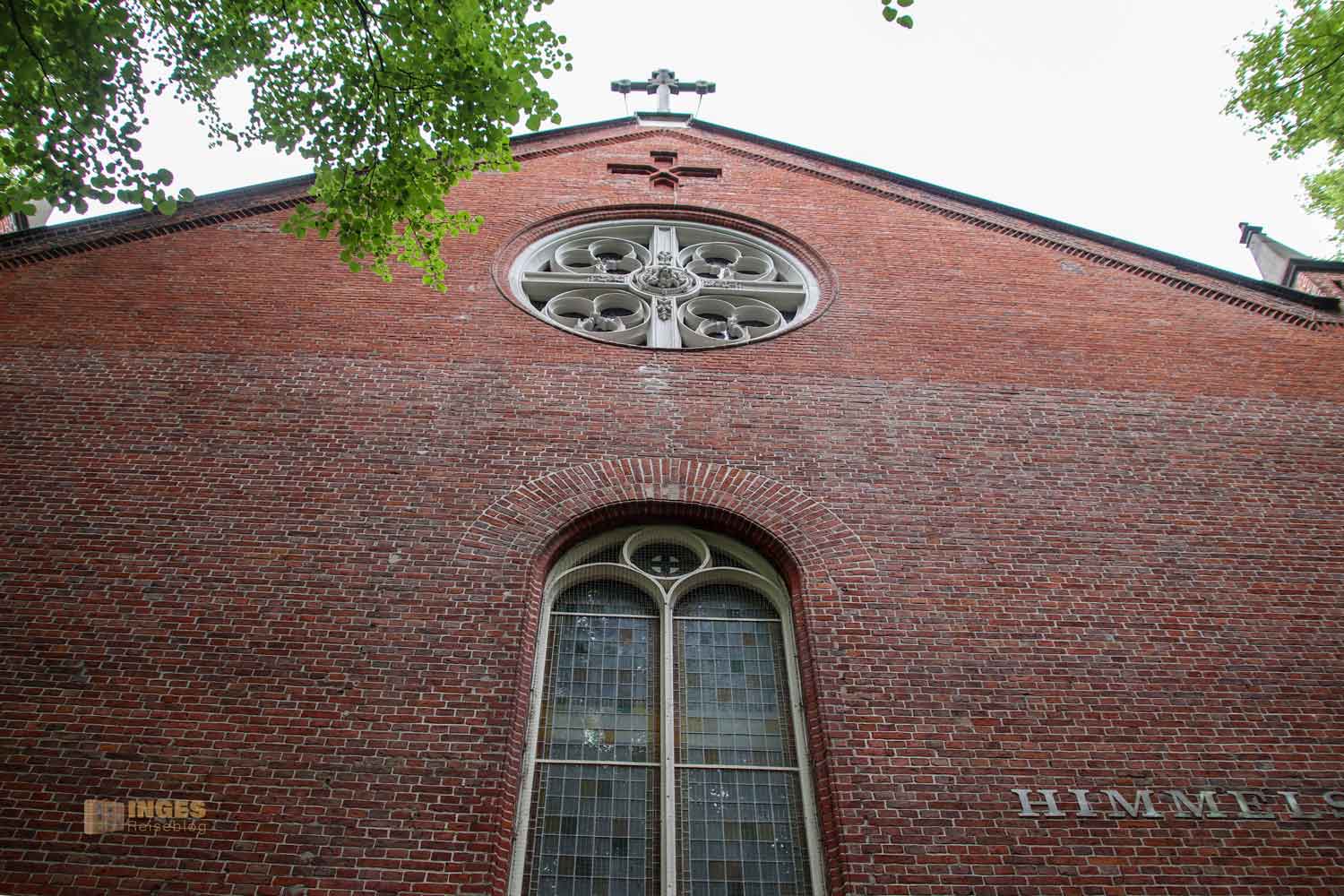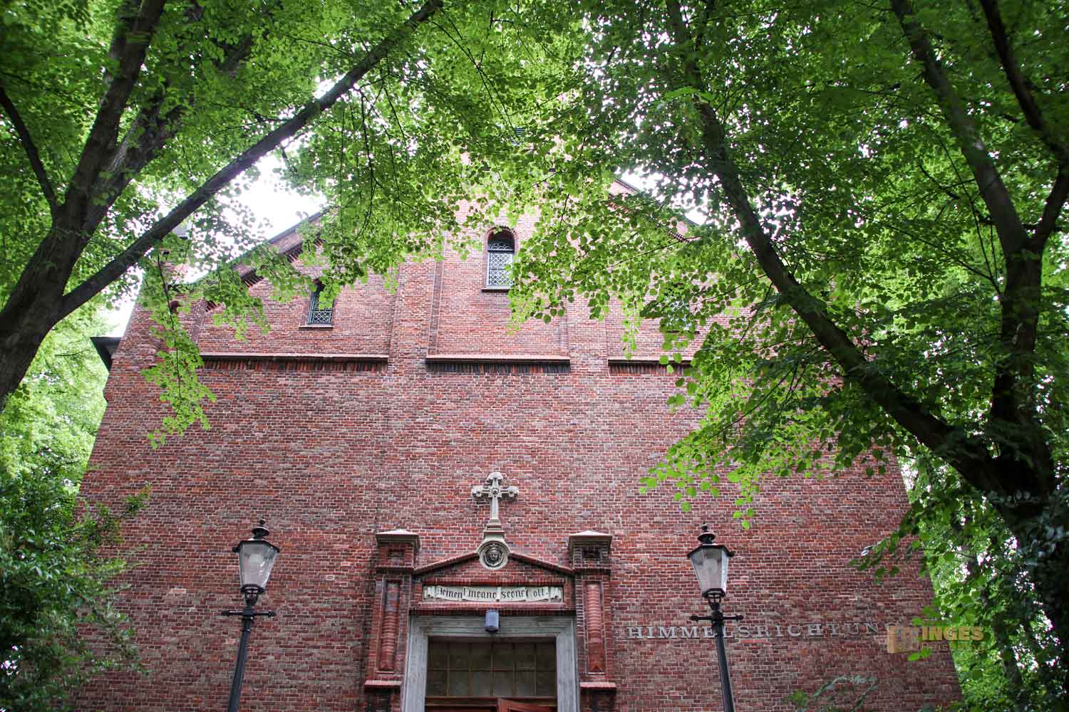 Ja, wo ist sie denn? Normalerweise weist ja ein Kirchturm den Weg, tja, aber nicht, wenn ihr von der Reeperbahn Richtung Kirche geht. Hohe Bäume verdecken den Blick, und man erkennt die Kirche erst, wenn man quasi direkt davor steht. Sind wir hier überhaupt richtig? Sieht eher nach einem Fabrikgebäude aus? Oh Inge, du bist in Hamburg! Hier ist eben die typische Bauweise mit Klinkersteinen.