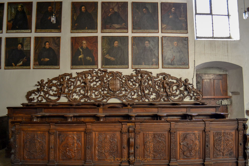 Weiter ging es zum Schloß. Es bezeichnet eigentlich die Gebäude des 1096 gegründeten Benediktinerklosters, das im 17. Jahrhundert nach dem Stadtbrand im barocken Stil wieder aufgebaut wurde.