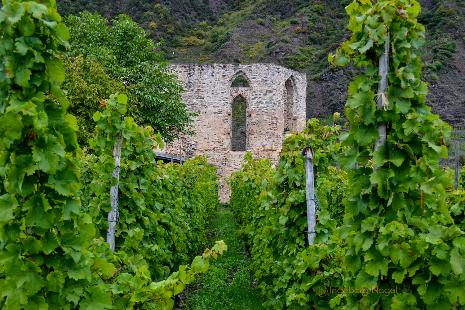 Mitten in den flachen Weinbergen, auf einer kleinen Halbinsel direkt an der Mosel liegt wie so ein gestrandetes Schiff die Ruine des ehemaligen Klosters Stuben. Schön zu sehen auch von der Bundesstraße die direkt an der Mosel entlang führt. Nach einer kurzen Fahrt stand heute die Ruine auf unserer Liste - auch deshalb, weil man von Kloster Stuben einen wunderschönen Blick auf den Bremmer Calmont, den steilsten Weinberg Europas hat, den wir an einem anderen Tag auch auf dem Gipfel besucht haben. Direkt an der Straße die in den Ort Neef führt, biegt eine kleine Straße Richtung Ruine ab. Entweder wandert man den an den Weinbergen entlang zur Ruine, oder für 'Fußfaule', die wir an dem Tag waren, stand für Fridolin ein Parkplatz an der Ruine bereit.