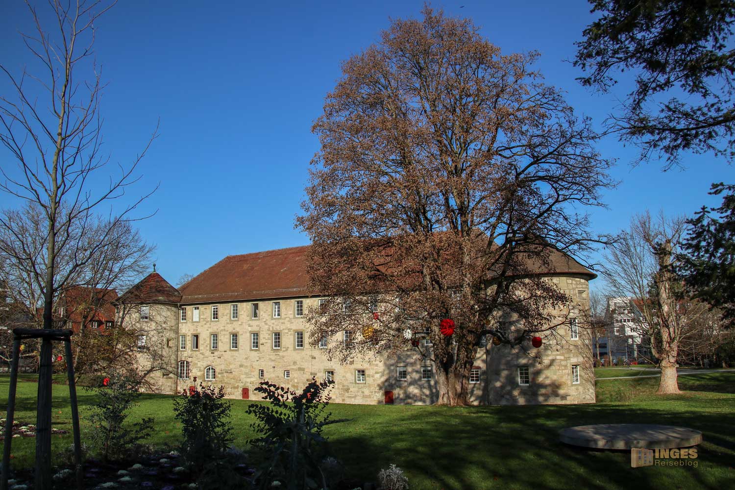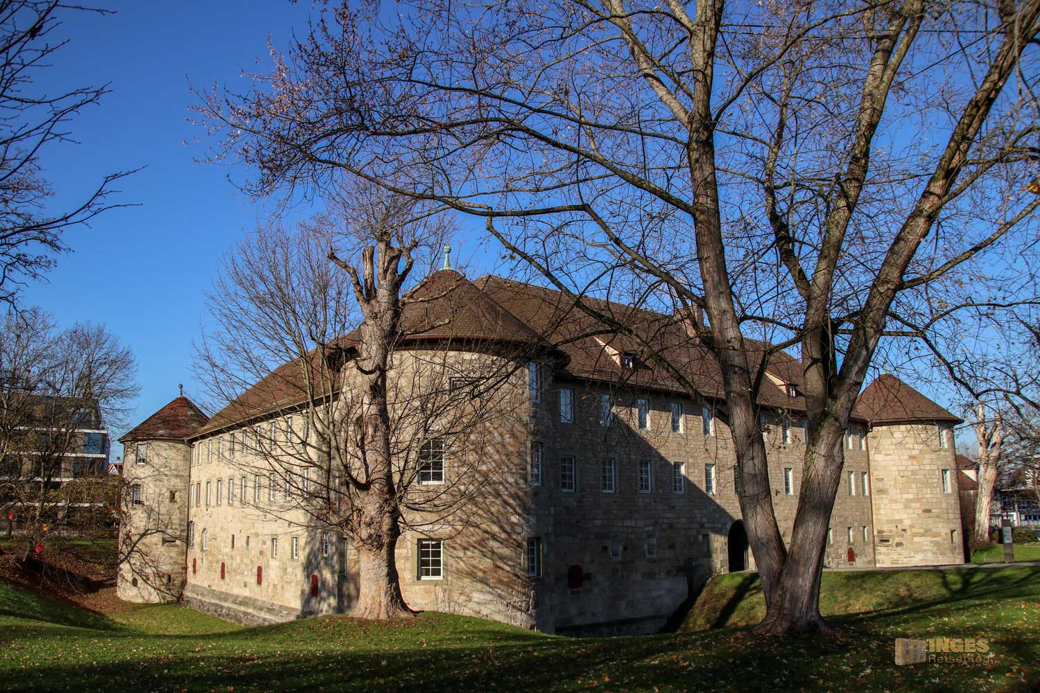 Aber nicht einfach so ein repräsentables Stadtschloss sollte es werden, nein, es wurde die stärkste Stadtfestung im gesamten Herzogtum Württemberg. Ständig war es besetzt, damit Feinde schnell erkannt wurden. Und damit war es ja eigentlich eine Burg, die nur über einen Burggraben erreichbar war. Dass es ein Burgschloss wurde, war wohl dem Umstand zu verdanken, dass es auch für die hohen Herrschaften Gemächer in der Burg gab. Also war es halt beides 🙂