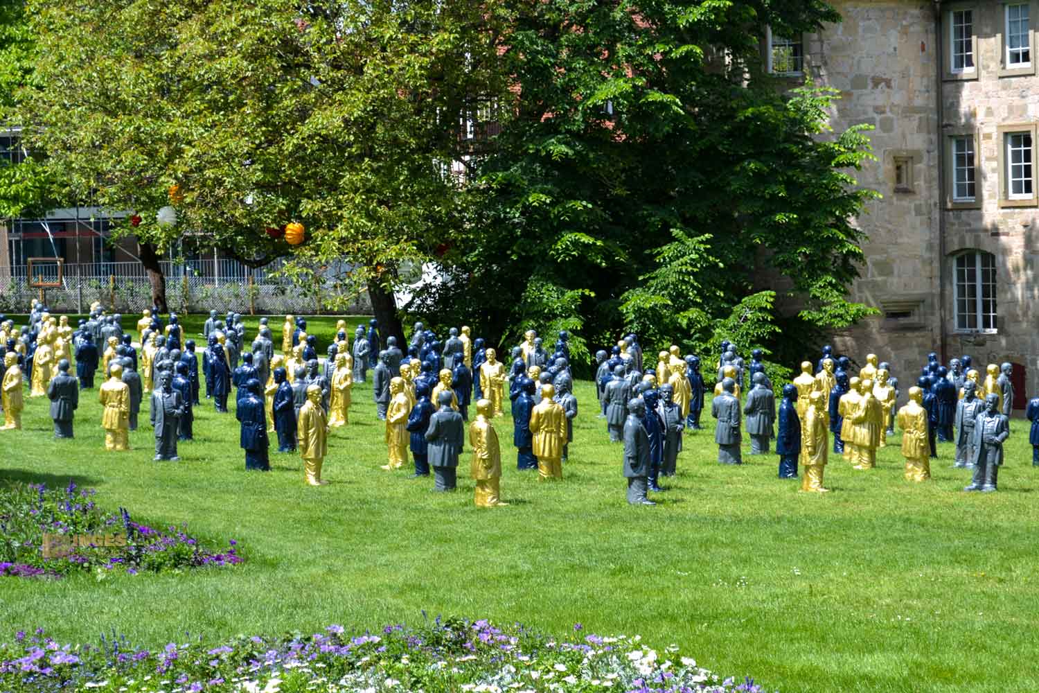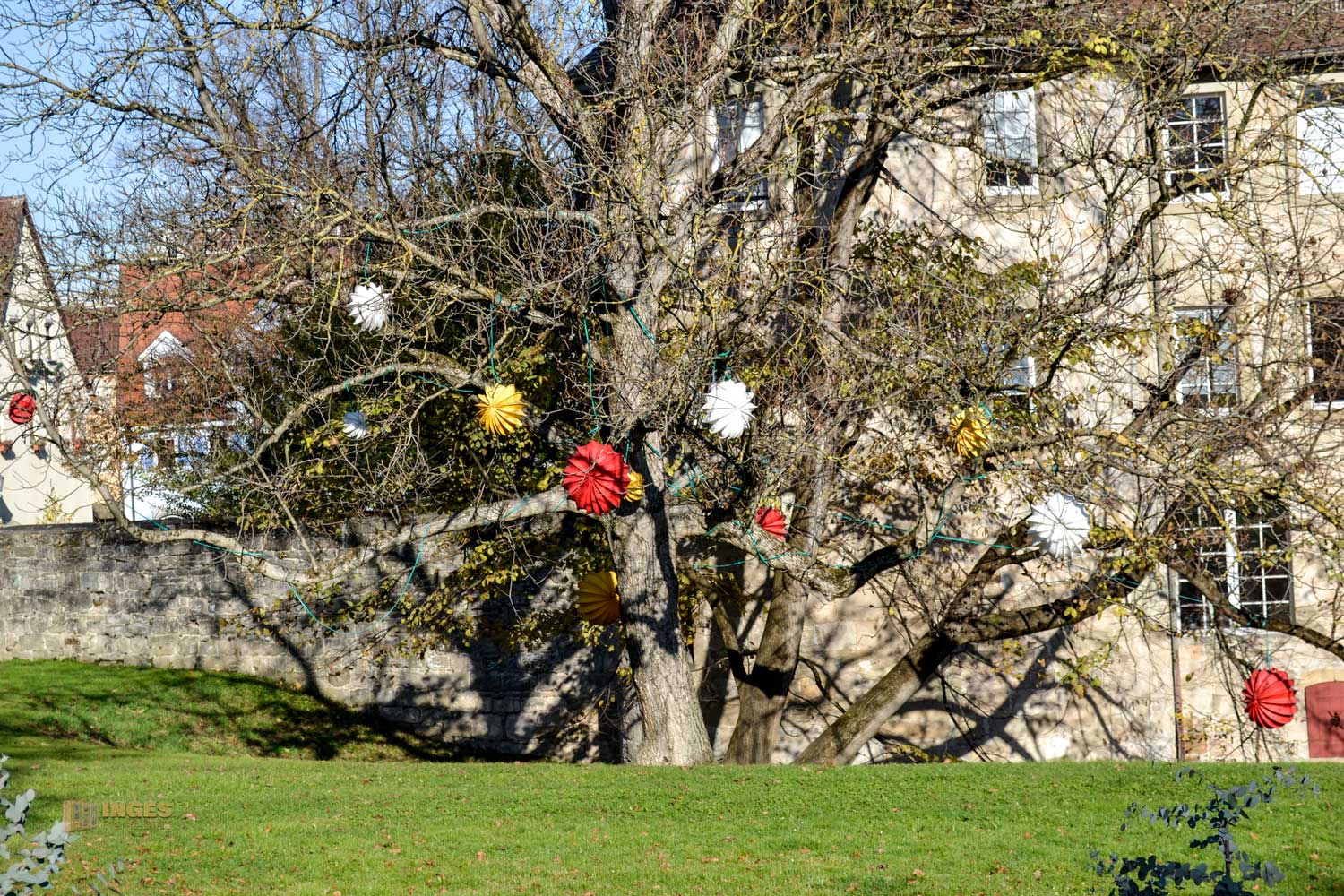 Jetzt kommt mit, ich schau mir das Burgschloss von allen Seiten an. Im Schlosspark hängen immer noch (seit Remstalgartenschau-Zeiten) Lampions in den Bäumen und bieten im Sommer lauschige Plätzchen für den Abend an. Ein Foto von der Remstalgartenschau muss ich euch hier zeigen. Nein, keine Sorge - ihr seid mit Sicherheit nicht beschwipst, dass ihr doppelt und mehrfach seht. Gottlieb Daimler hat zu dieser Zeit einen Teil des Parks 'besetzt'. 🙂