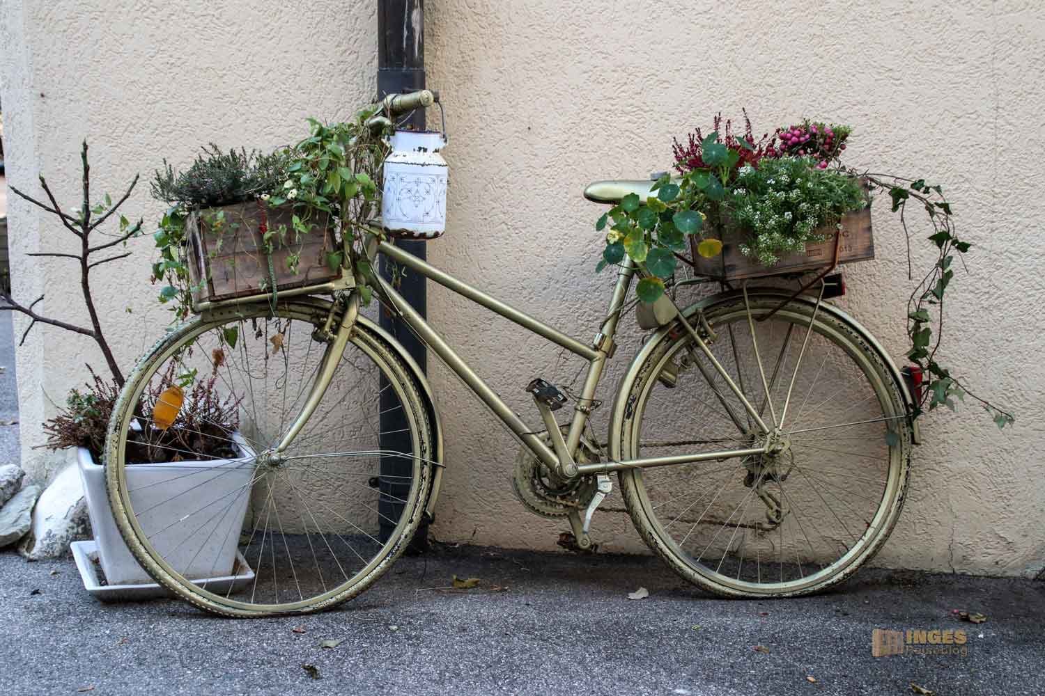 Mit diesem lauschigen Plätzchen (wo übrigens ein kleines Lädelchen seine Waren anbietet) beginnt