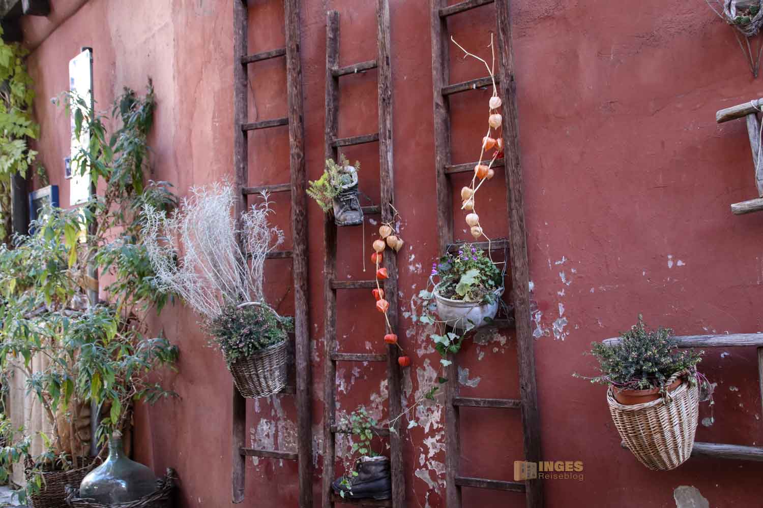 Ihr könnt sie nicht übersehen, und es sind auch nur ein paar Meter nach hinten. Auch da könnt ihr wieder ein Ackerbürgerhaus sehen und die Rückseite der Häuser, die ihr bei meinem Gang an der Stadtmauer entlang von vorne gesehen habt. Ein kleiner Innenhof, liebevoll dekorierte Häuser - ein schnuggeliges Fleckchen mitten in der Stadt.