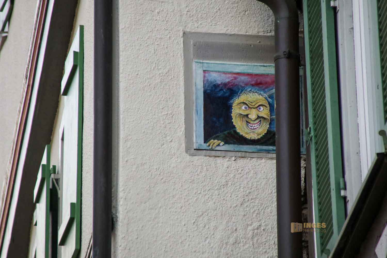 Übrigens, falls ihr euch wundert und euren Stadtrundgang nach dem Flyer der Stadtinfo (im Rathaus) absolviert, wir wirbeln wie immer solche Stadtrundgänge etwas durcheinander und picken uns das heraus, was für uns wichtig ist 🙂 Deshalb haben wir jetzt eine 'Rolle rückwärts' gemacht und sind kurz in die Römmelgasse abgebogen. DIE solltet ihr bei eurem Stadtrundgang auf keinen Fall auslassen. Denn geradewegs lauft ihr auf eine herrliche Ecke in Schorndorf zu und steht vor einem Haus, das ihr euch von allen möglichen Seiten anschauen solltet.