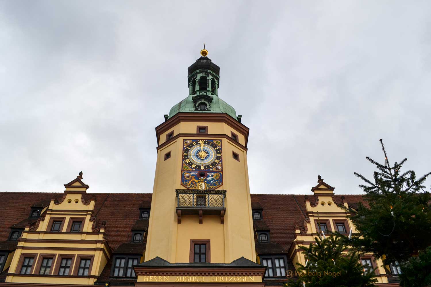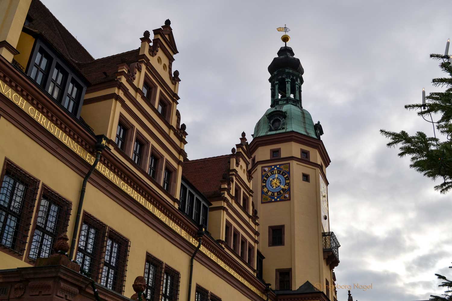 begrenzt. Es ist der schönste Profanbau in Leipzig und wurde 1556 erbaut. Mit diesem Bau zeigt sich das Selbstbewusstsein der Bürgerlichkeit, die zu einer lange Zeit dominierenden Handelsstadt aufgeblüht ist. Heute ist in dem Bau das Stadtgeschichtliche Museum untergebracht, nachdem 1905 das Neue Rathaus eingeweiht wurde. Als einst schönster und größter Saal in Sachsen gilt der Festsaal. Wir haben jedoch auf eine Innenbesichtigung verzichtet. Ihr wisst ja - Leipzig an einem Tag?