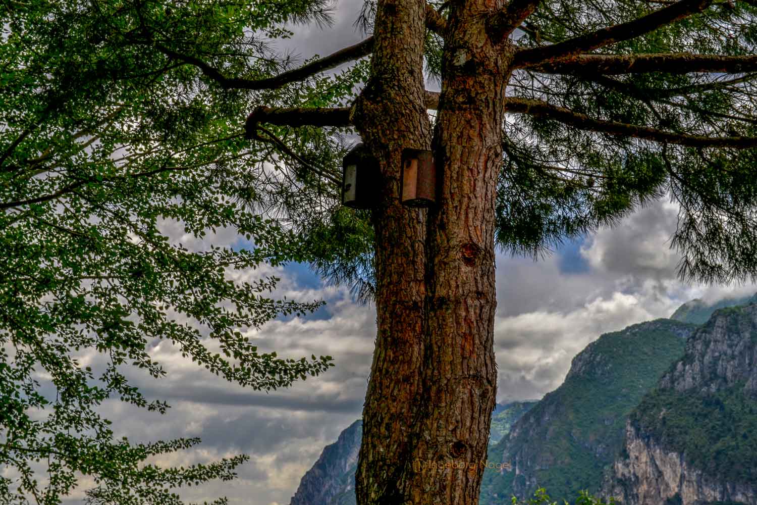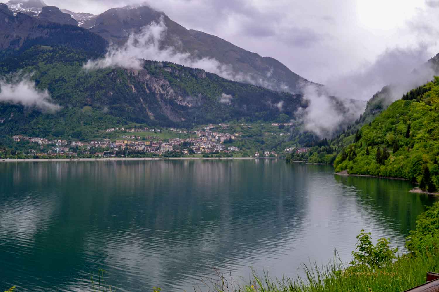 Aber zuerst mussten wir mal ankommen. Da wir zuvor schon eine Woche in Südtirol Urlaub gemacht haben, war die Anreise ja nicht mehr allzu lange. Dieses kurze Stück wollten wir jedoch nicht auf der Autobahn zurücklegen, sondern, so wie oft auf unseren Reisen, abseits der Hauptroute noch etwas sehen. Das Wetter spielte verrückt an diesem Tag Mitte Mai, so wie die ganze Woche davor in Südtirol auch schon. Trotzdem, wir sind auf den Mendelpass abgebogen und haben zwischen den Wolken wunderschöne Blicke ins Tal erhascht. Über Fondo war als Etappenziel der Lago di Santa Giustina bei Cles angedacht. Aber wie wir auf der Fahrt sehr schnell festgestellt haben, sollte man an einem solchen Tag nicht denken. "Der große Staudamm im Tal der Canyons" so beschreibt das Internet den 8 km langen und an der breitesten Stelle knapp 1 km breiten Stausee, der über eine der mächtigsten Bogenstaumauern weltweit verfügt. Tatsächlich sind wir über diese Staumauer gefahren. Aber weit und breit haben wir keinen Platz zum Fotografieren gefunden und den See konnten wir nur von oberhalb der Straße erahnen. Wir fanden keinen beschilderten Abzweig zum See.